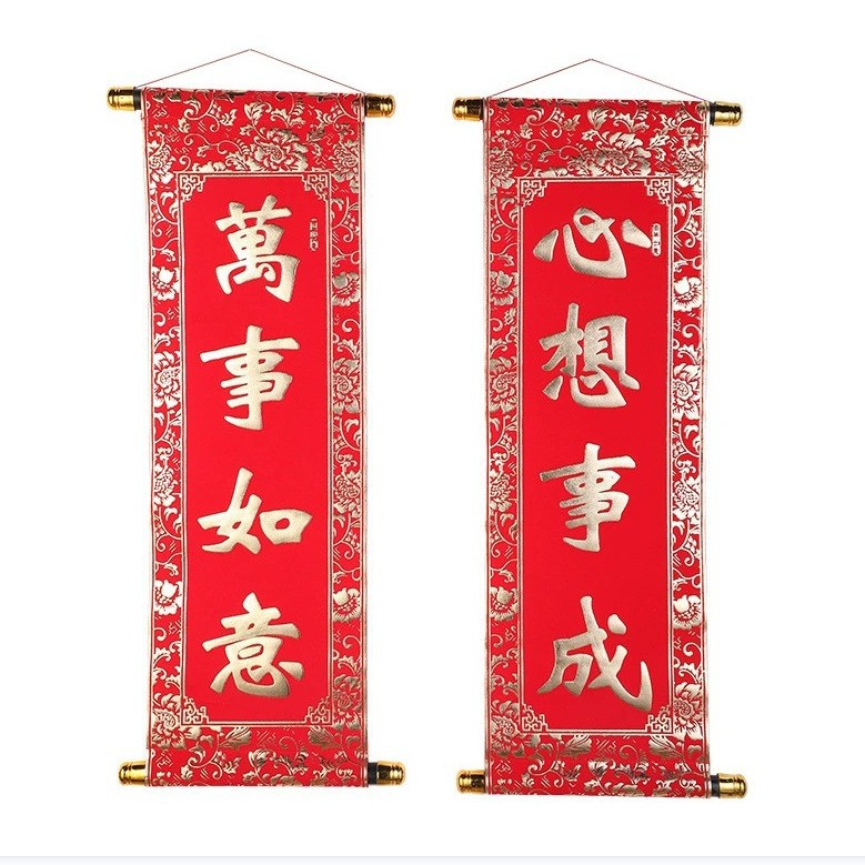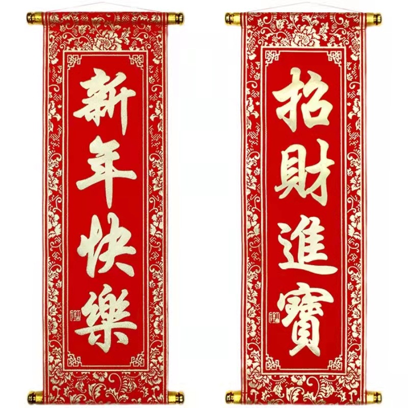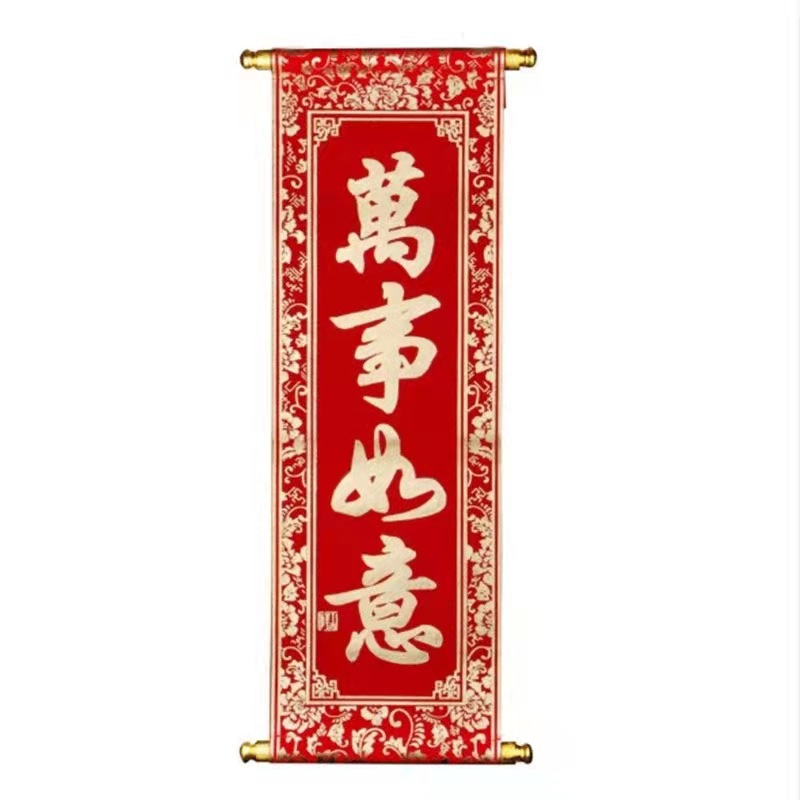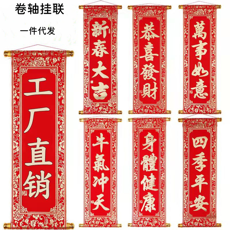 一件代发过年对联批发四字卷轴小挂联珲春迷你绒布春联国潮国潮风