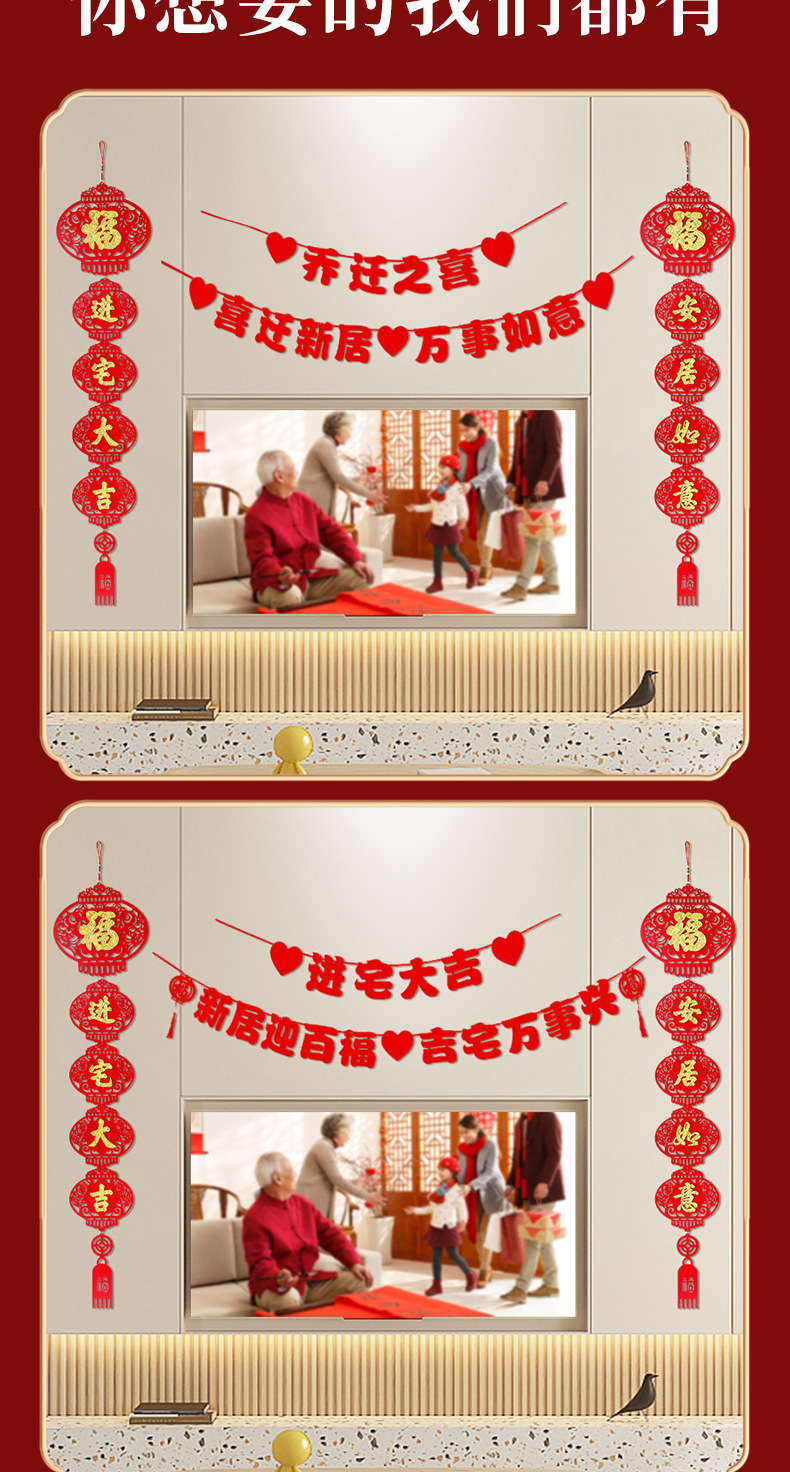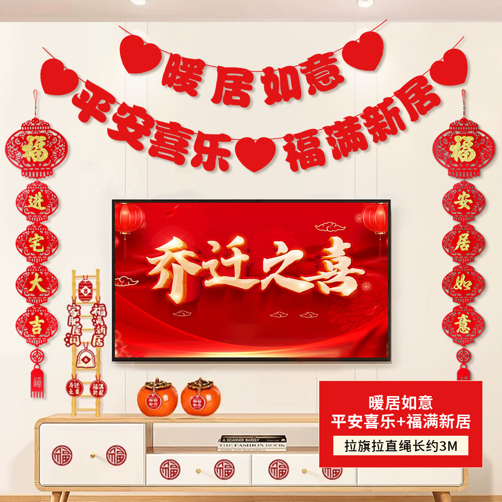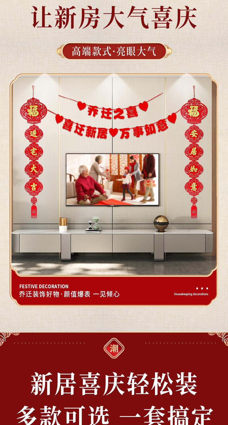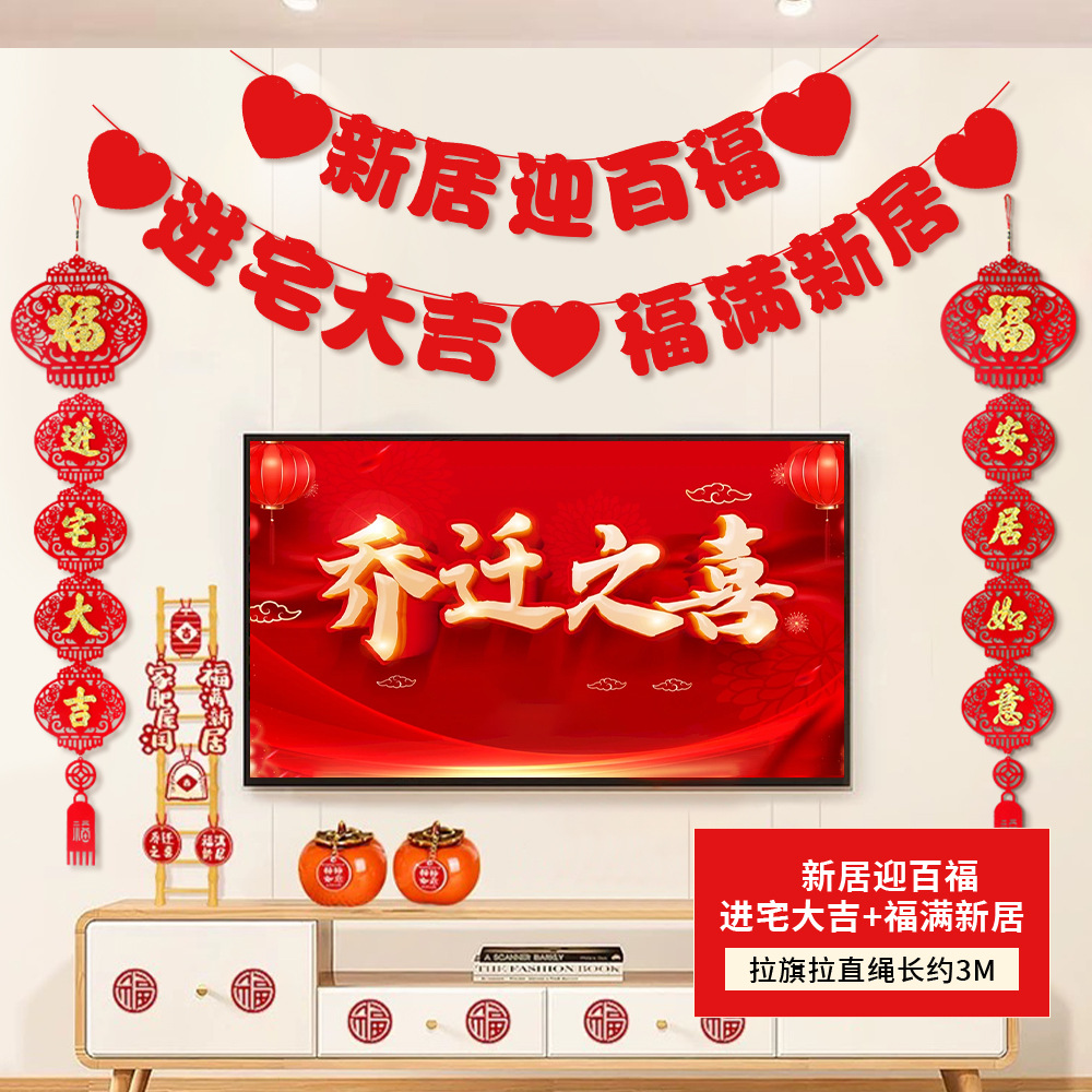 乔迁之喜装饰客厅电视背景墙布置用品大全新居入宅新居拉旗对联套