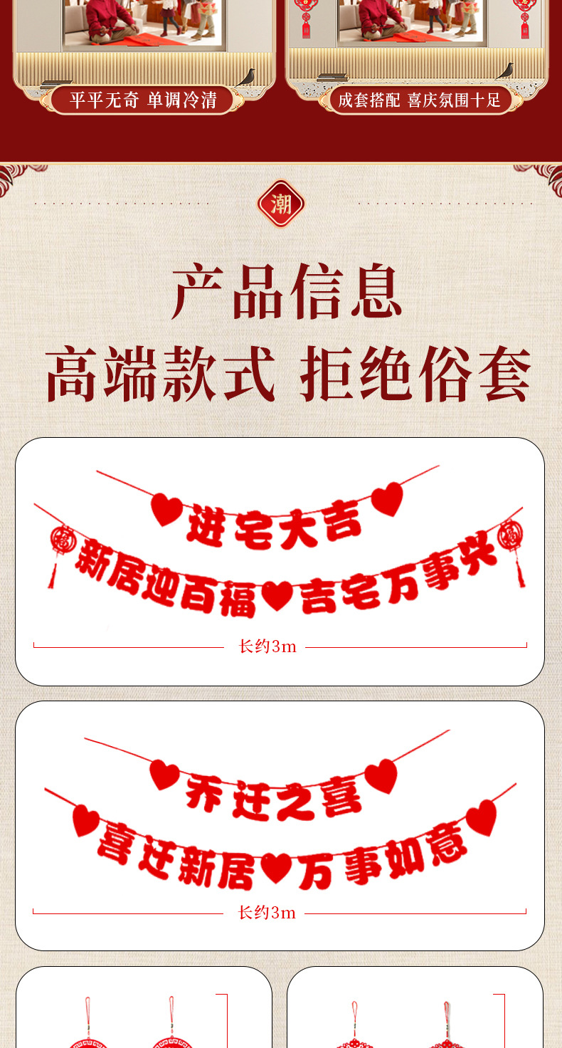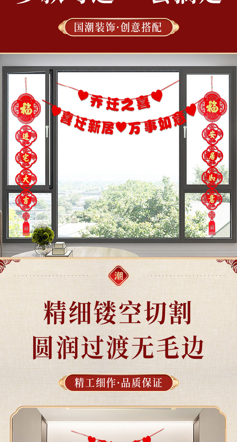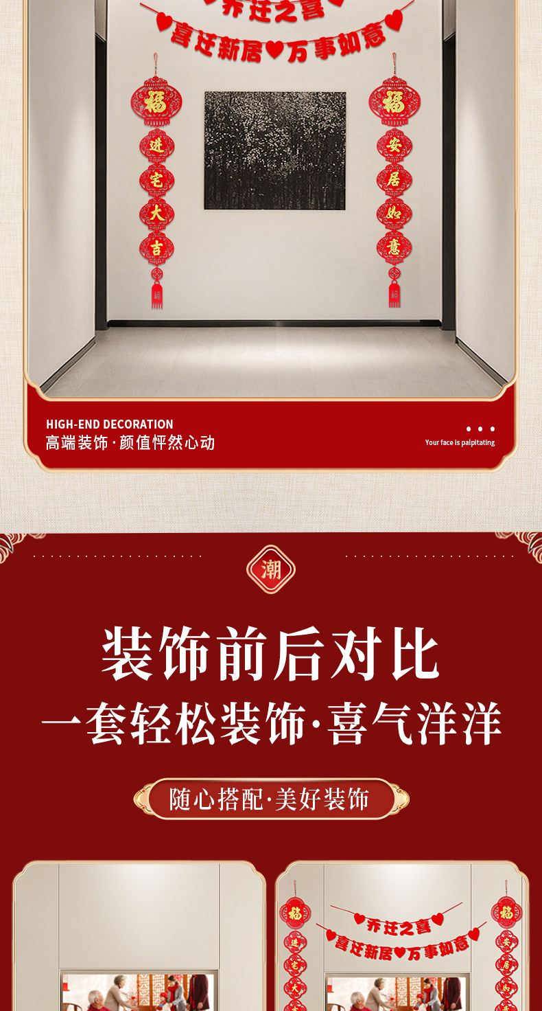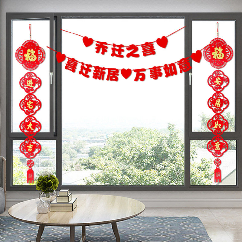 乔迁之喜装饰客厅电视背景墙布置用品大全新居入宅新居拉旗对联套