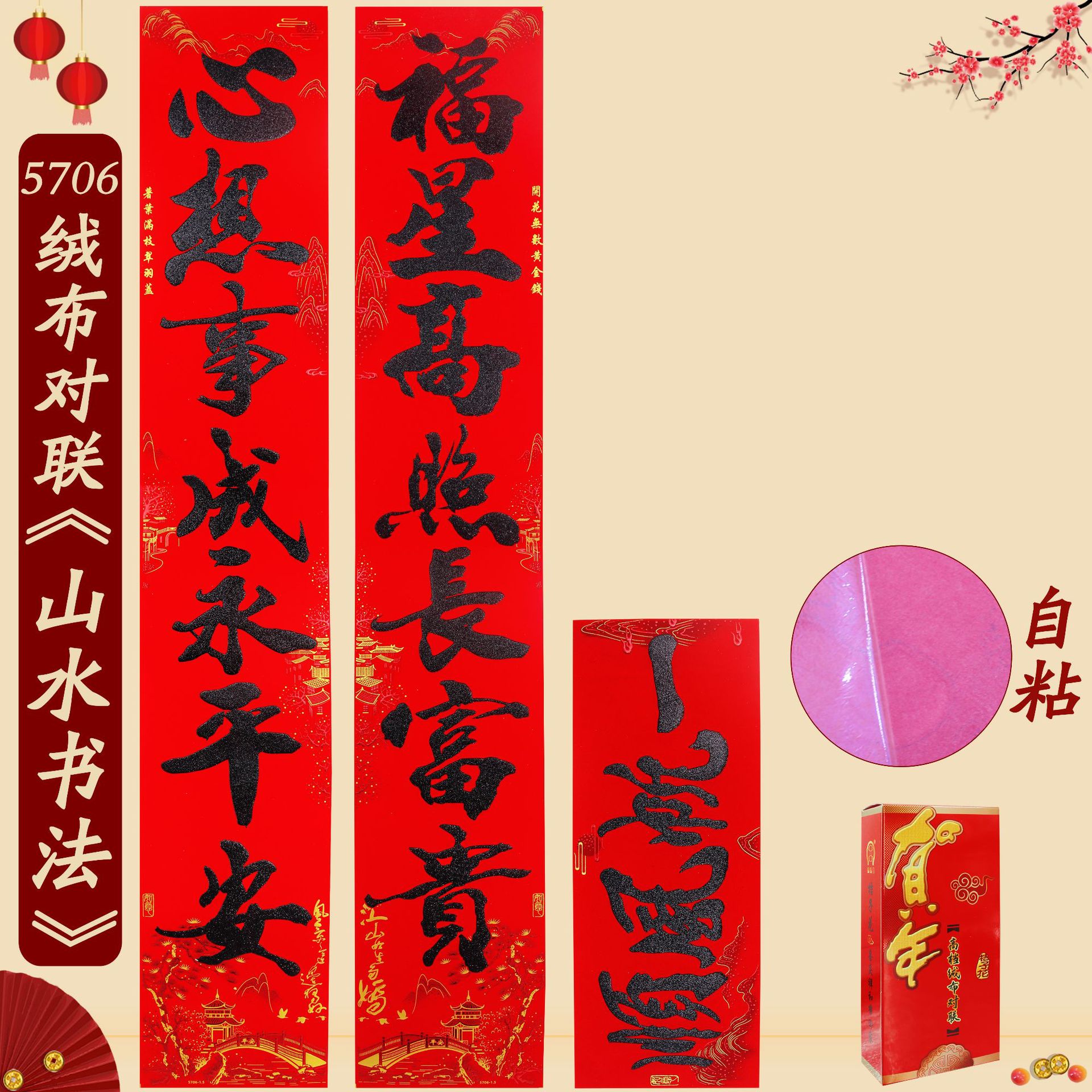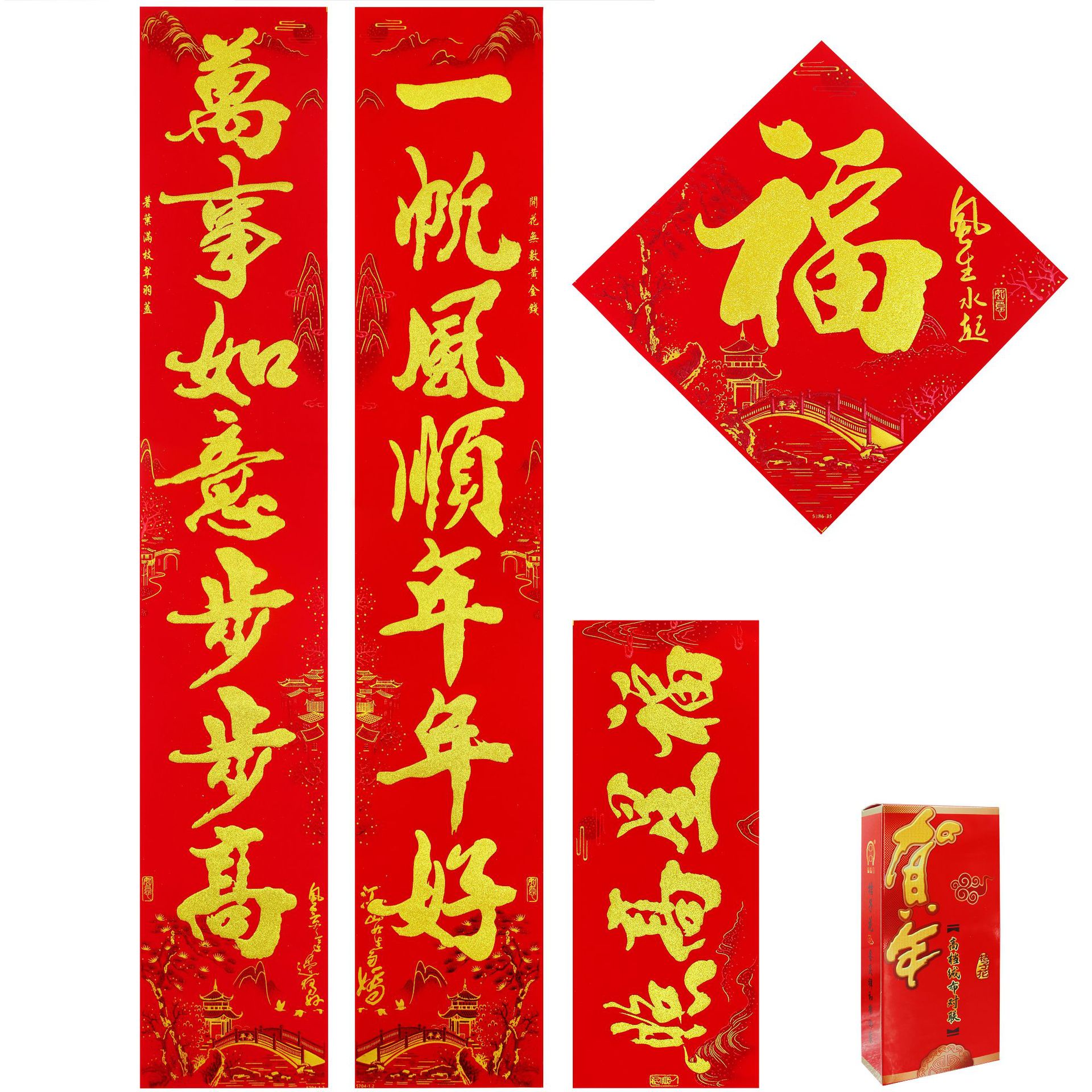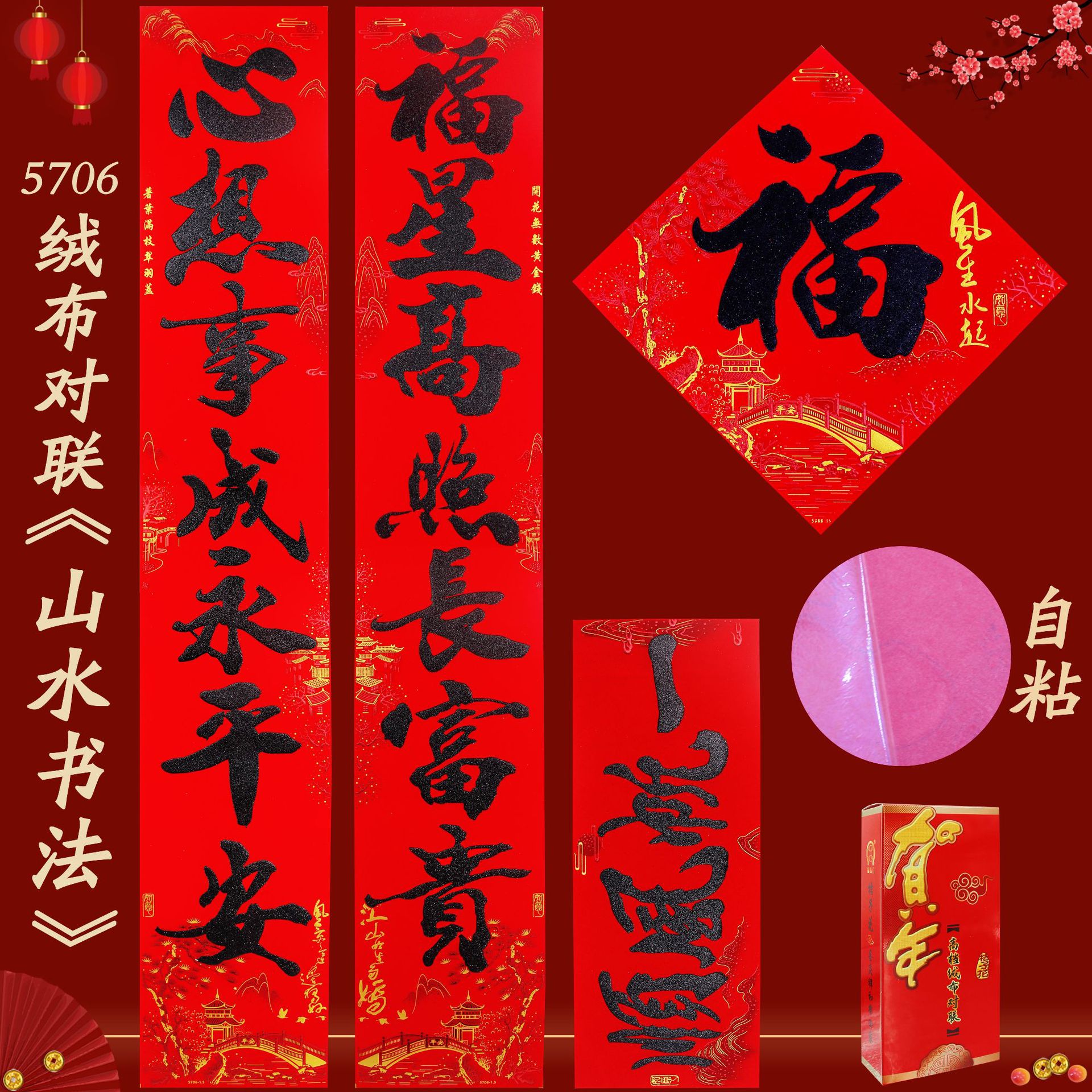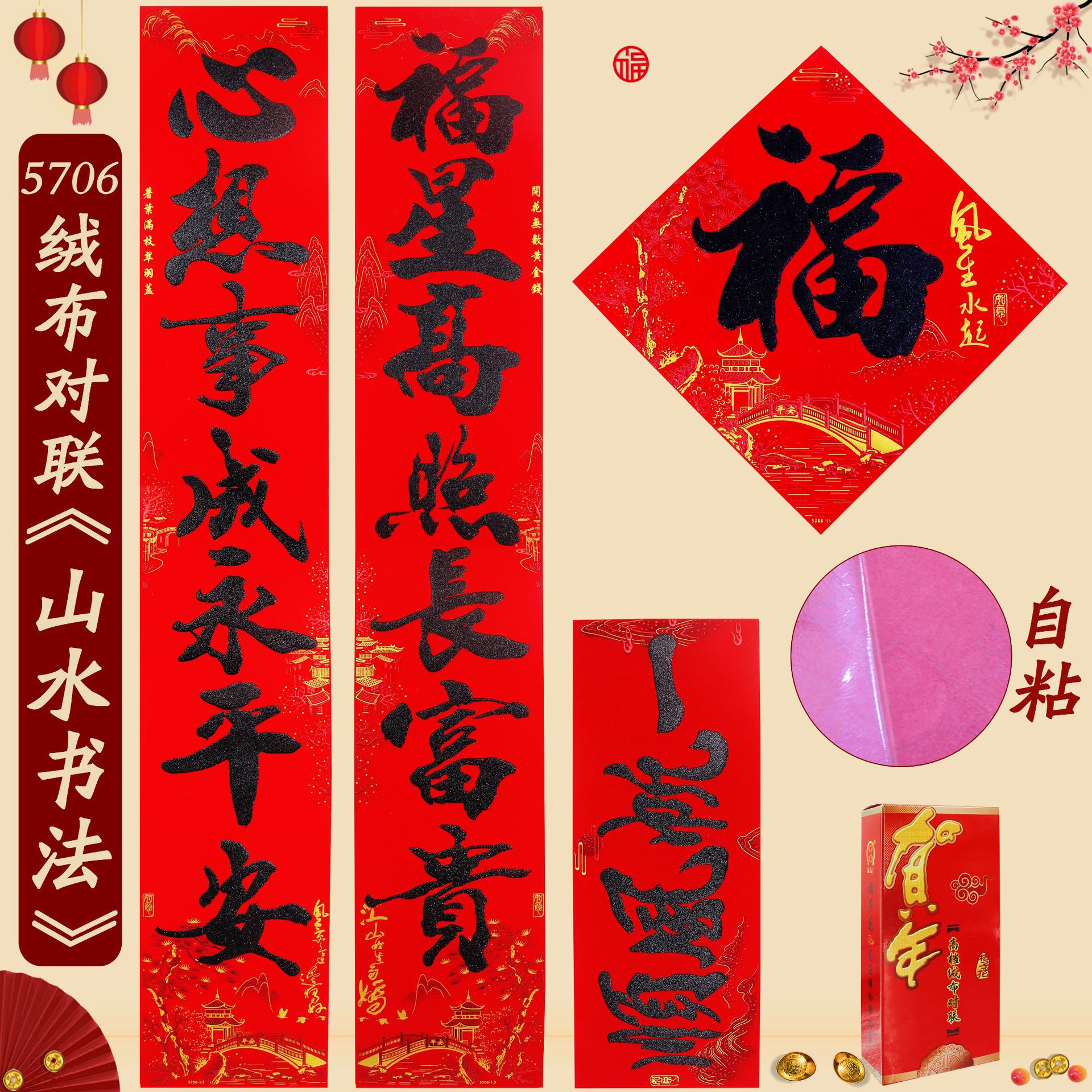 2025春联蛇年绒布全背胶金字山水书法黑金粉对联过年入户大门新年