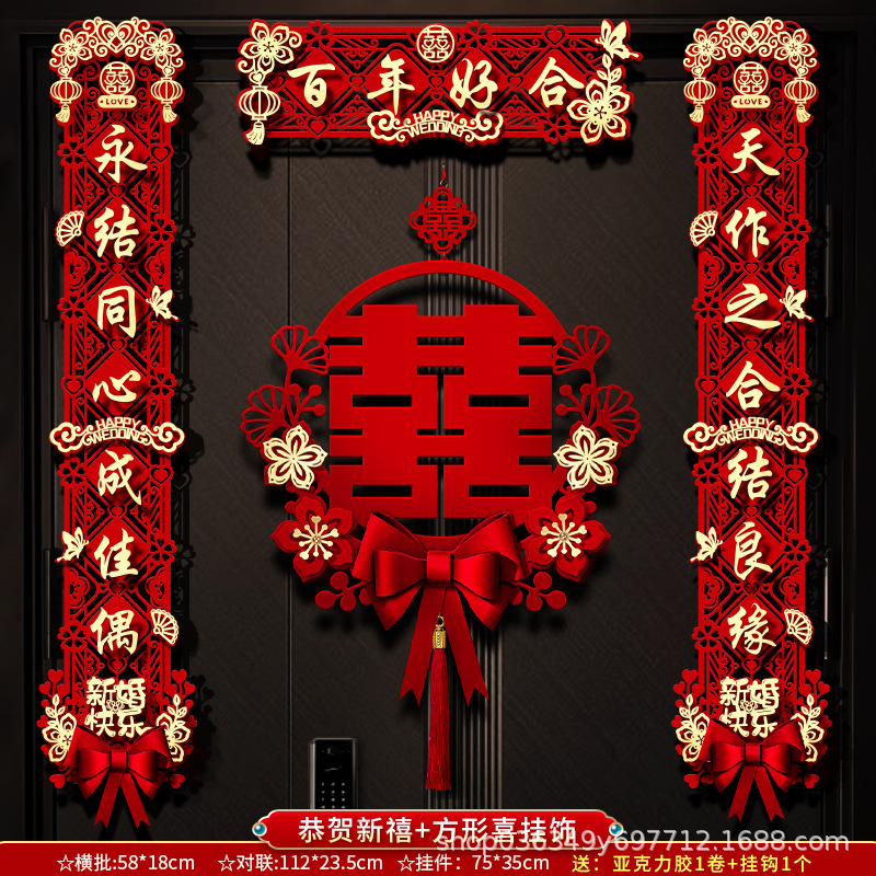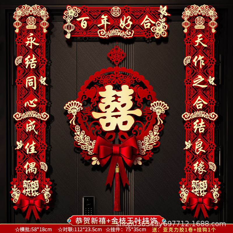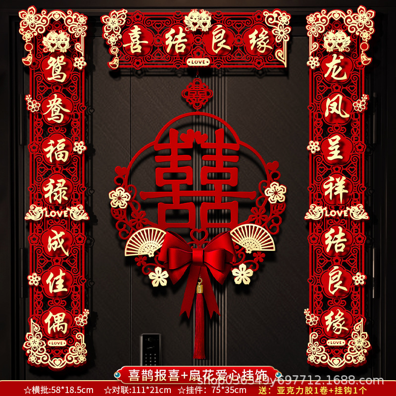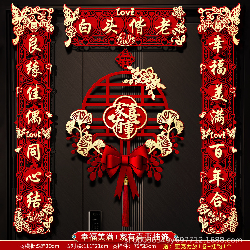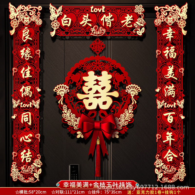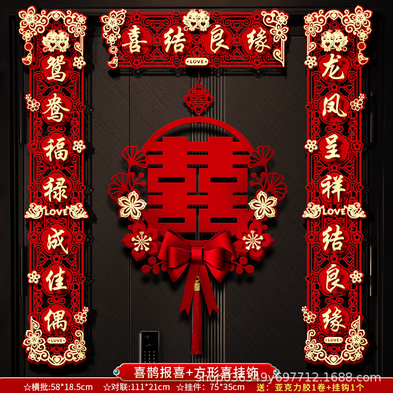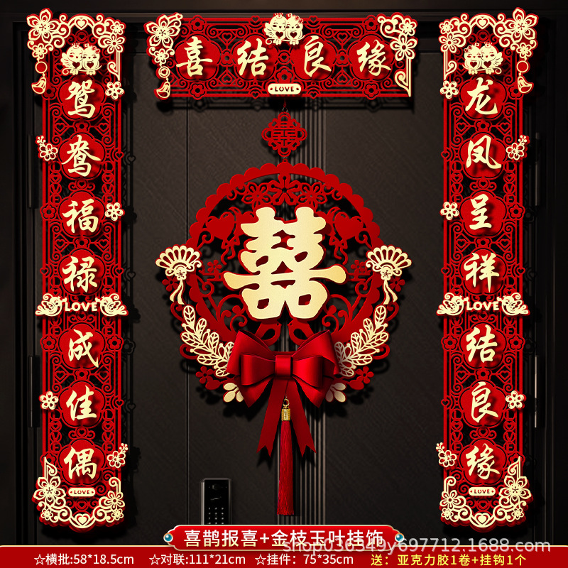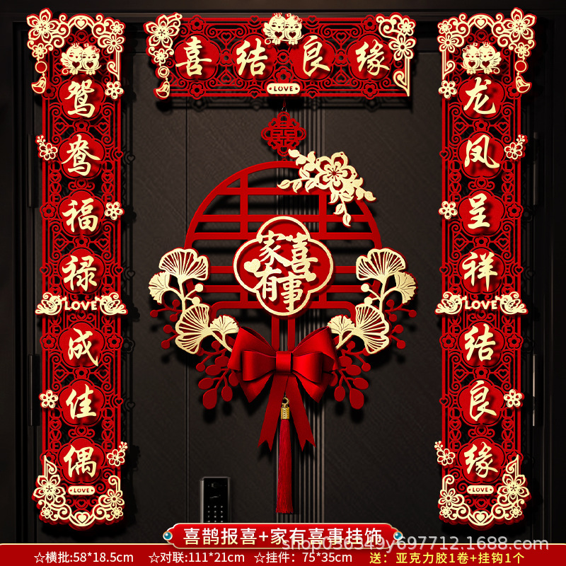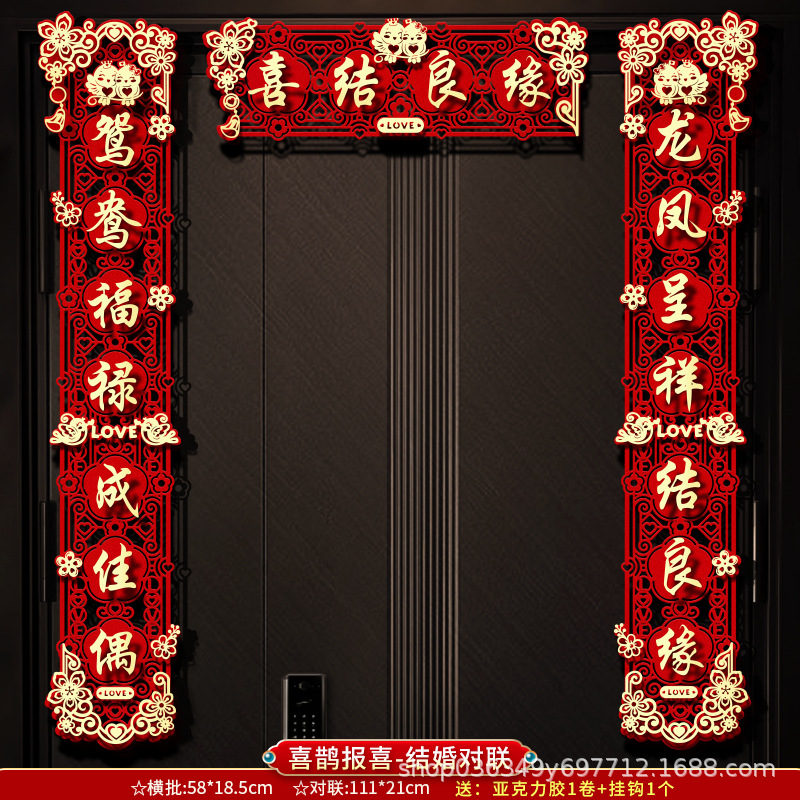 结婚对联男方大门喜字贴喜联全套2024新款婚庆女方出嫁新婚房门联