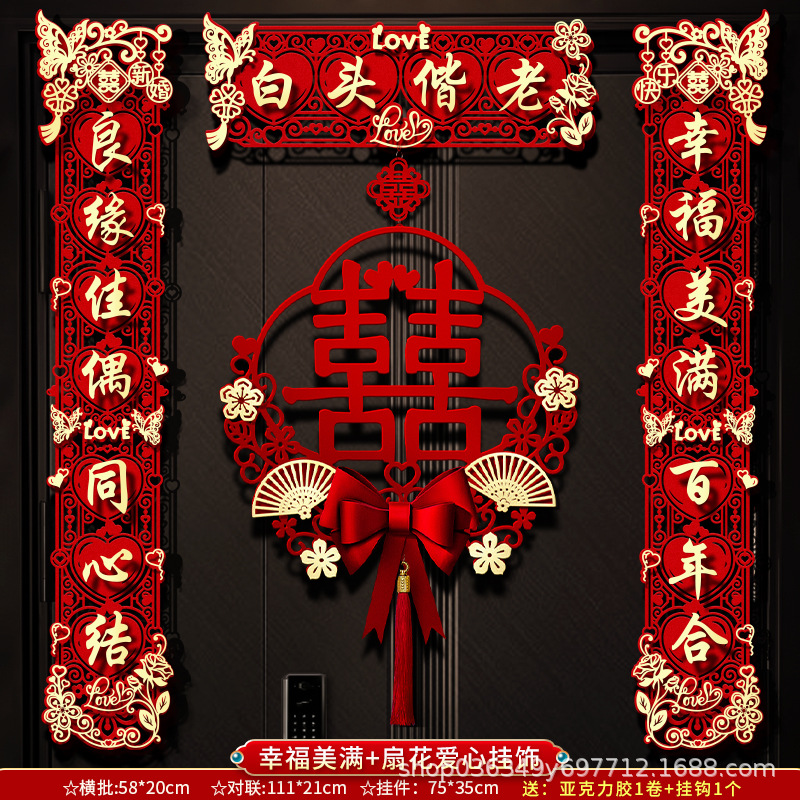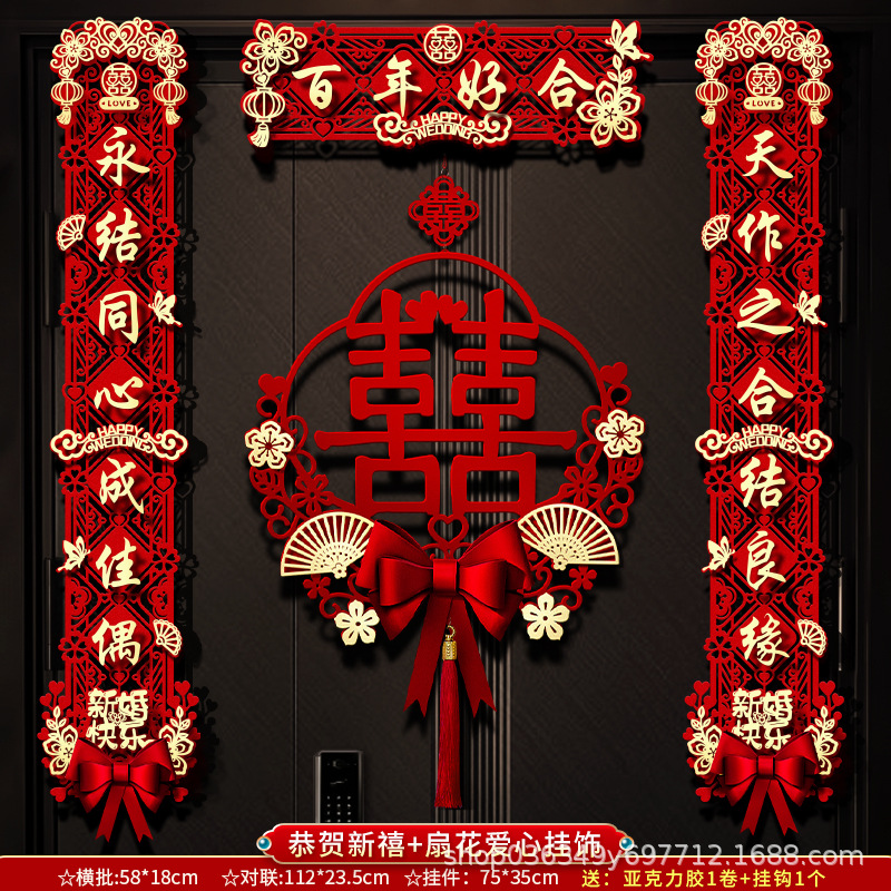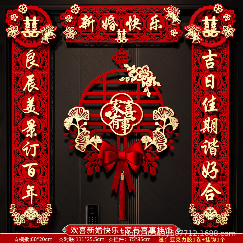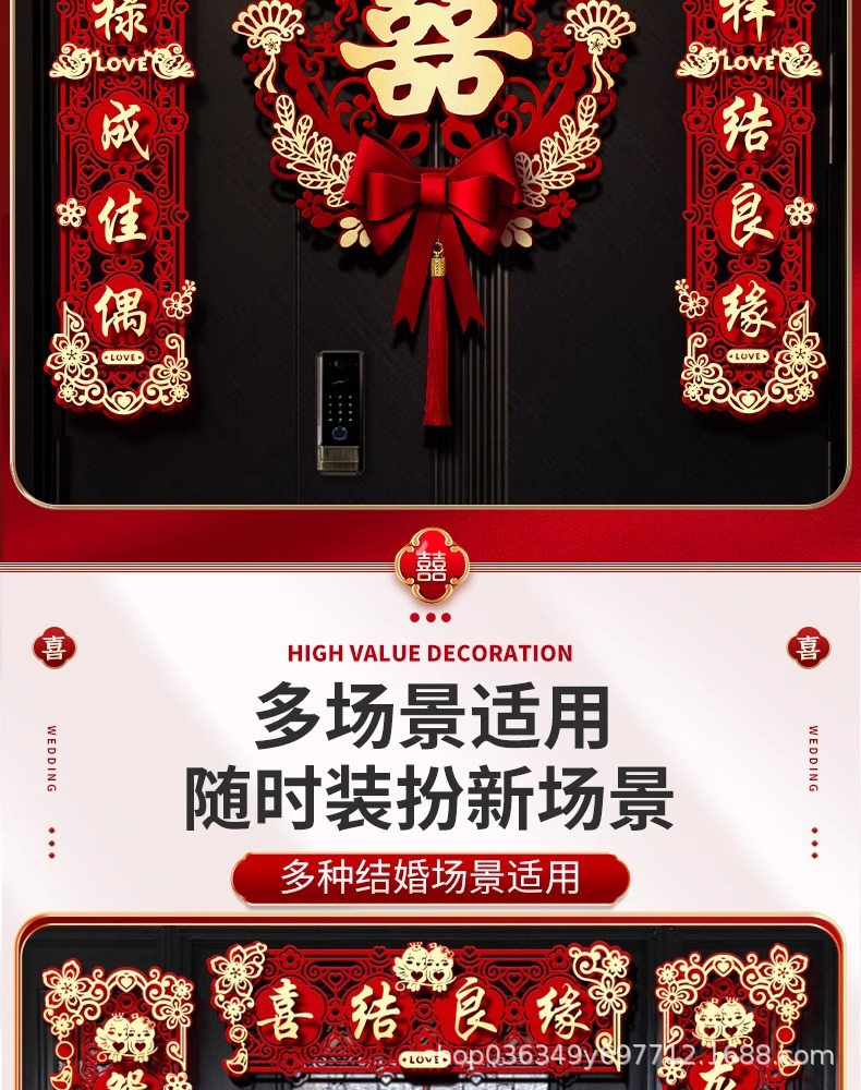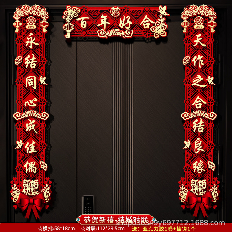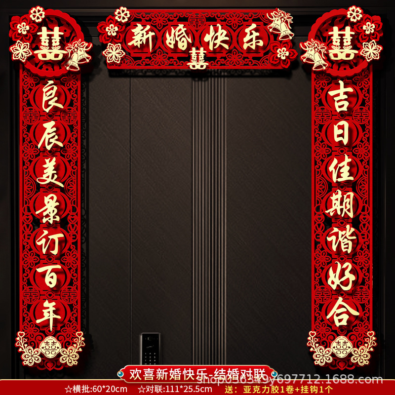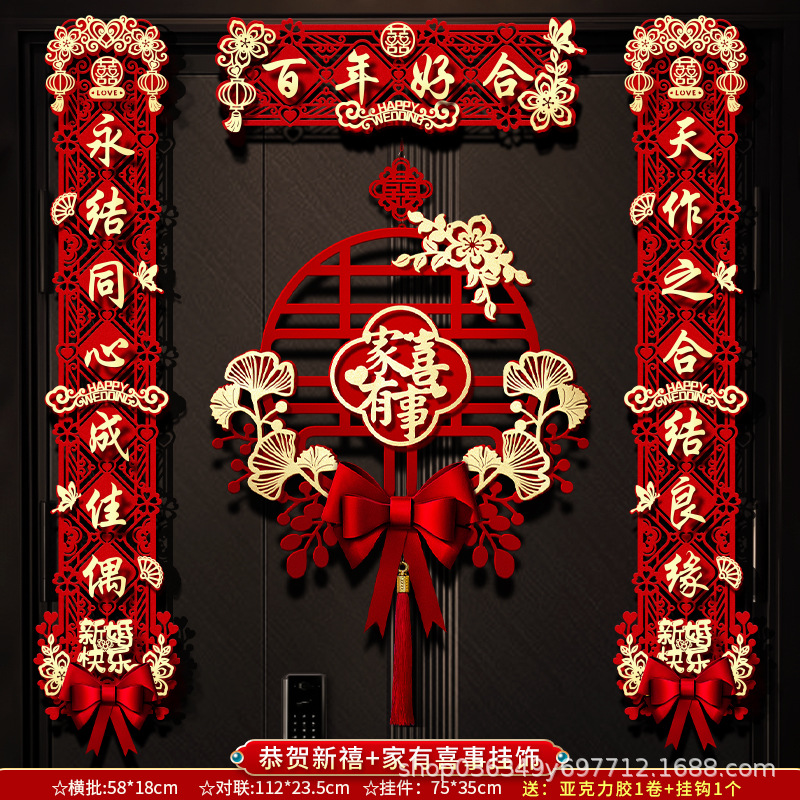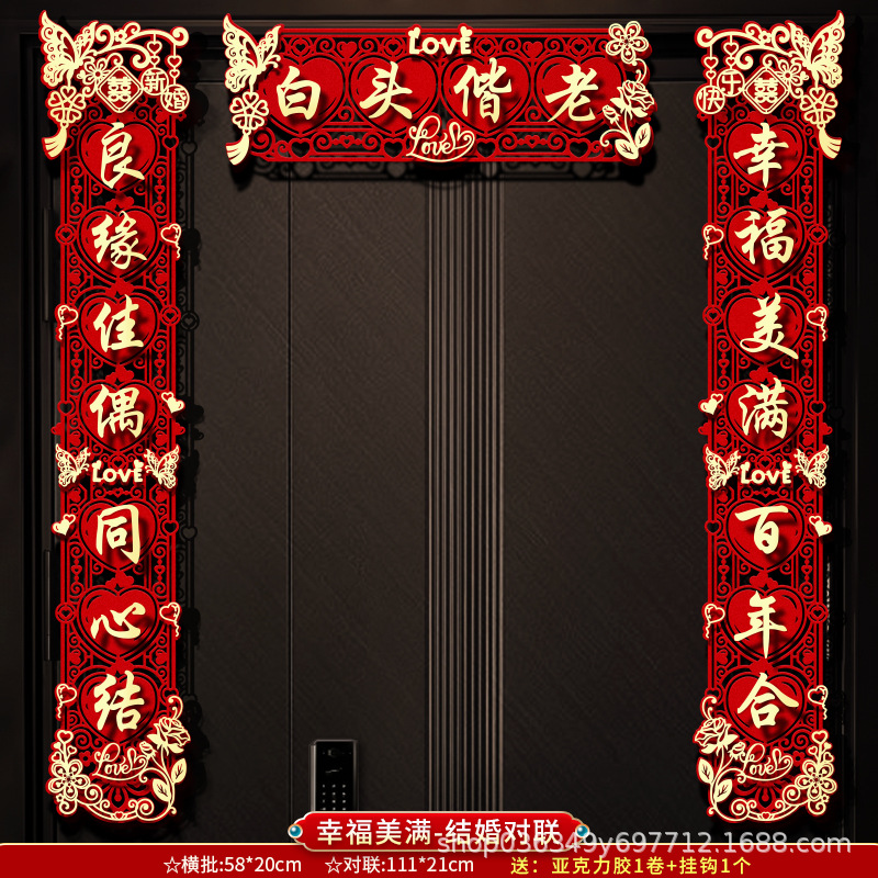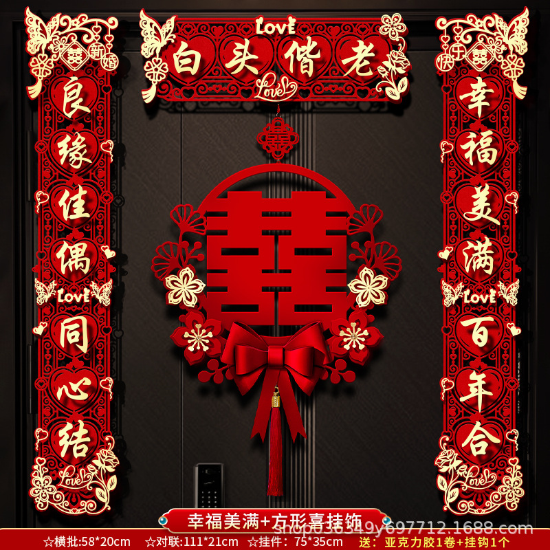 结婚对联男方大门喜字贴喜联全套2024新款婚庆女方出嫁新婚房门联