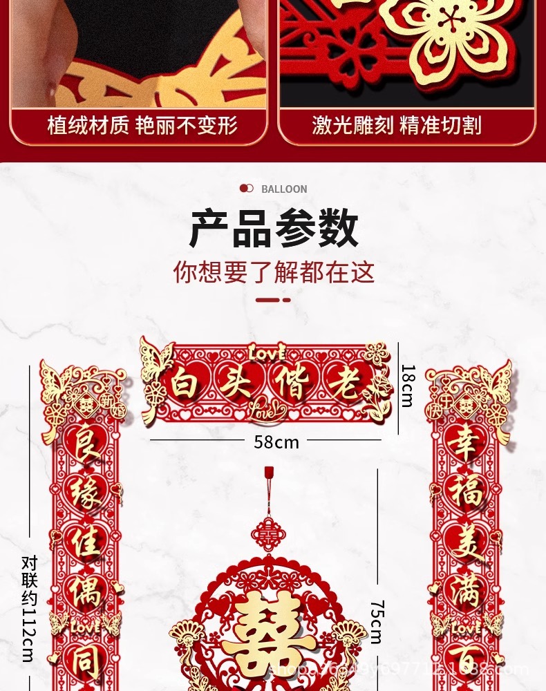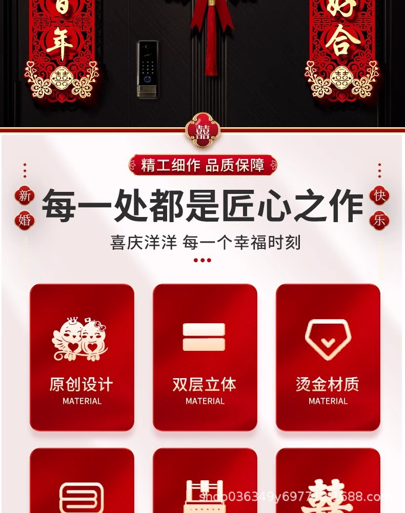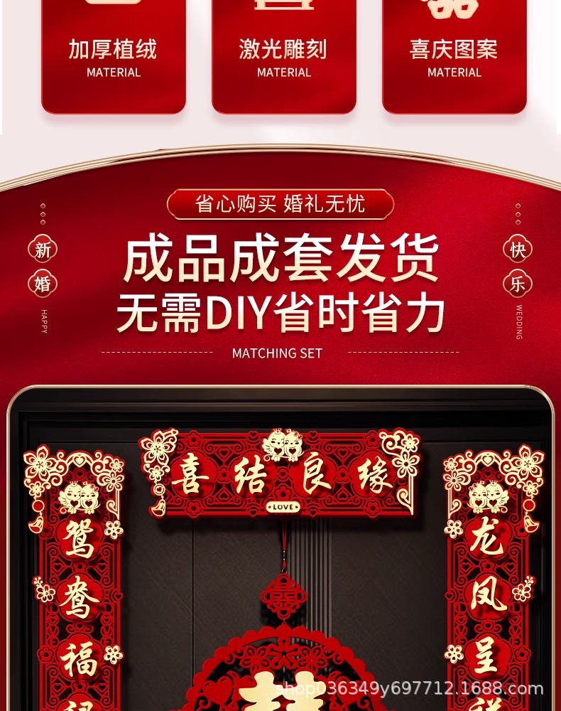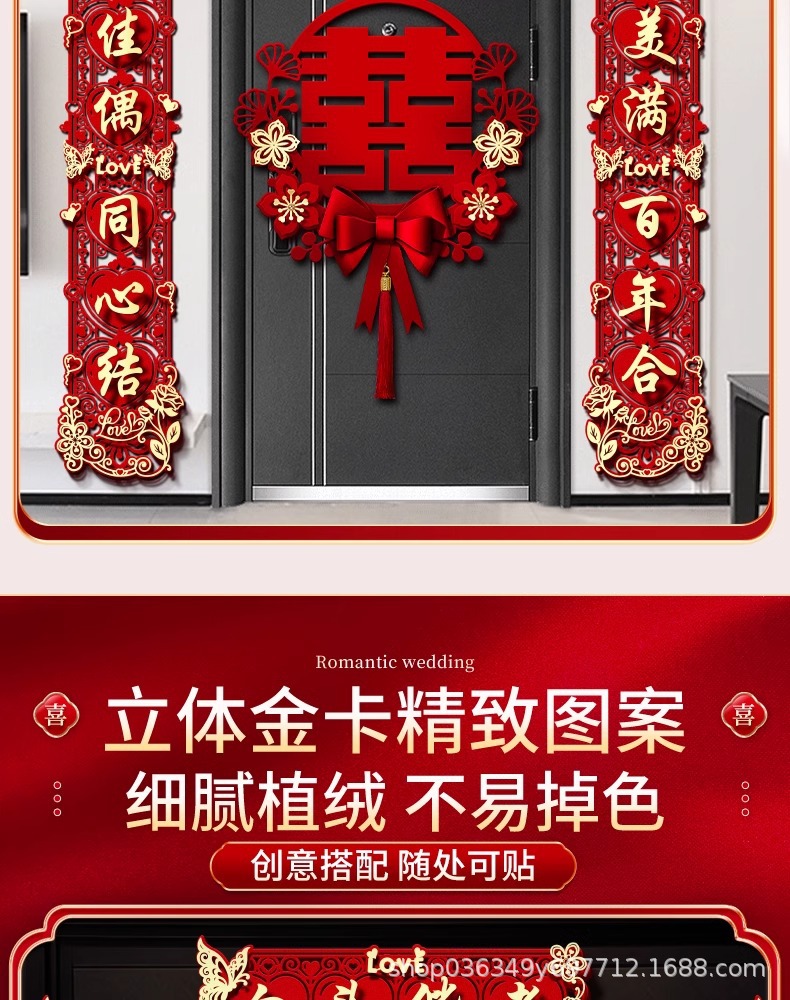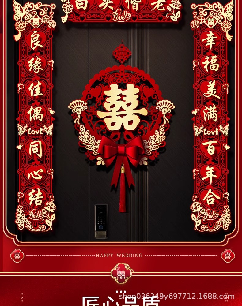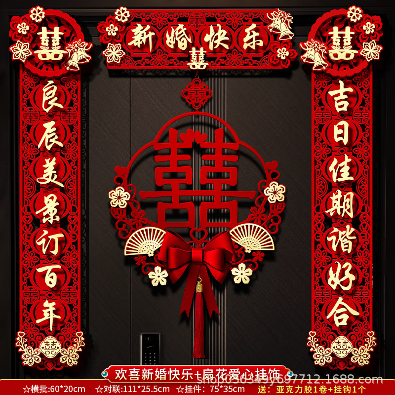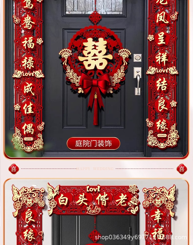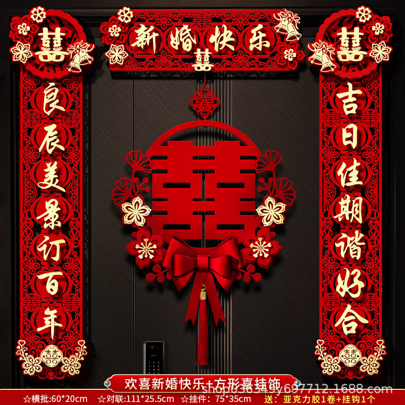 结婚对联男方大门喜字贴喜联全套2024新款婚庆女方出嫁新婚房门联