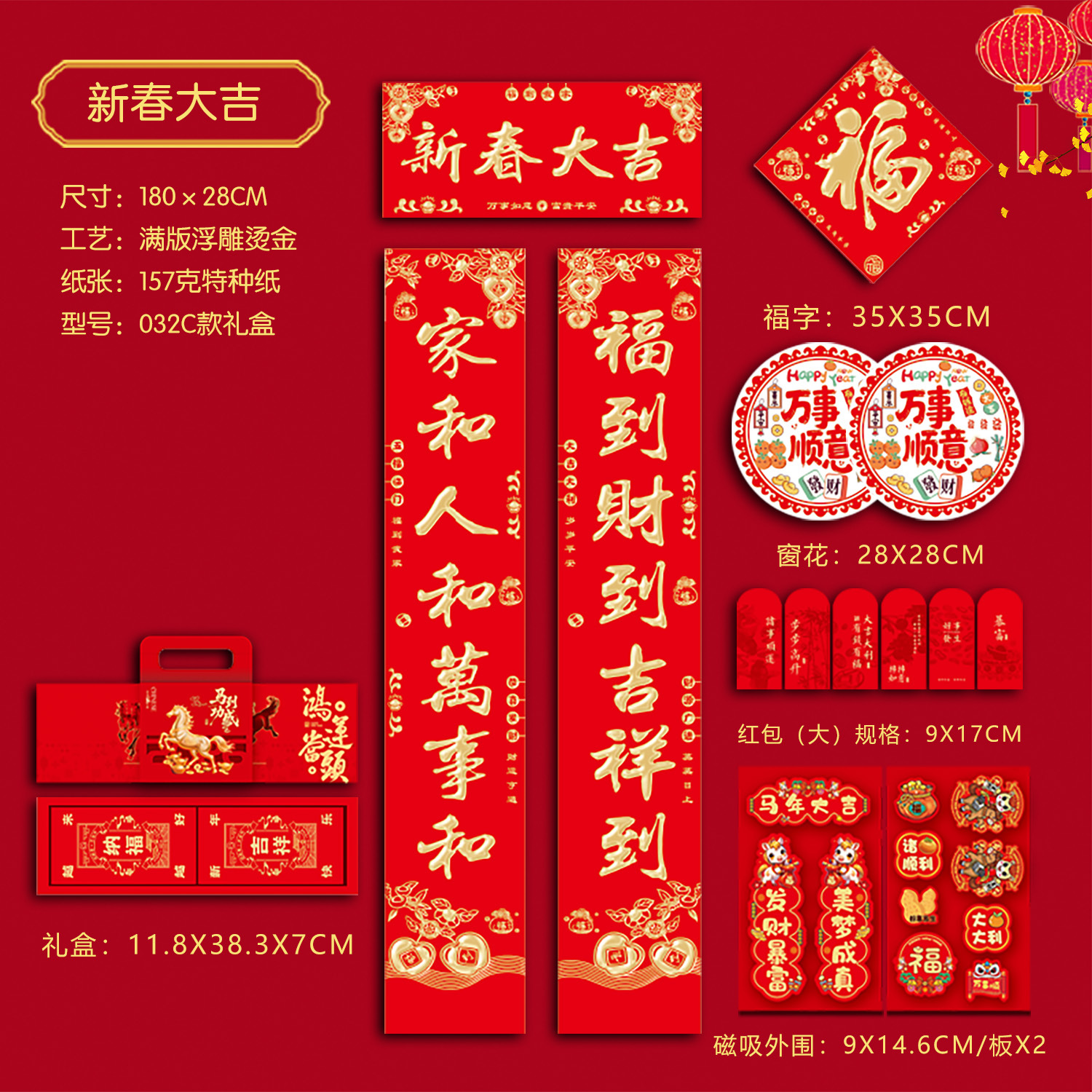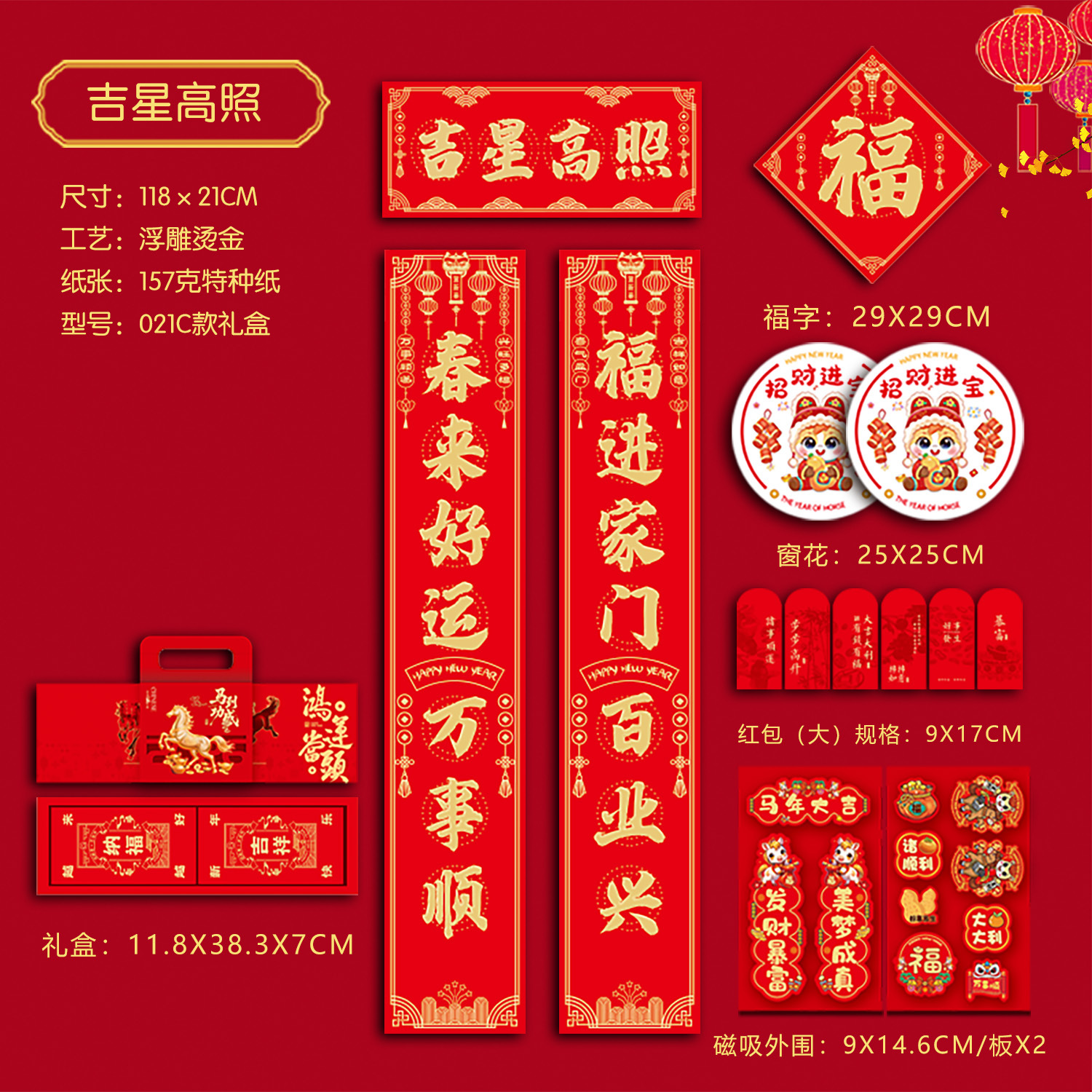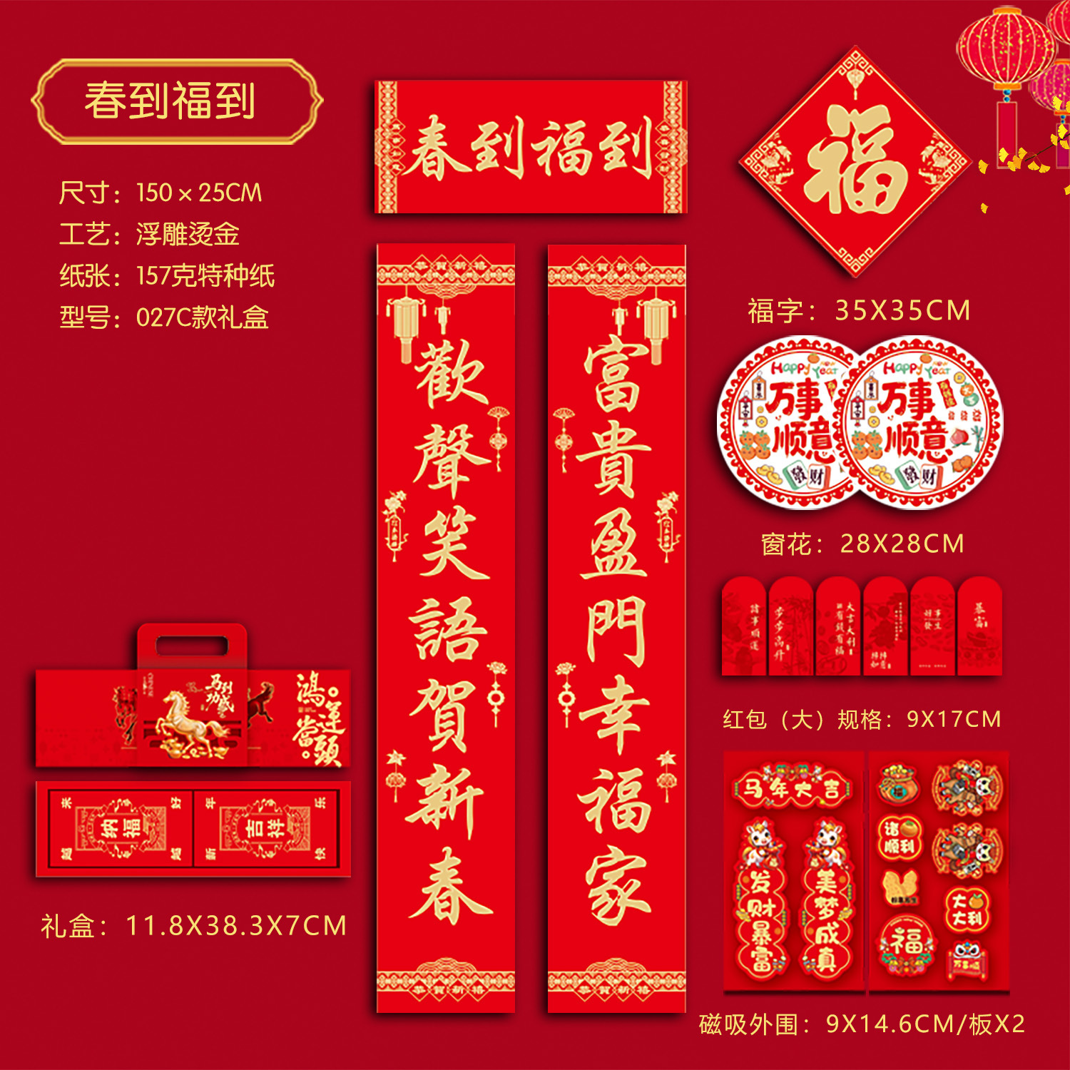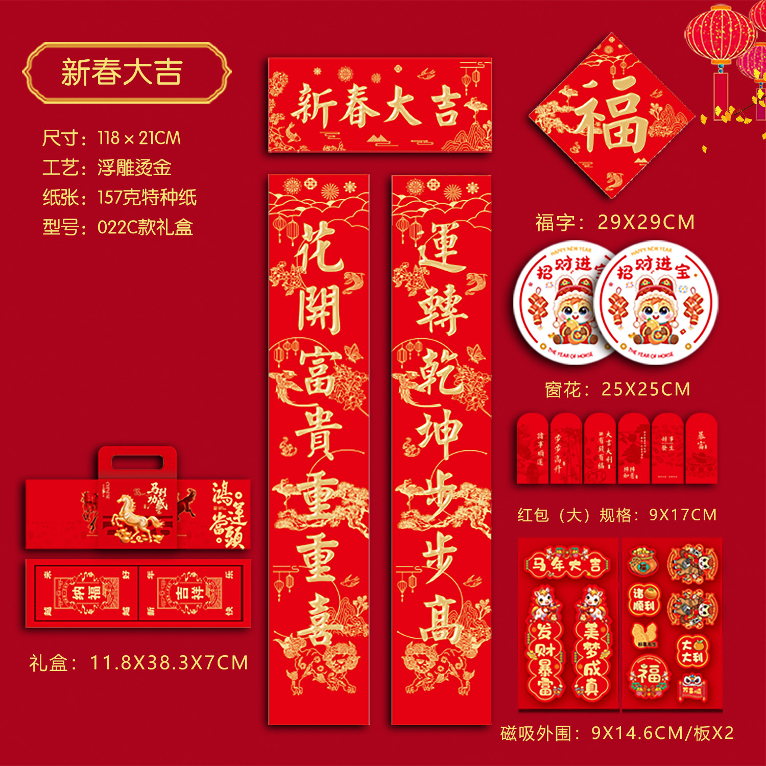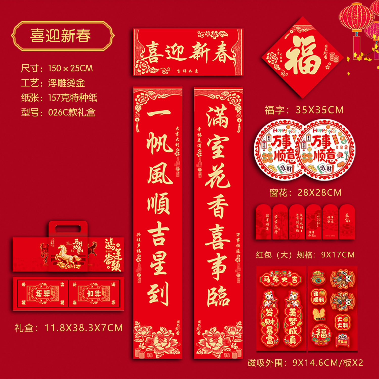 2026马年157克特种纸浮雕烫金对联防盗门小区大门高档礼盒对联