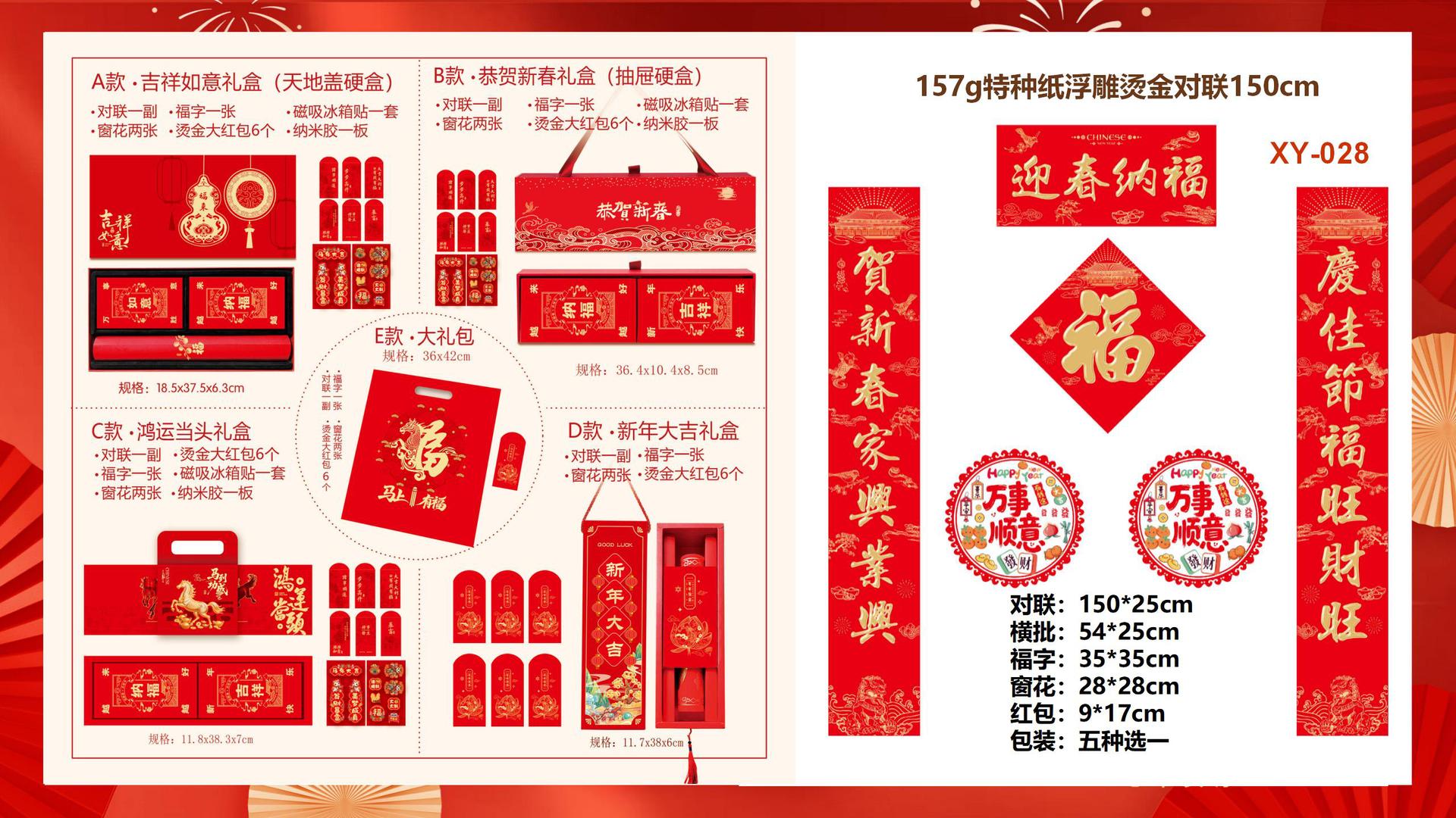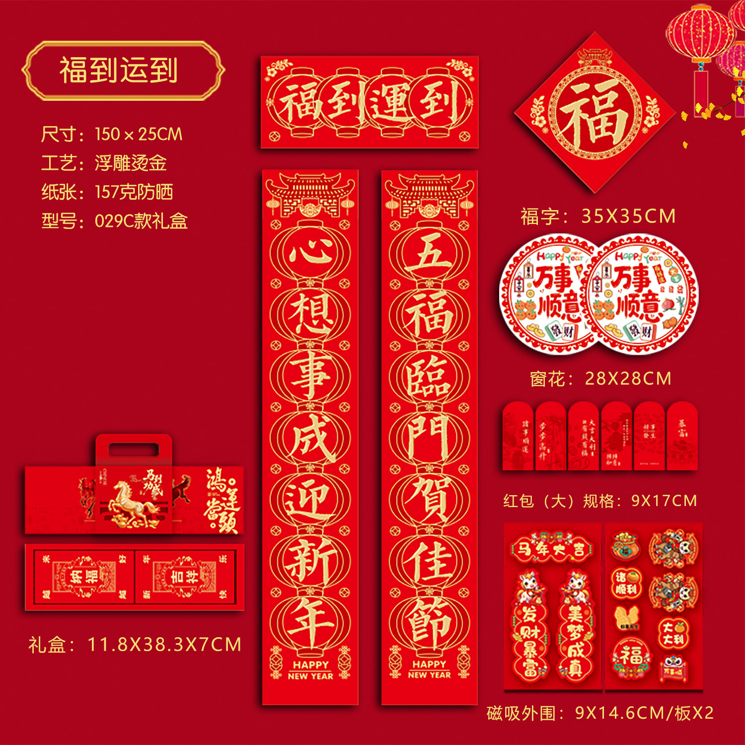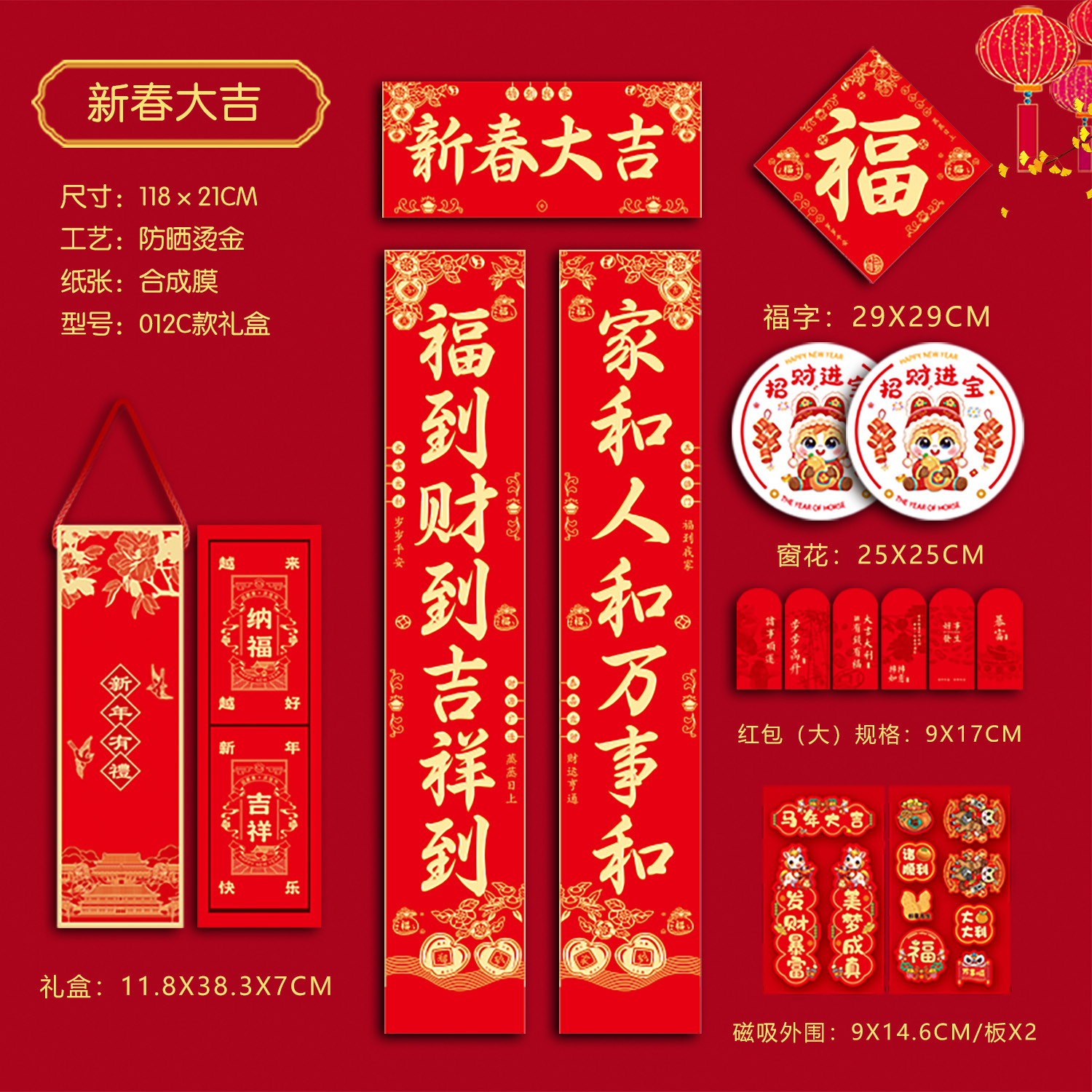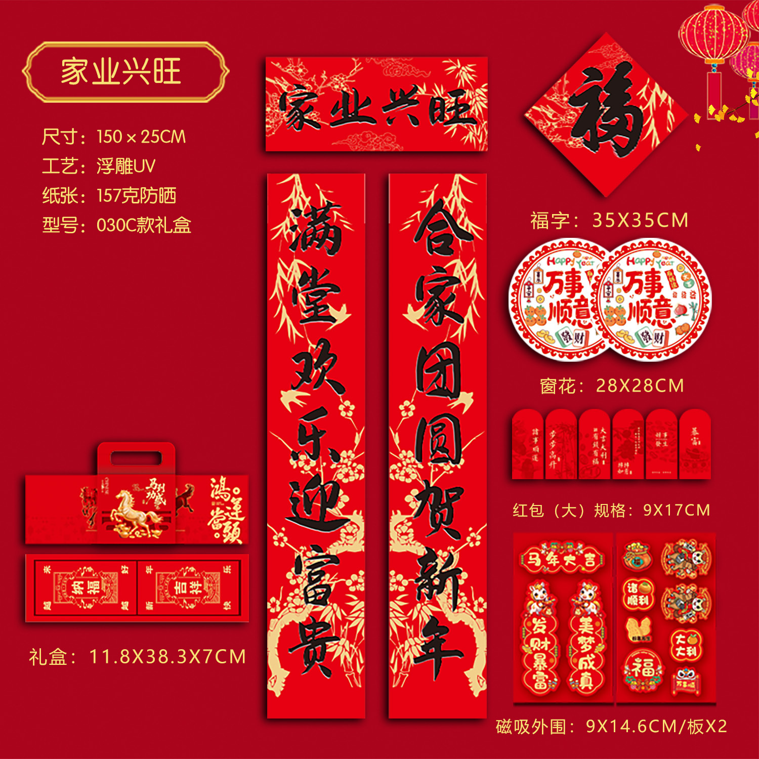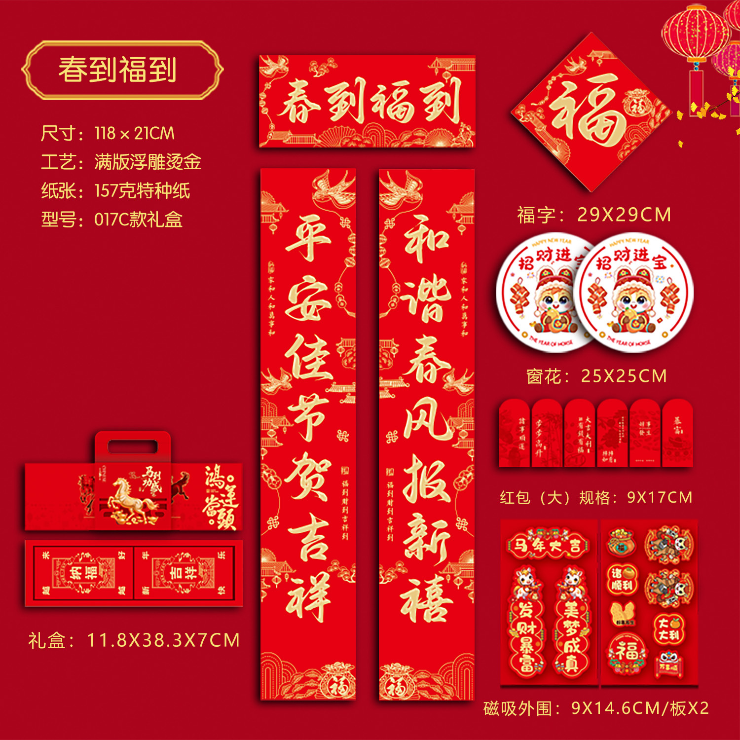 2026马年157克特种纸浮雕烫金对联防盗门小区大门高档礼盒对联