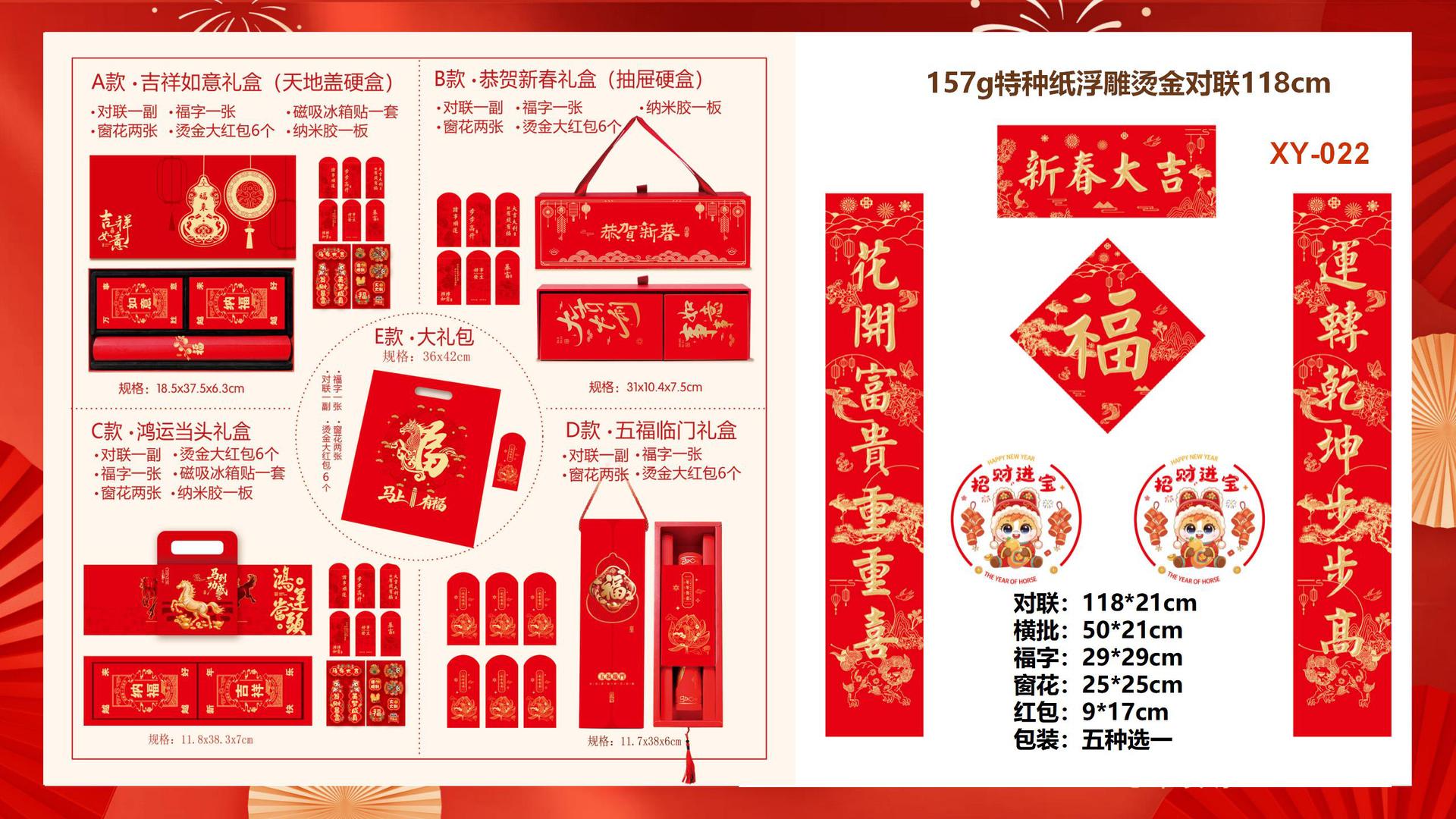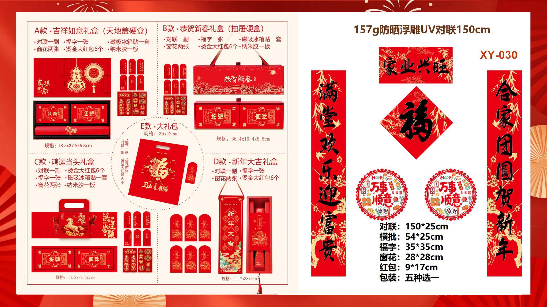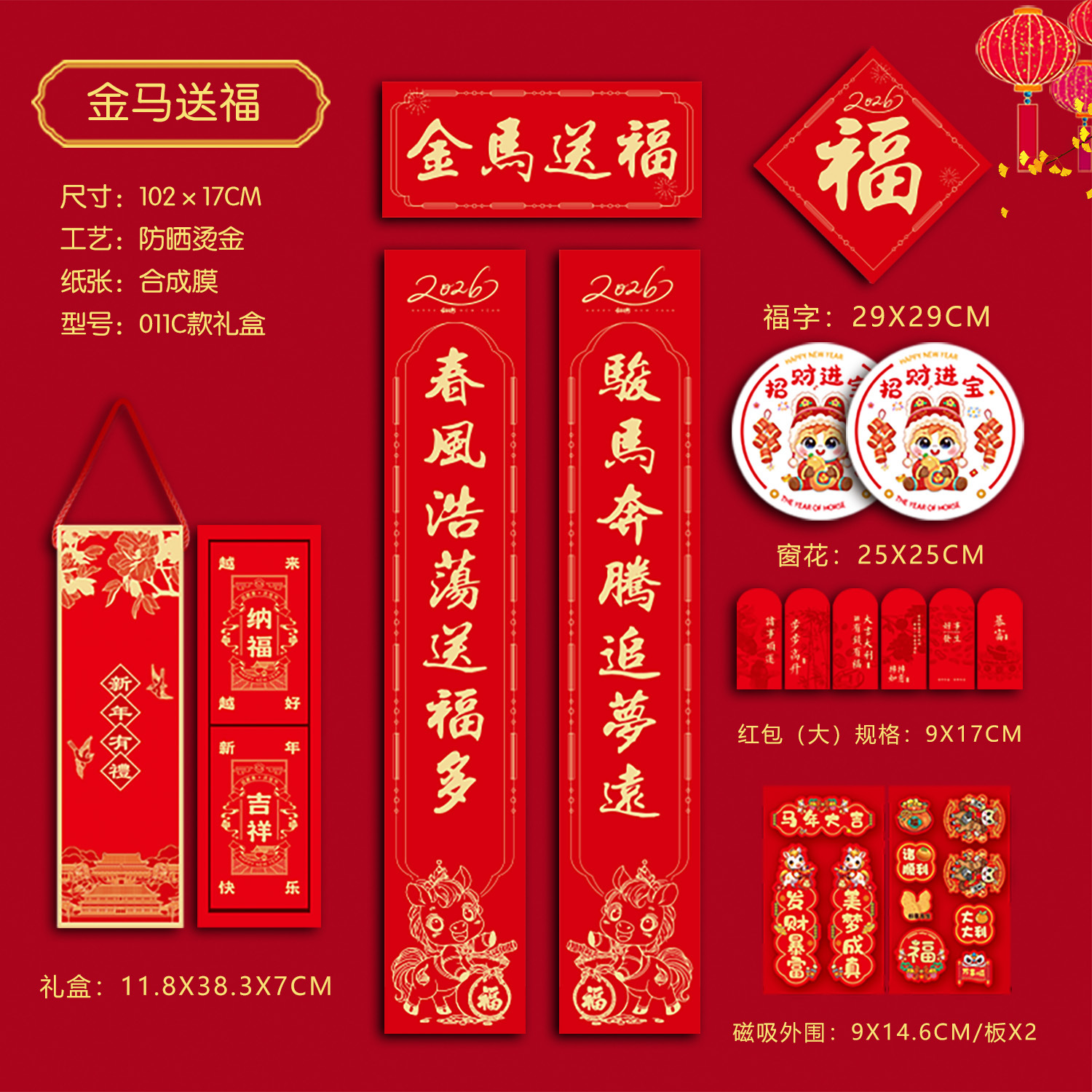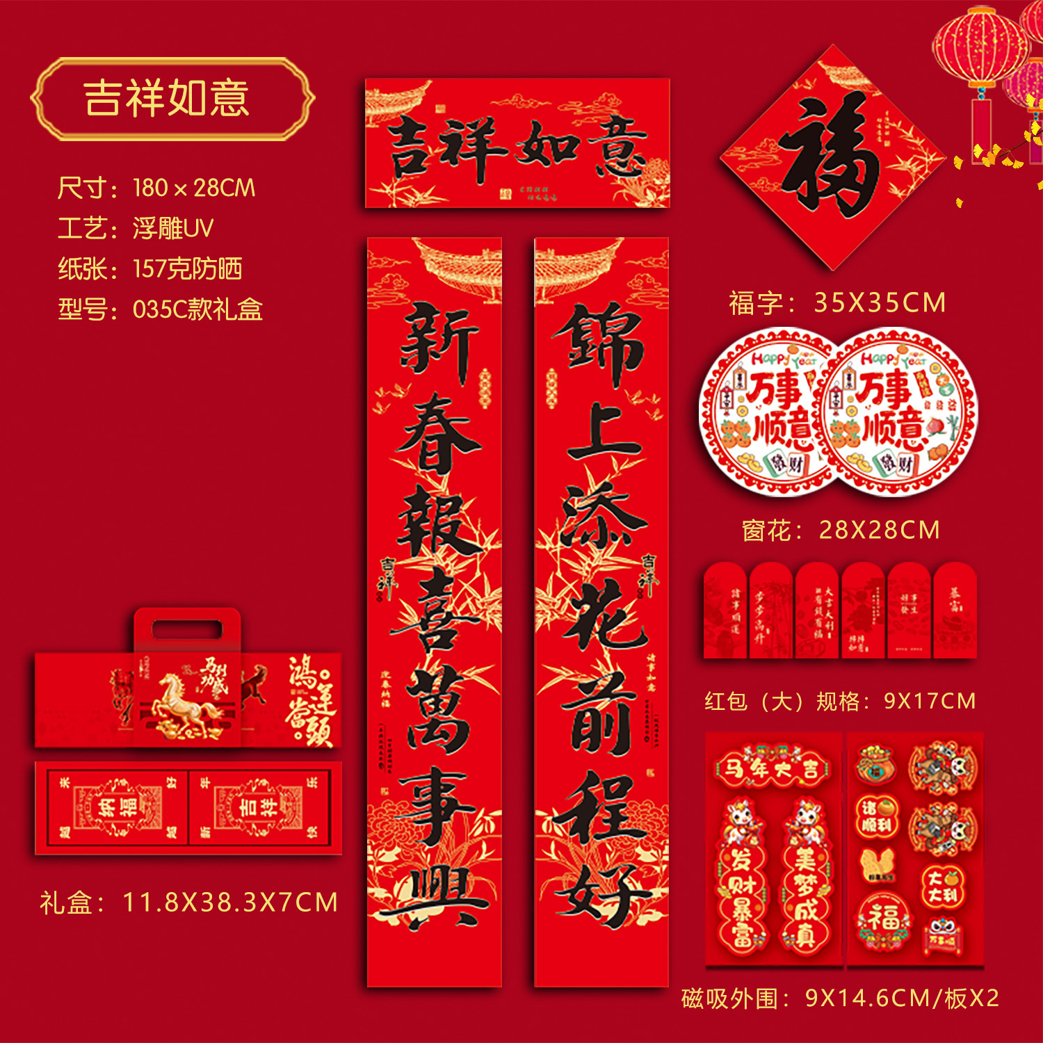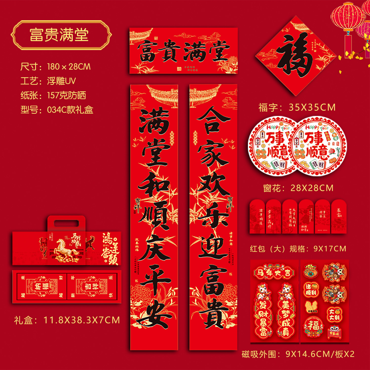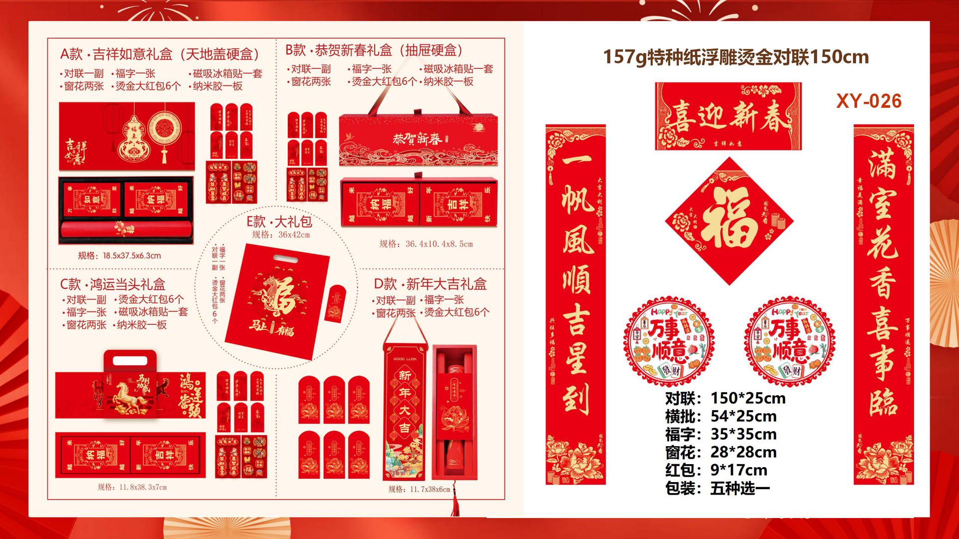 2026马年157克特种纸浮雕烫金对联防盗门小区大门高档礼盒对联