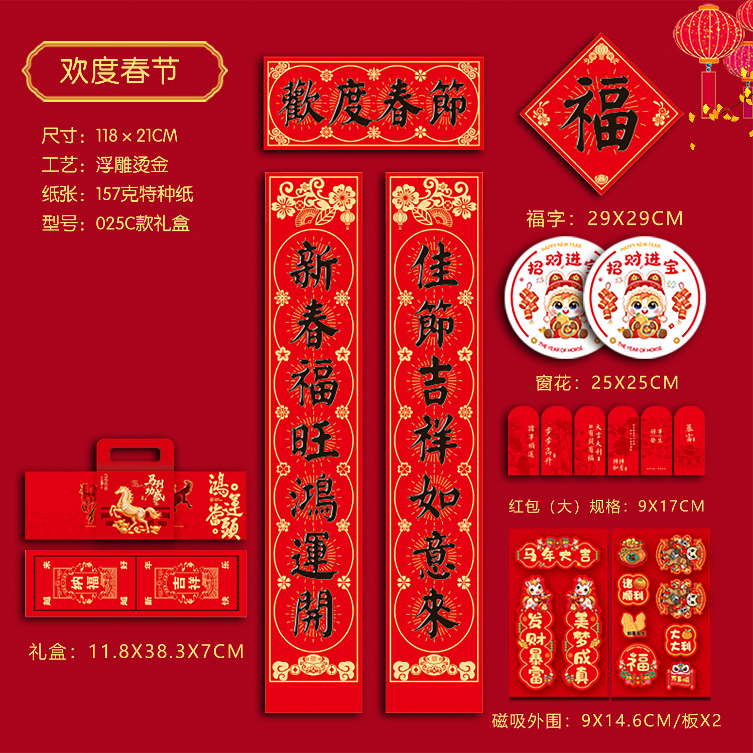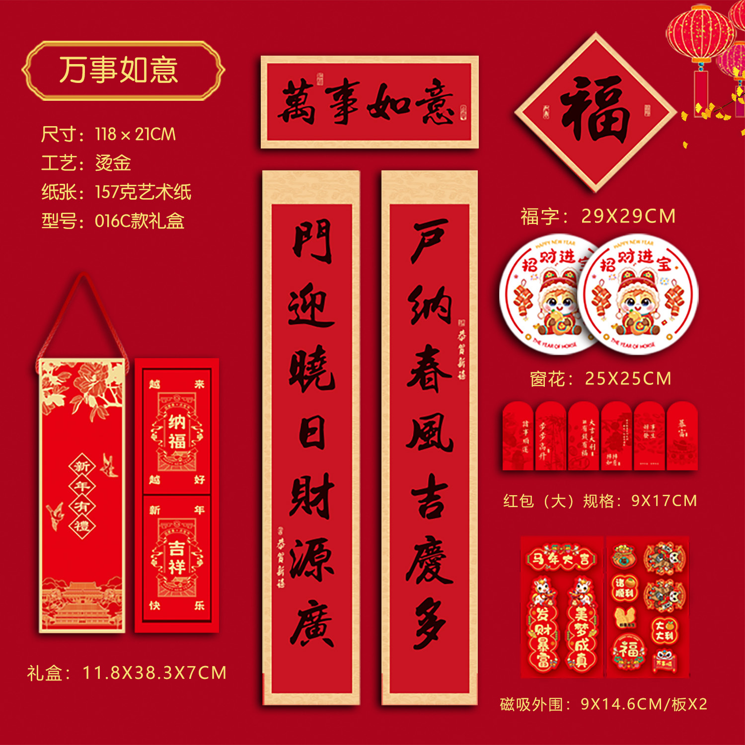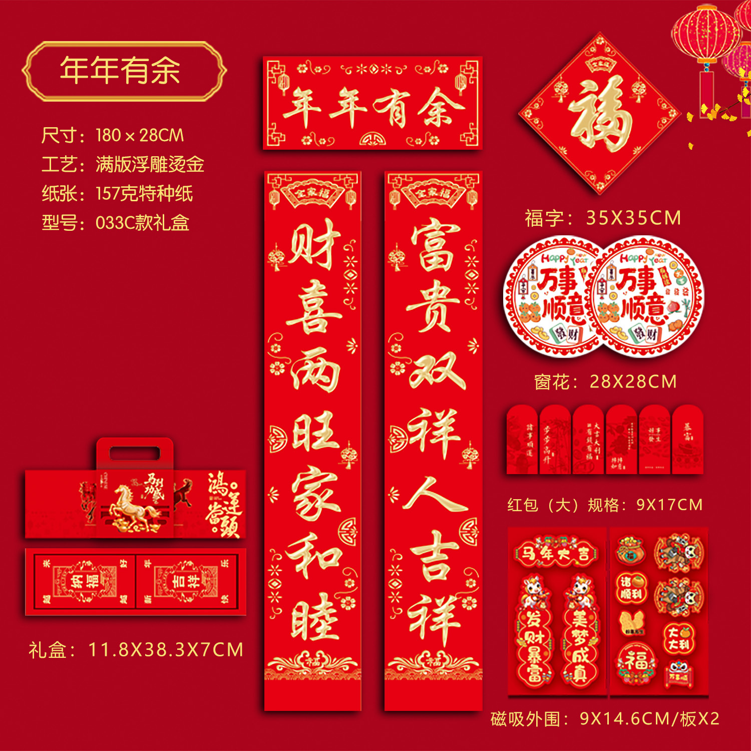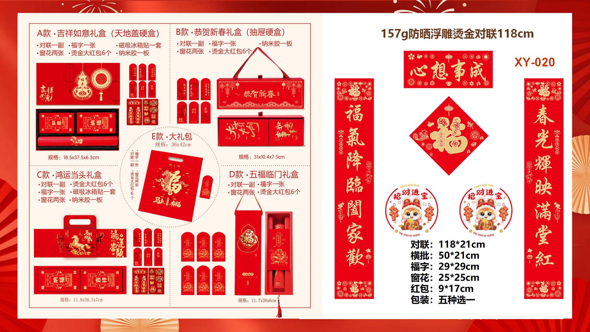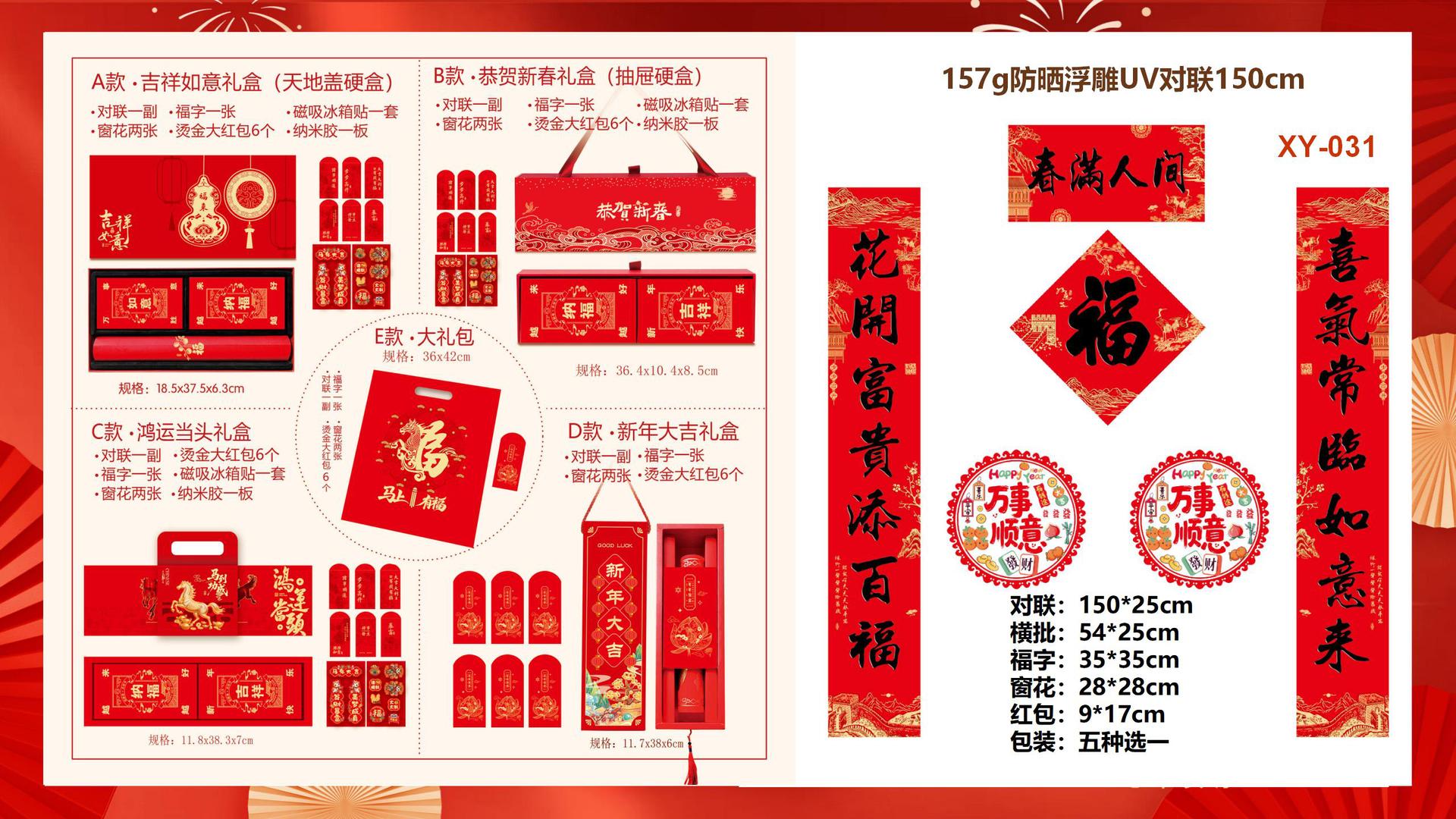 2026马年157克特种纸浮雕烫金对联防盗门小区大门高档礼盒对联