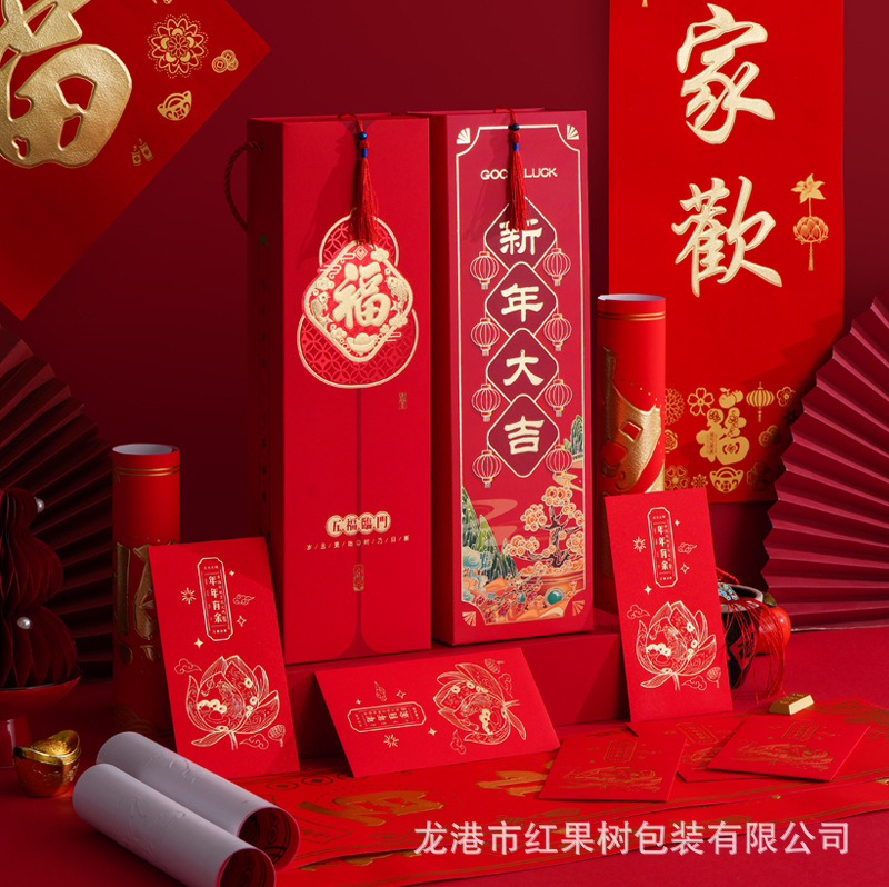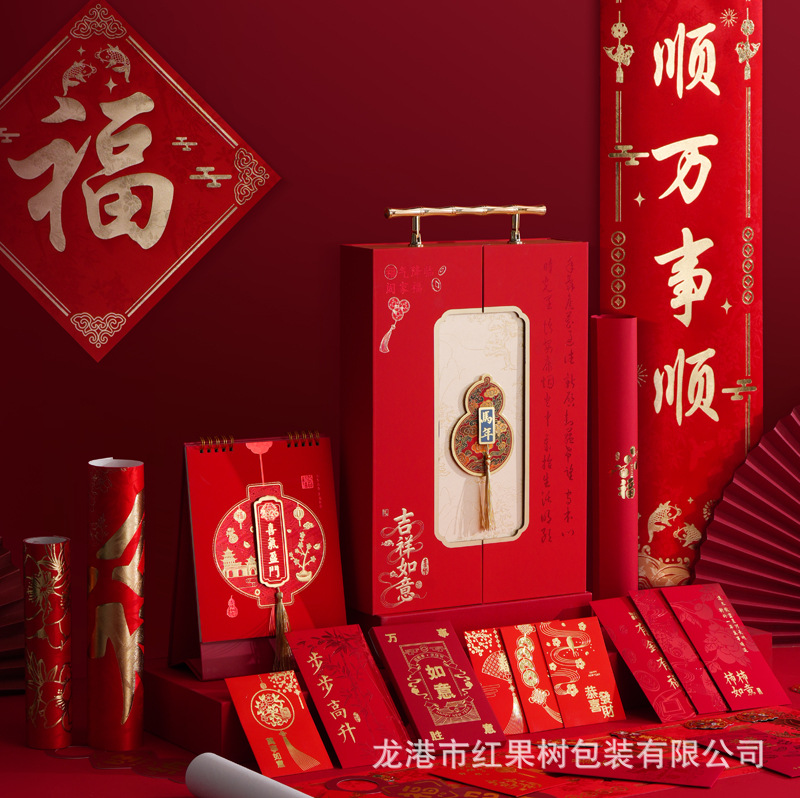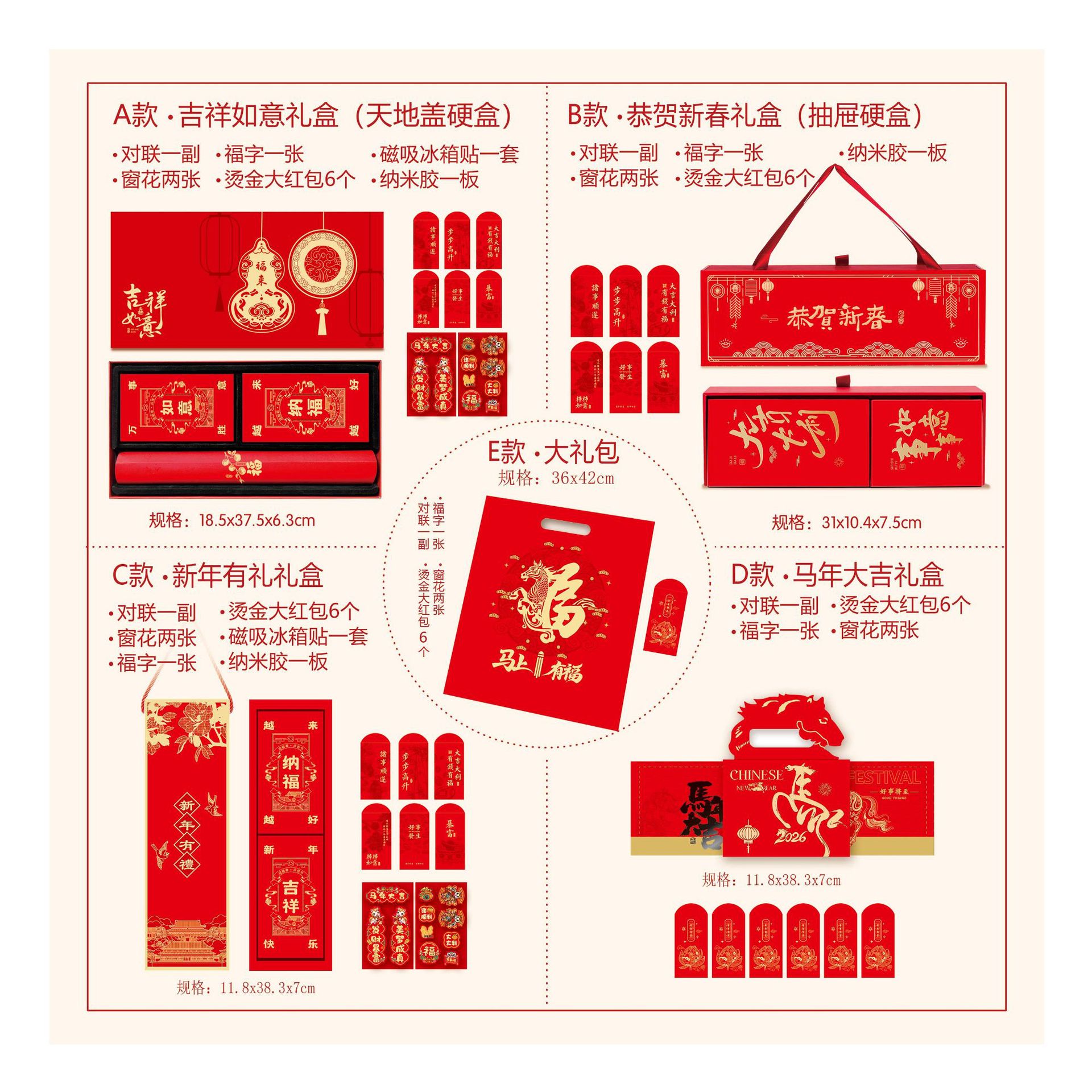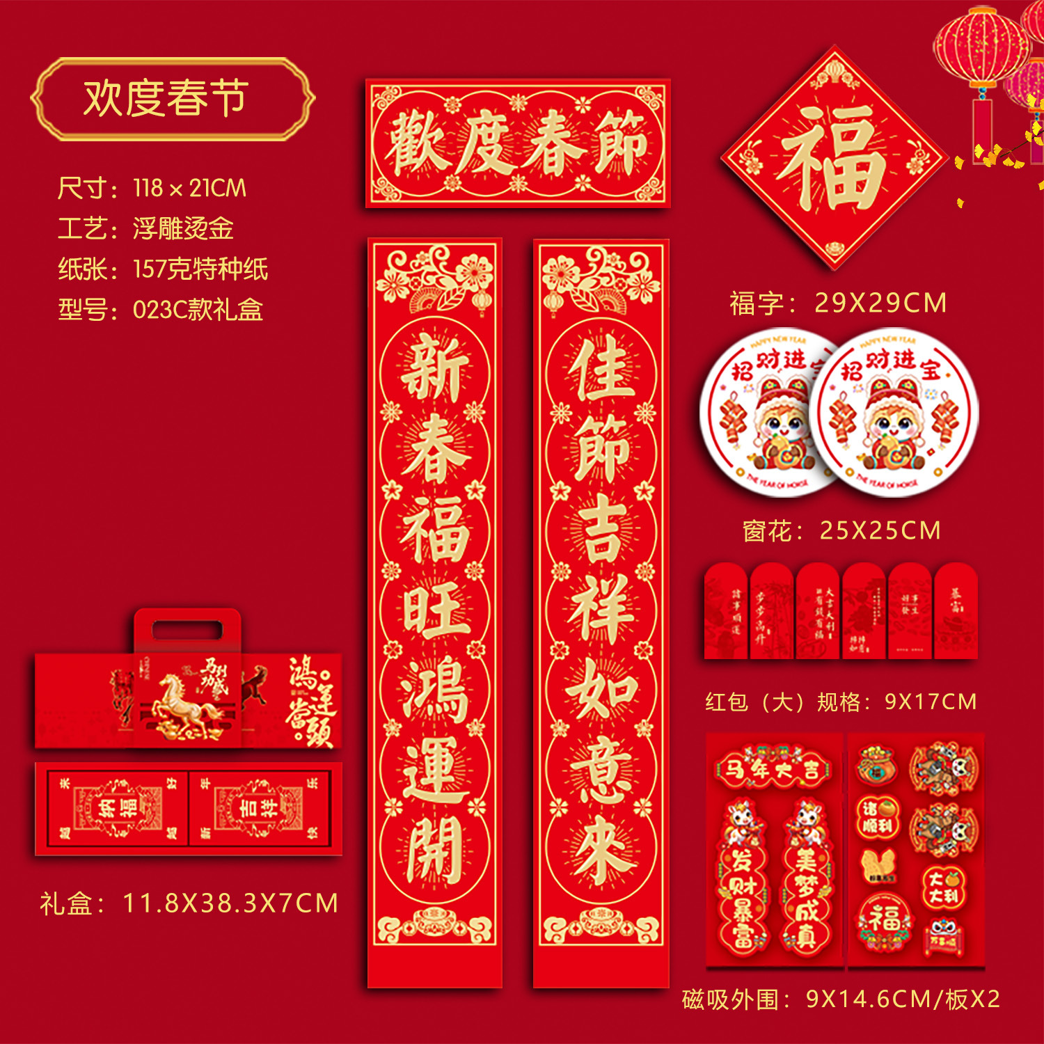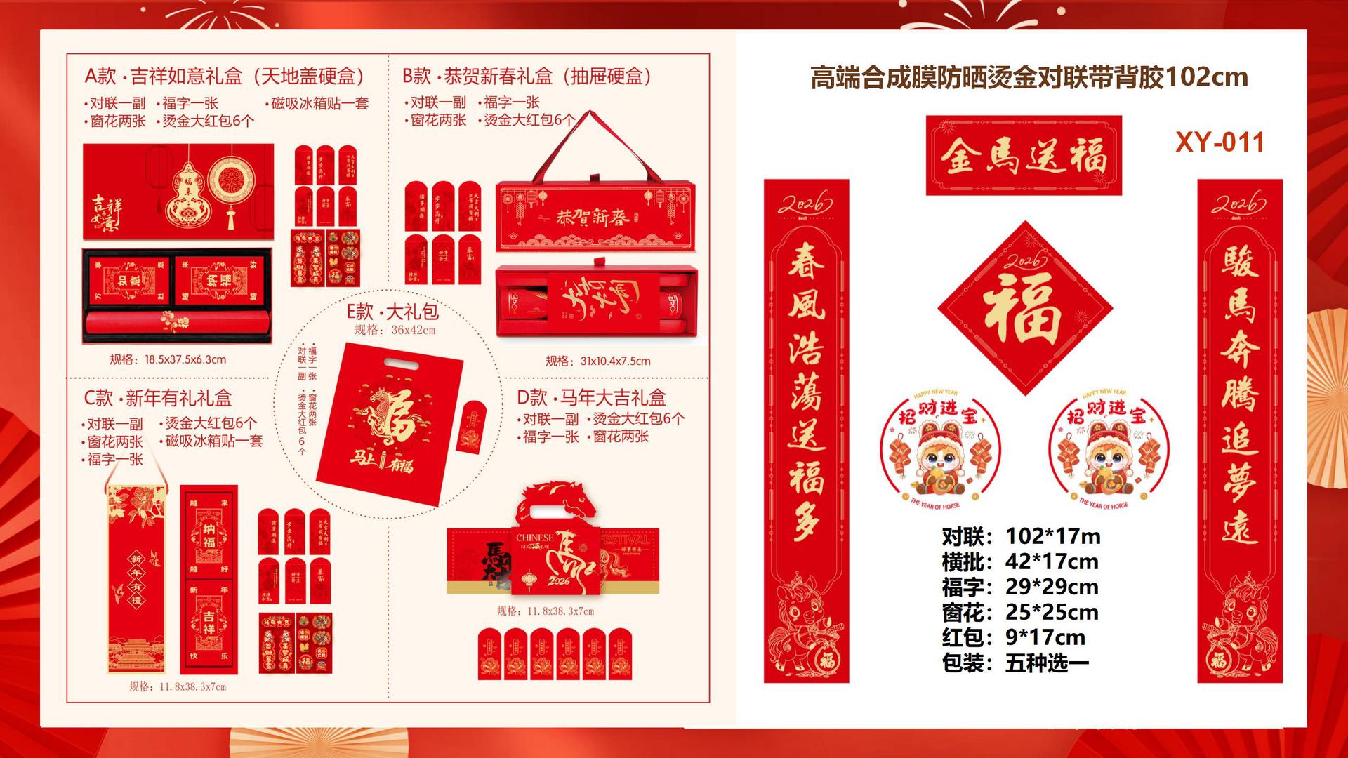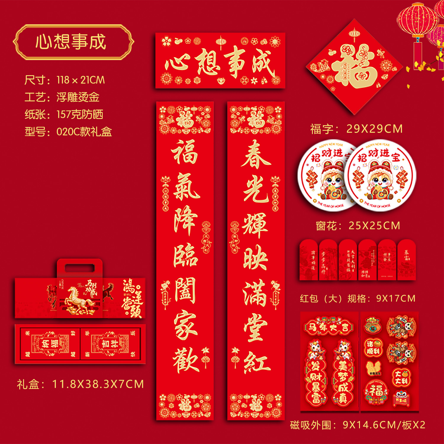 2026马年157克特种纸浮雕烫金对联防盗门小区大门高档礼盒对联