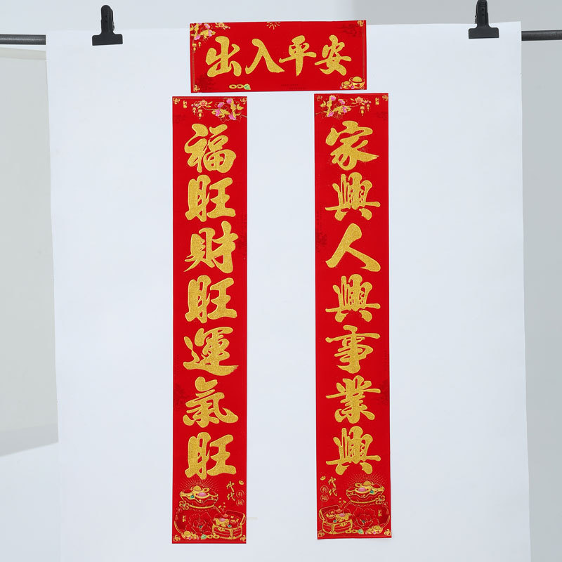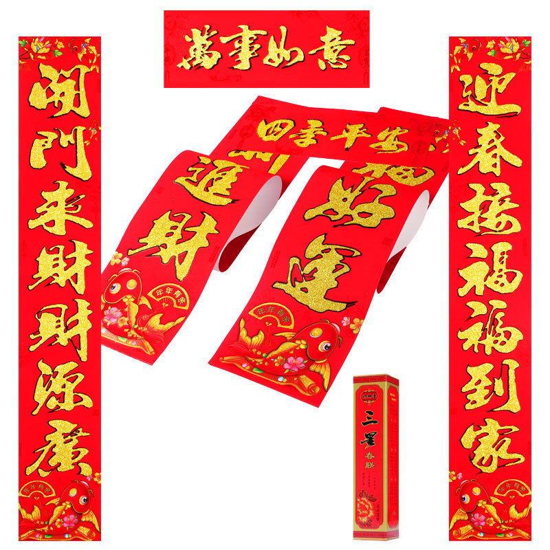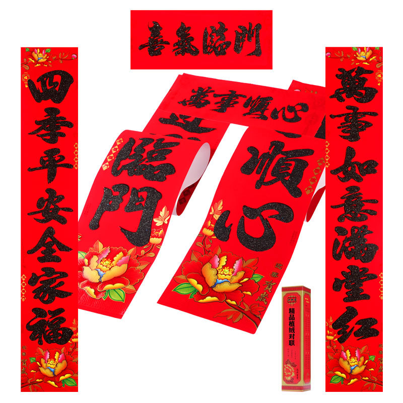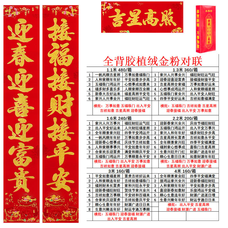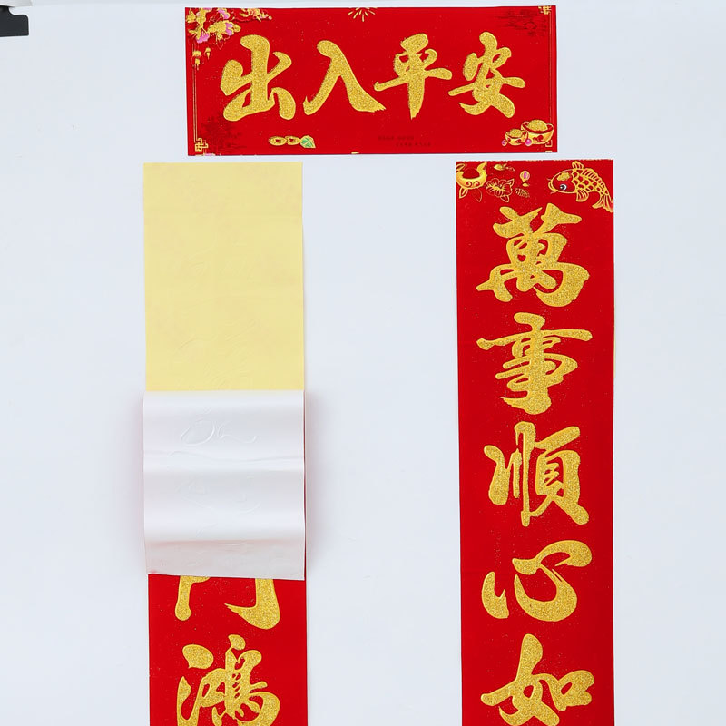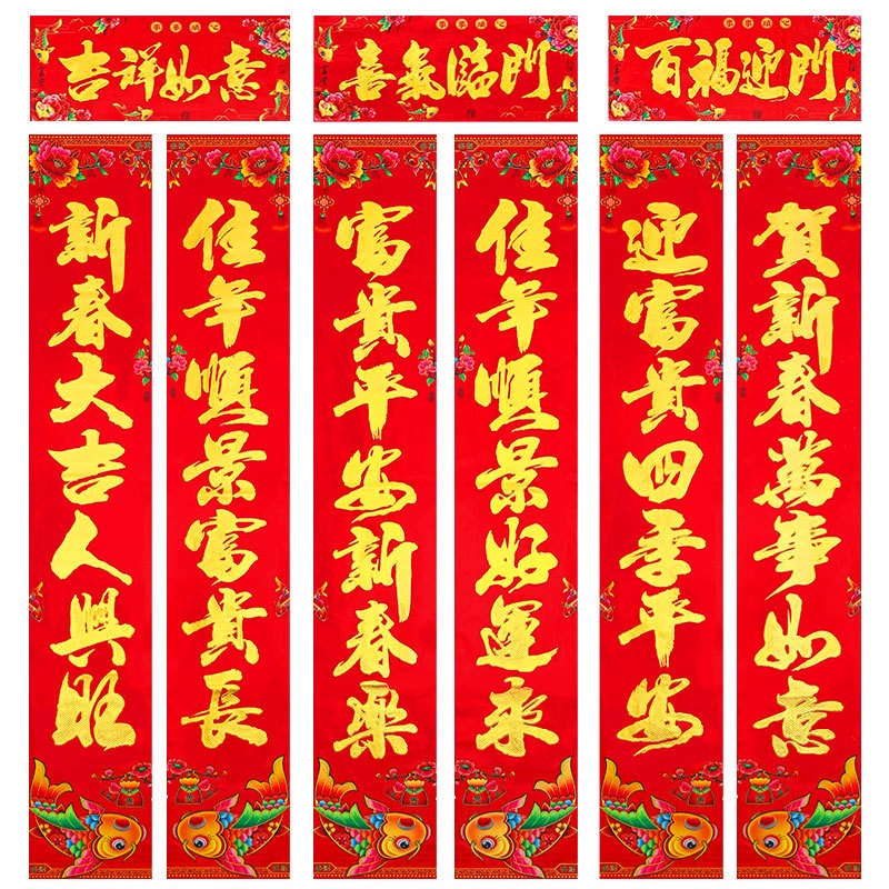 新款全背胶植绒满烫金撒金对联撕不破春联春节过新年门贴条胶对联