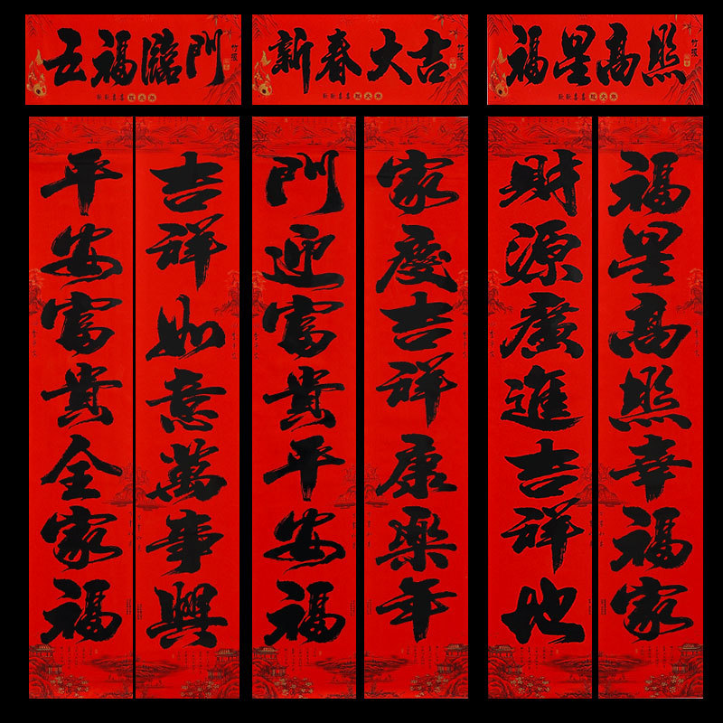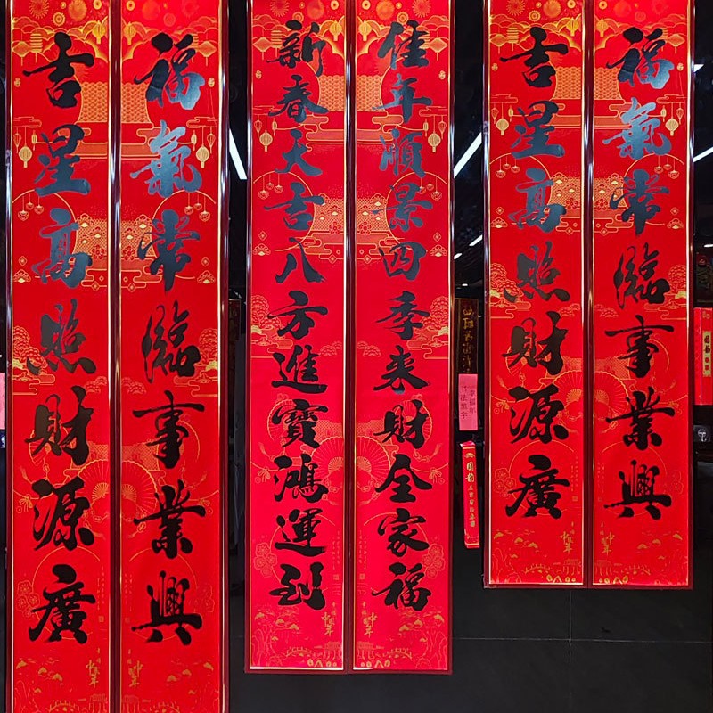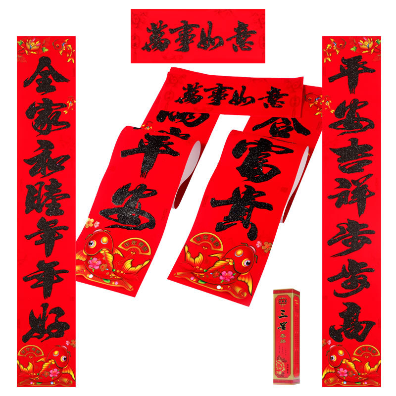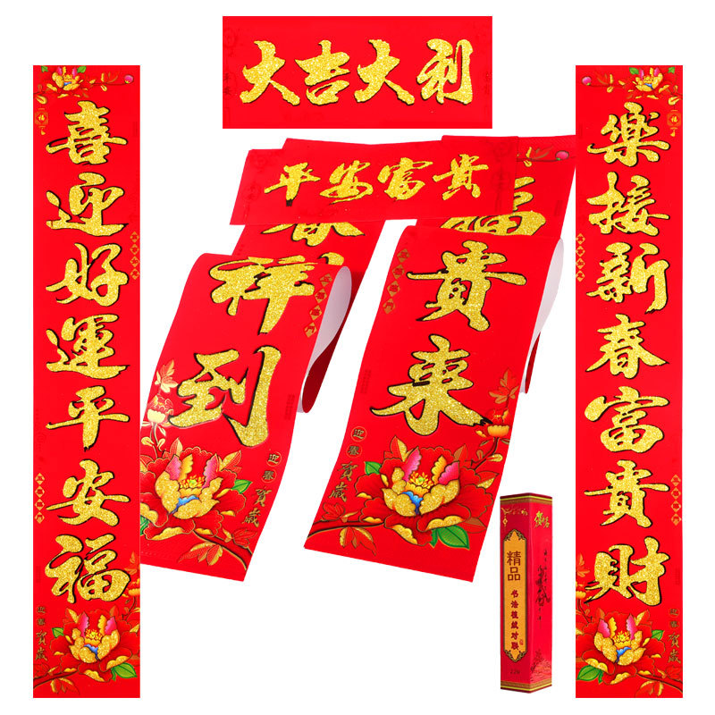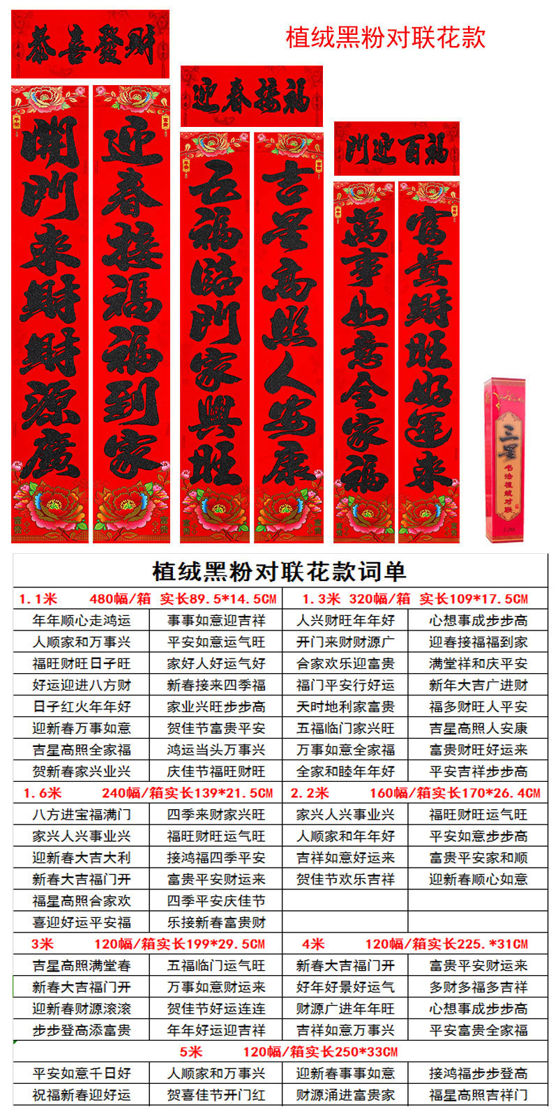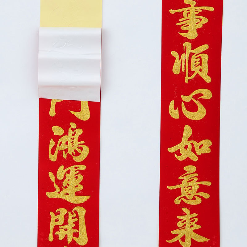 新款全背胶植绒满烫金撒金对联撕不破春联春节过新年门贴条胶对联