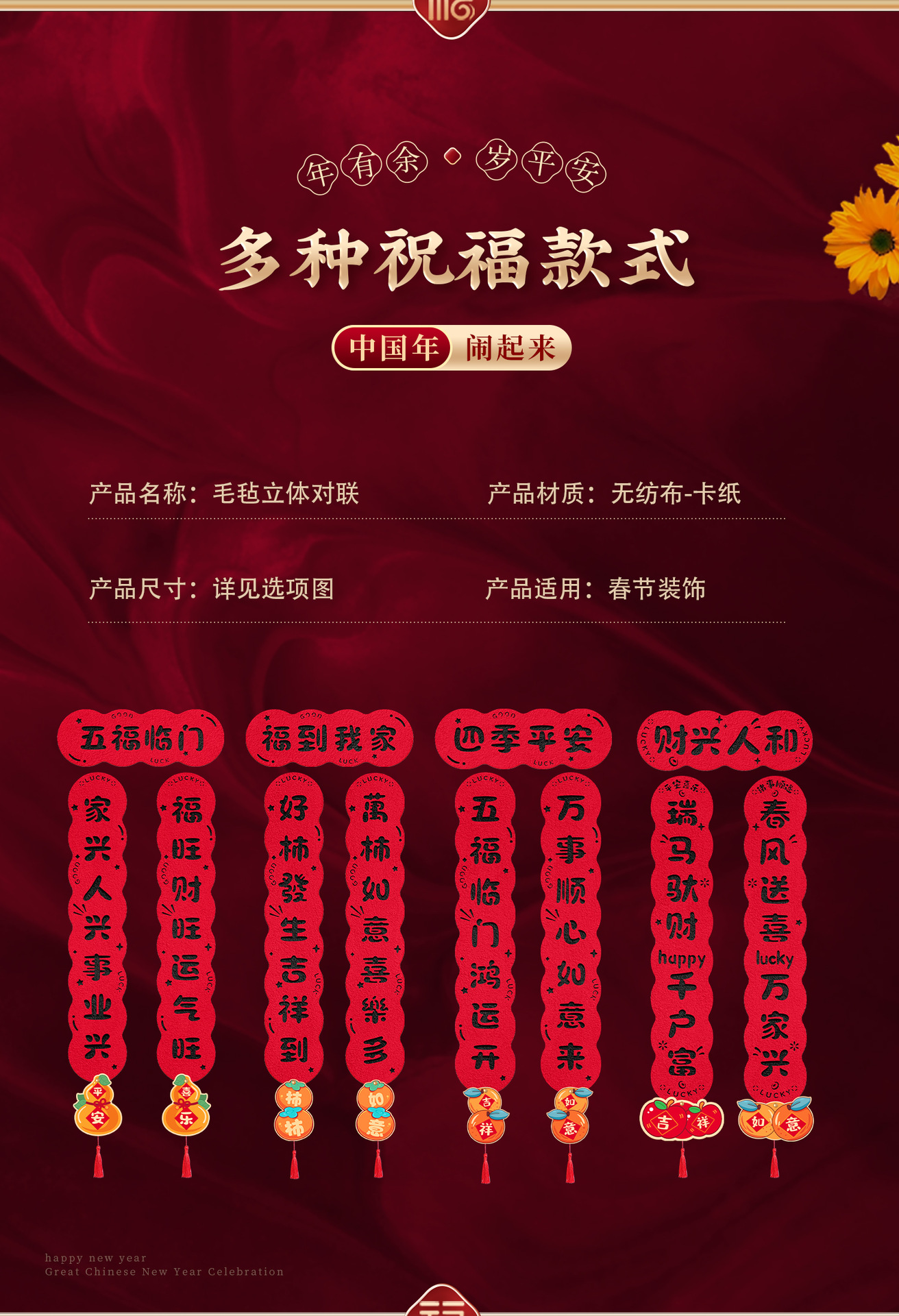 马年磁吸对联2026新款春联新年春节门联过年福字门贴氛围装饰用品