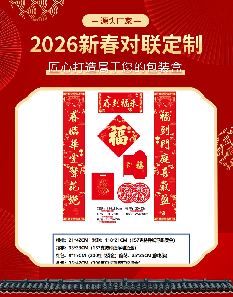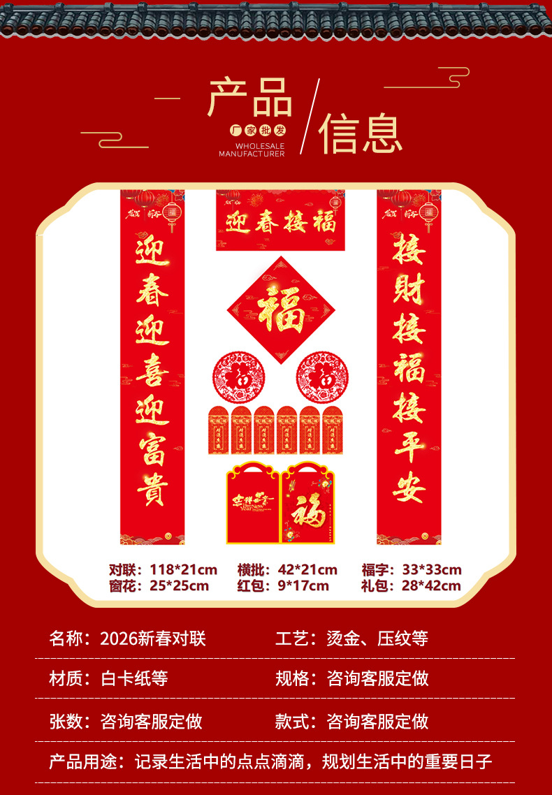 2026马年对联定制专版烫金春联大礼包公司企业红包福字礼盒套装