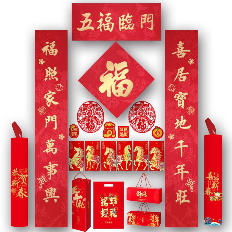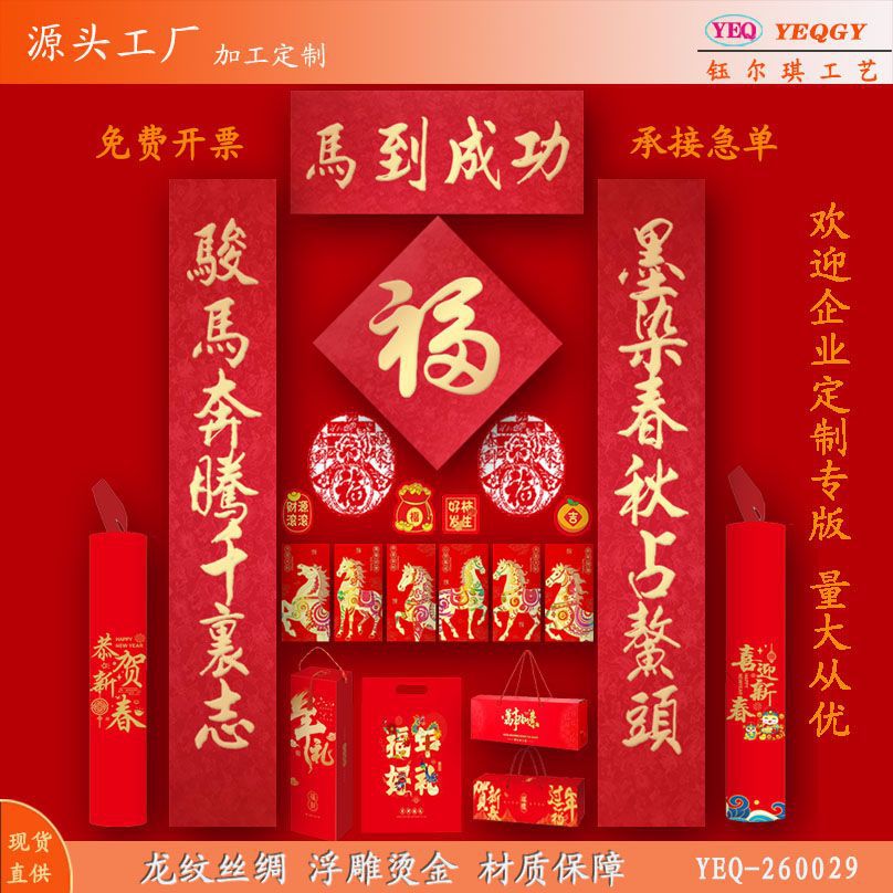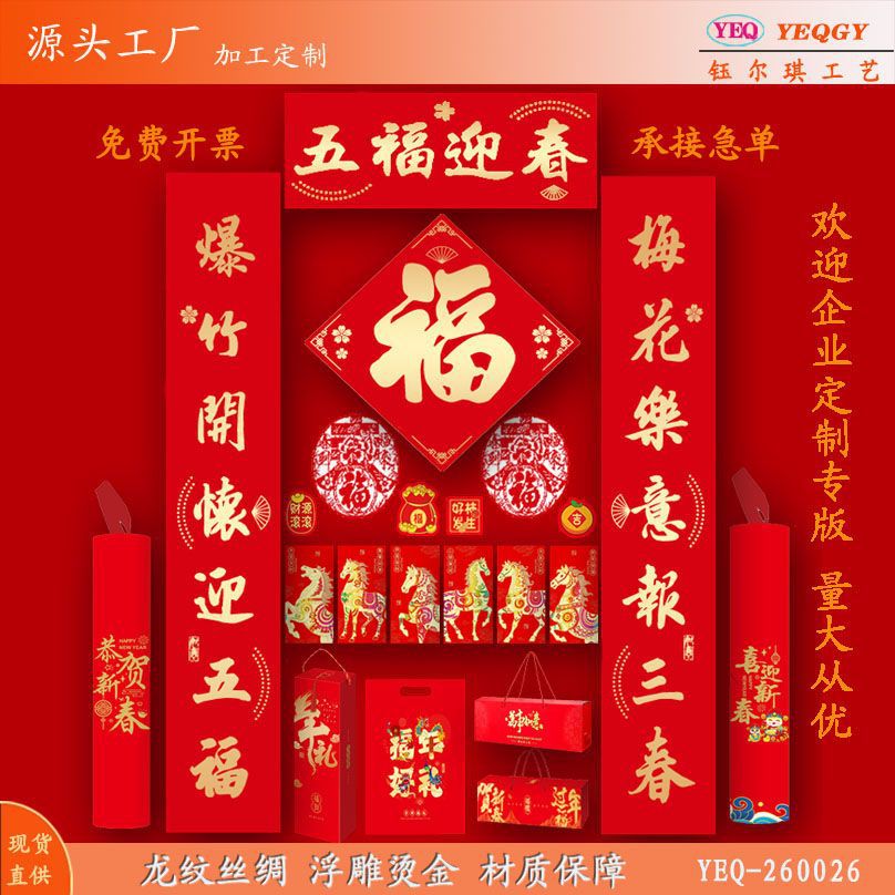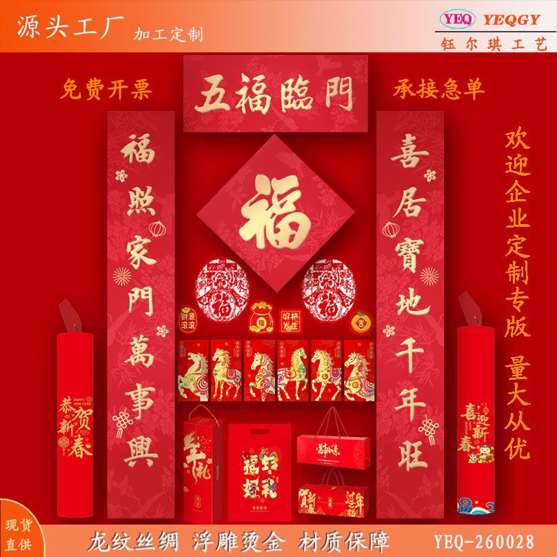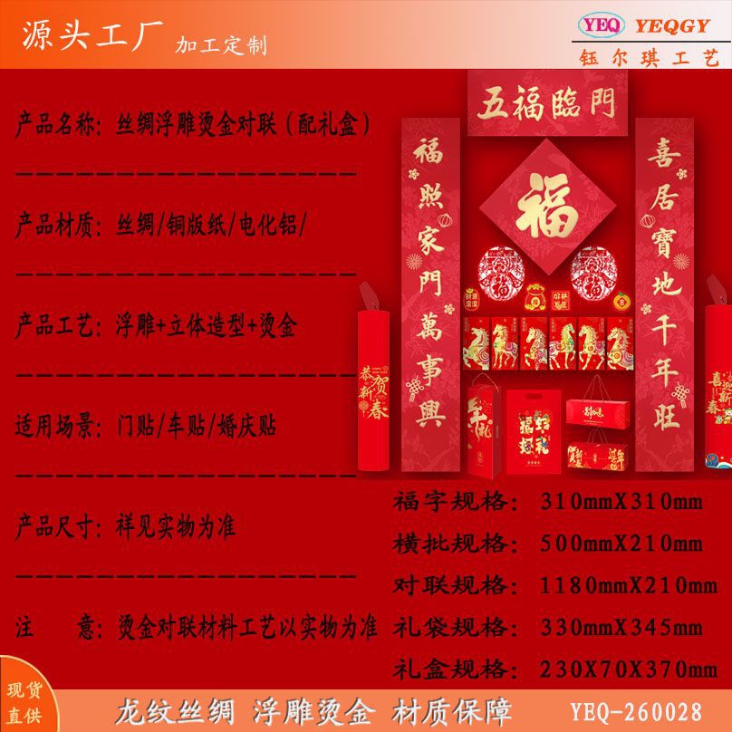 2026丝绸对联定制迎新春高档浮雕烫金福字门联门贴挂件大礼包套装