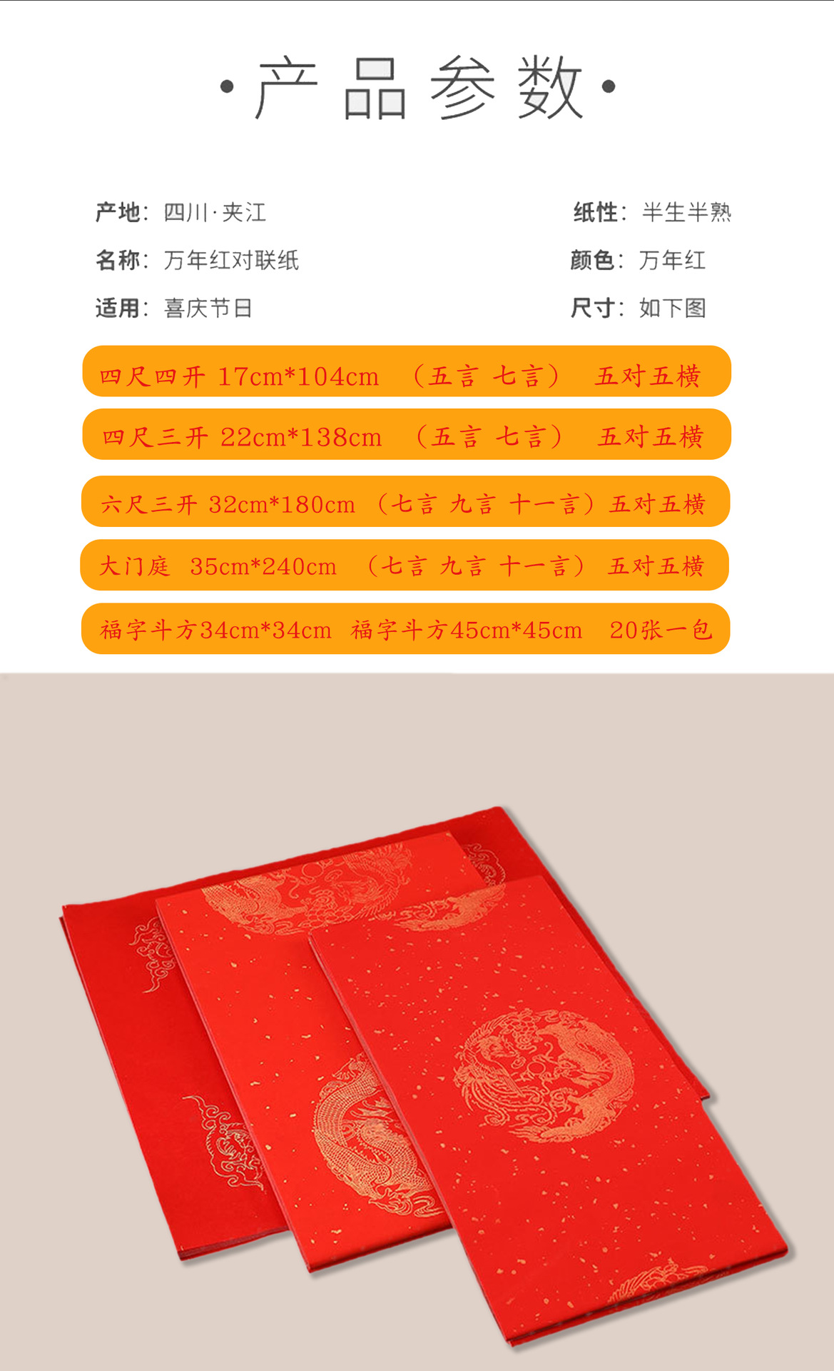 2025年对联纸万年红宣纸长卷洒金手写空白书法春联纸七言大红纸
