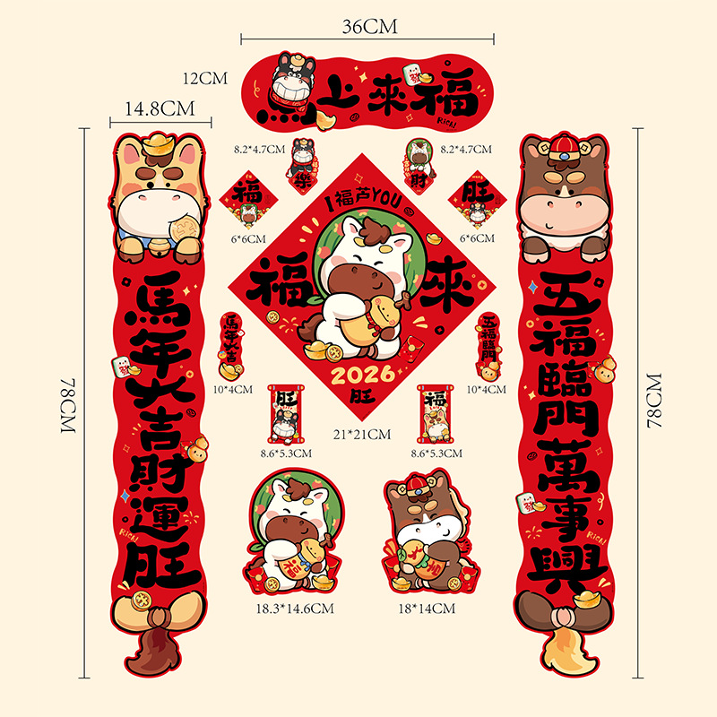 2026 new small antithetical couplet horse year new year couplet flannel chinese new year household fortune sticker spring festival couplets entry door hanging decoration