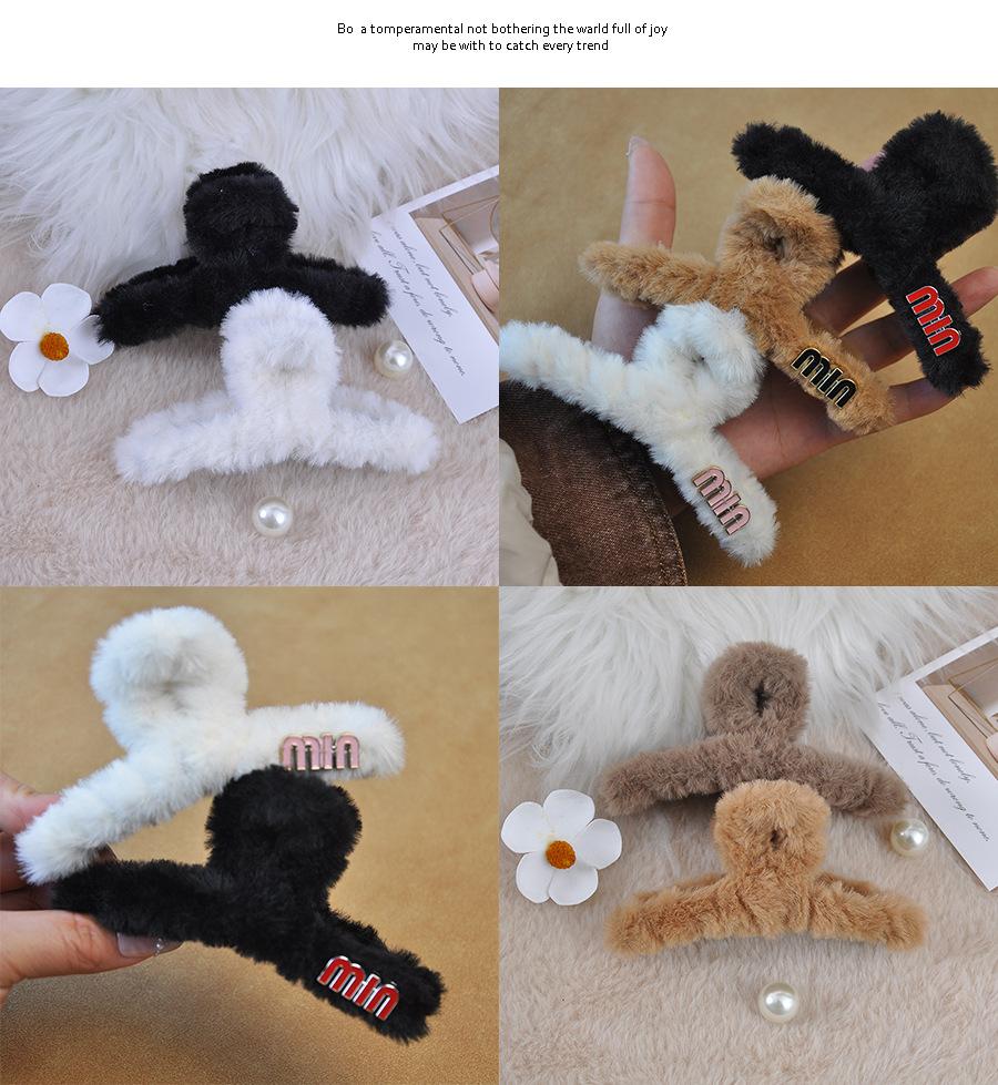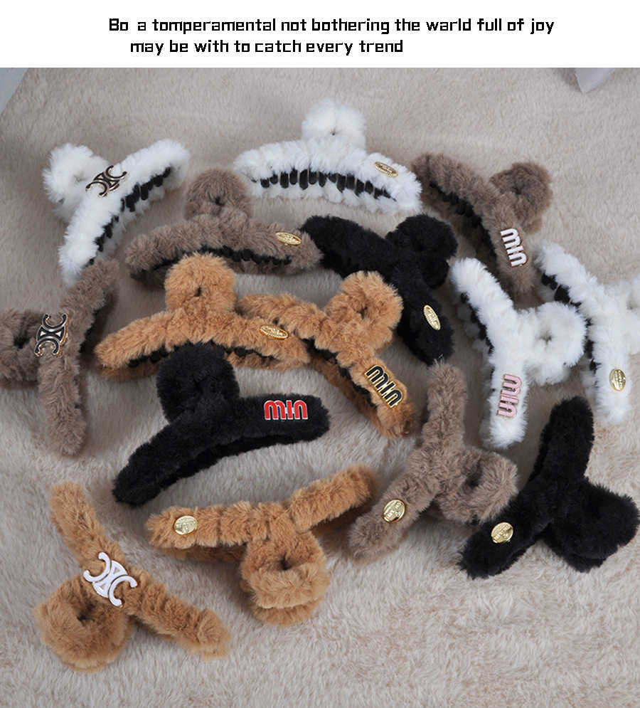 秋冬毛绒抓夹女2025新款高级鲨鱼夹后脑勺发夹高级感夹子头饰抓夹