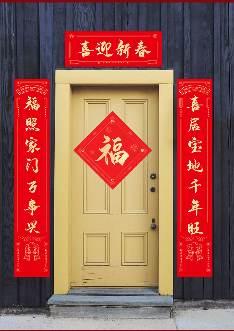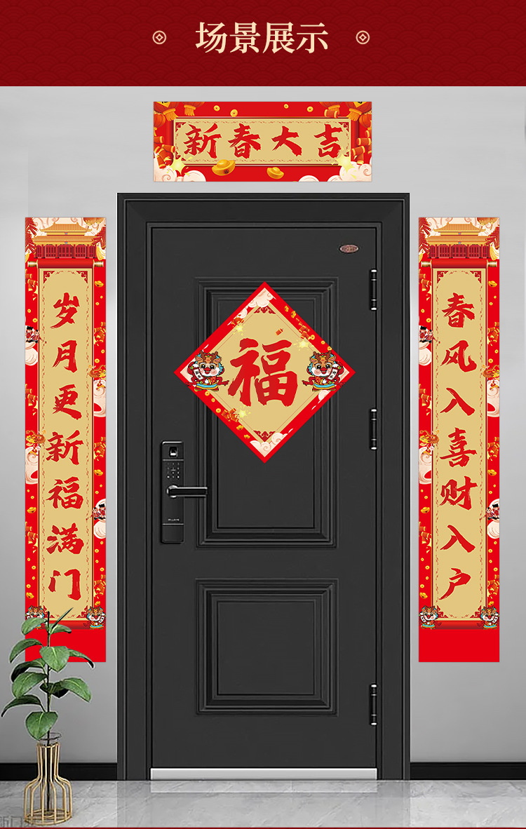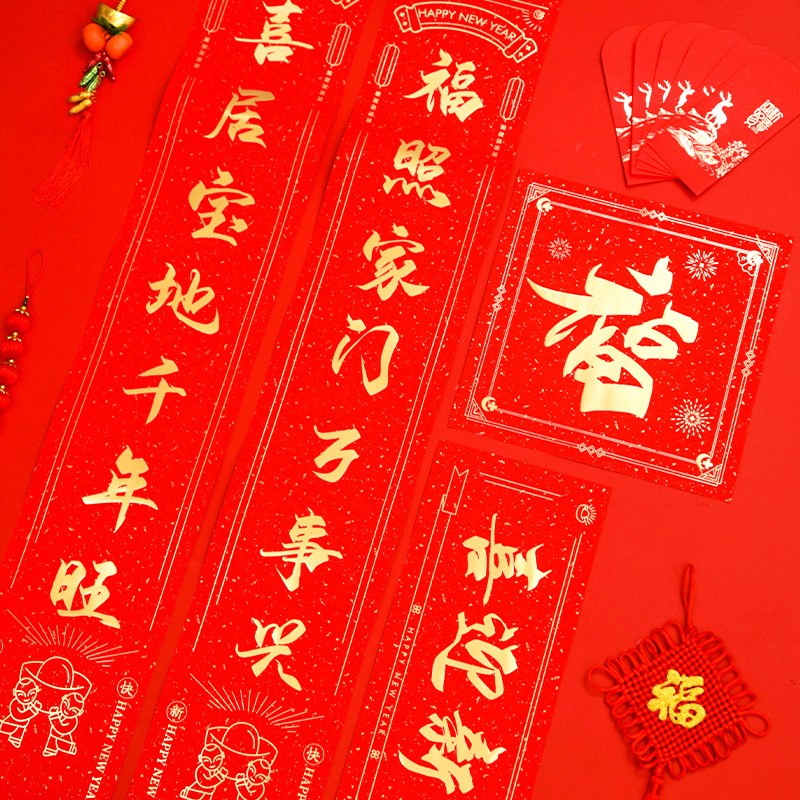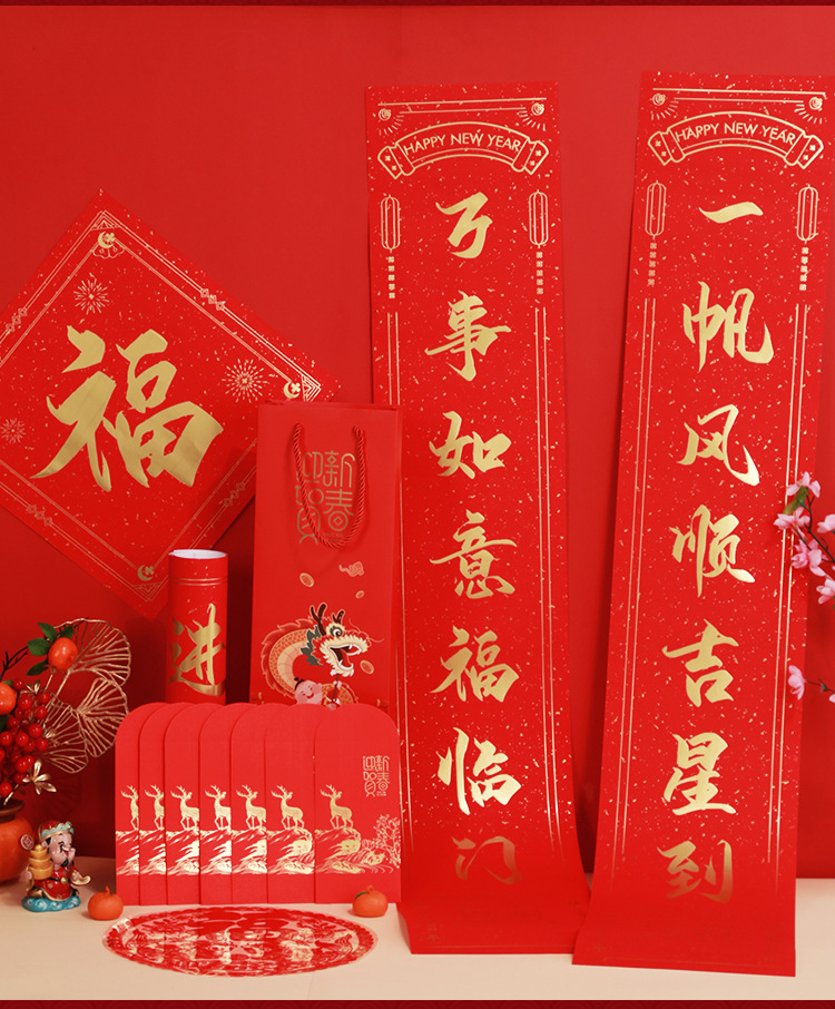 2025蛇年对联定制银行保险公司烫金植绒春联定做大礼包印LOGO对联