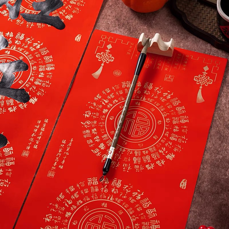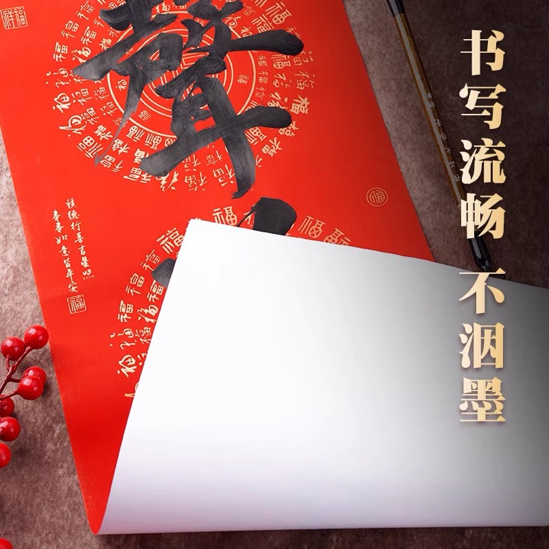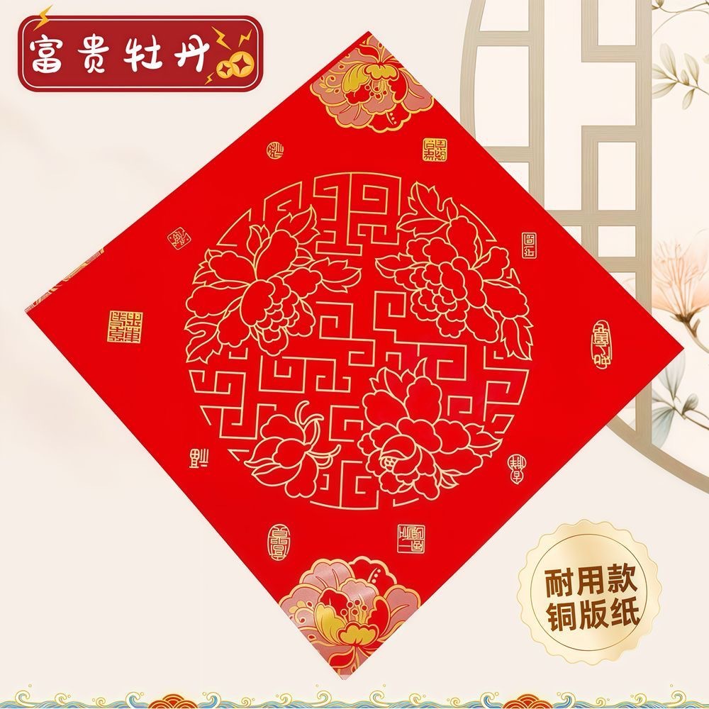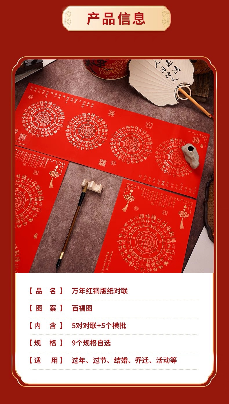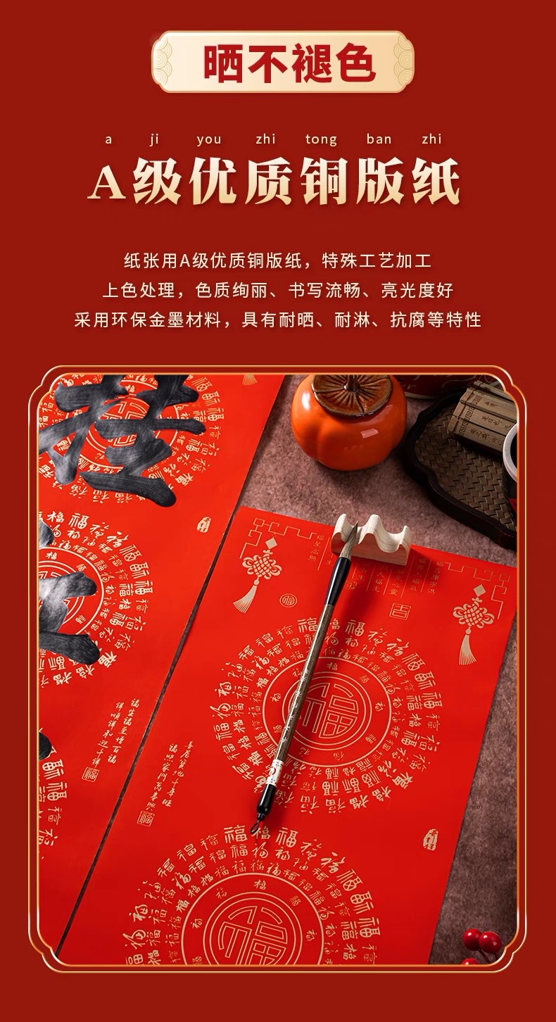 万年红铜版纸对联纸空白手写红纸对联斗方福字春节自写春联纸加厚