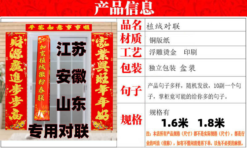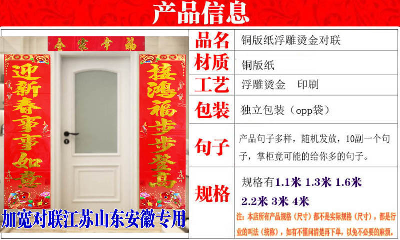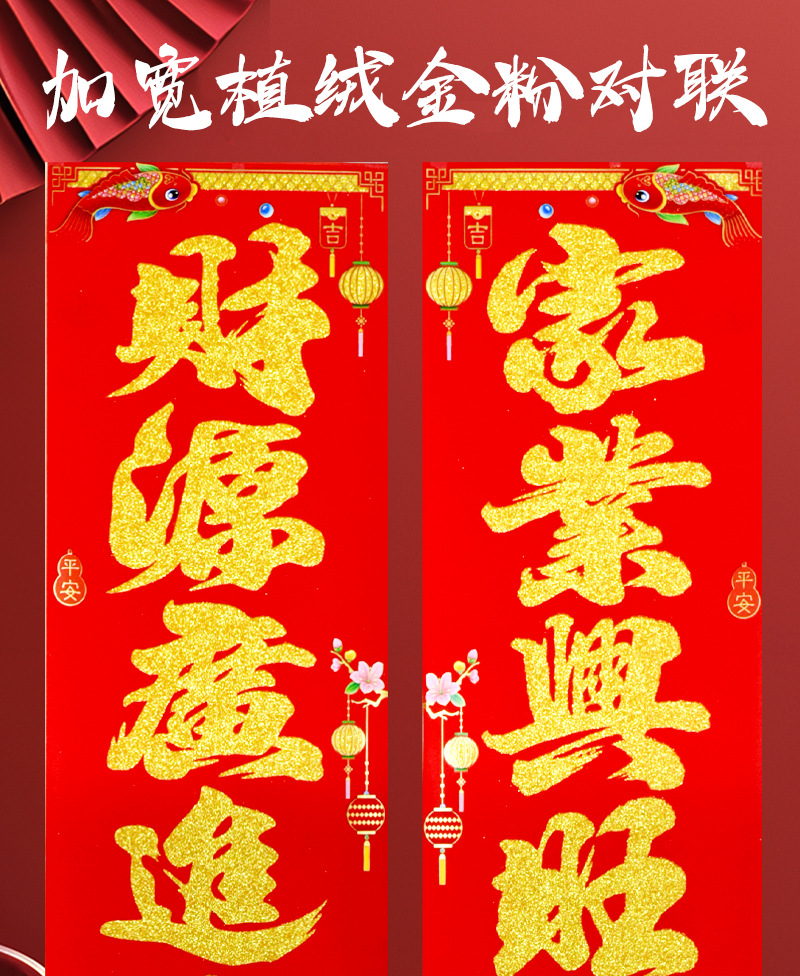 加宽对联四字五字七字门芯春联批发安徽山东江苏安徽门对植绒对联