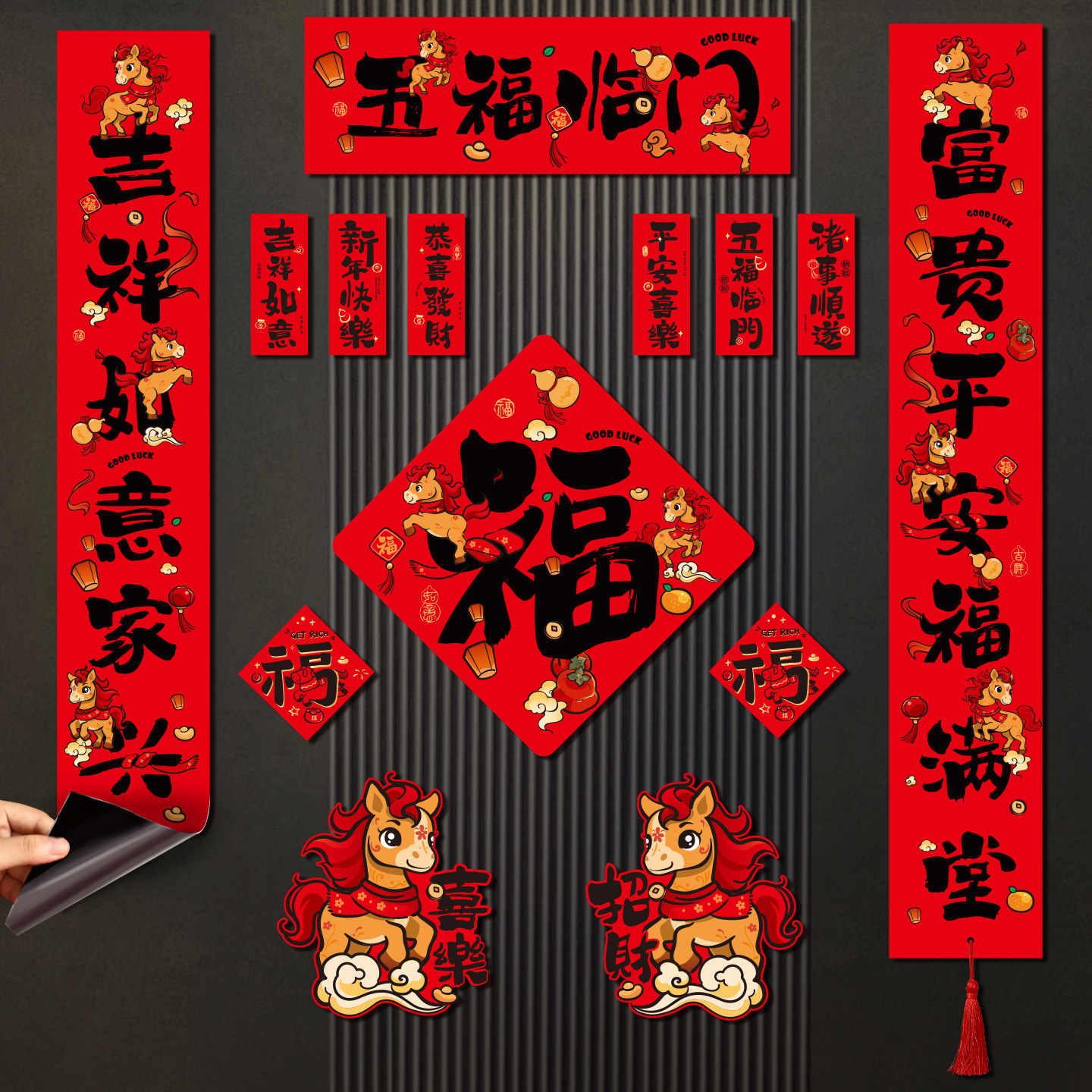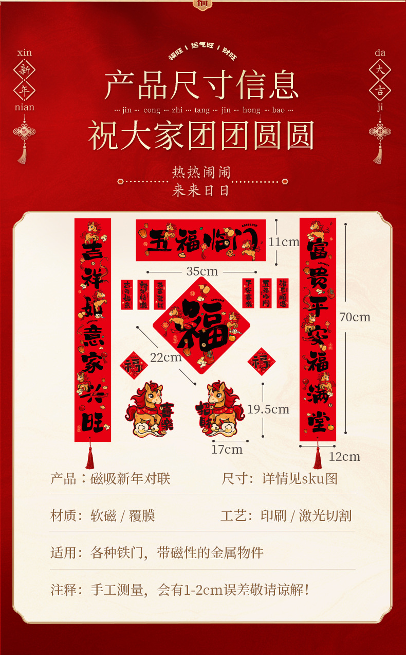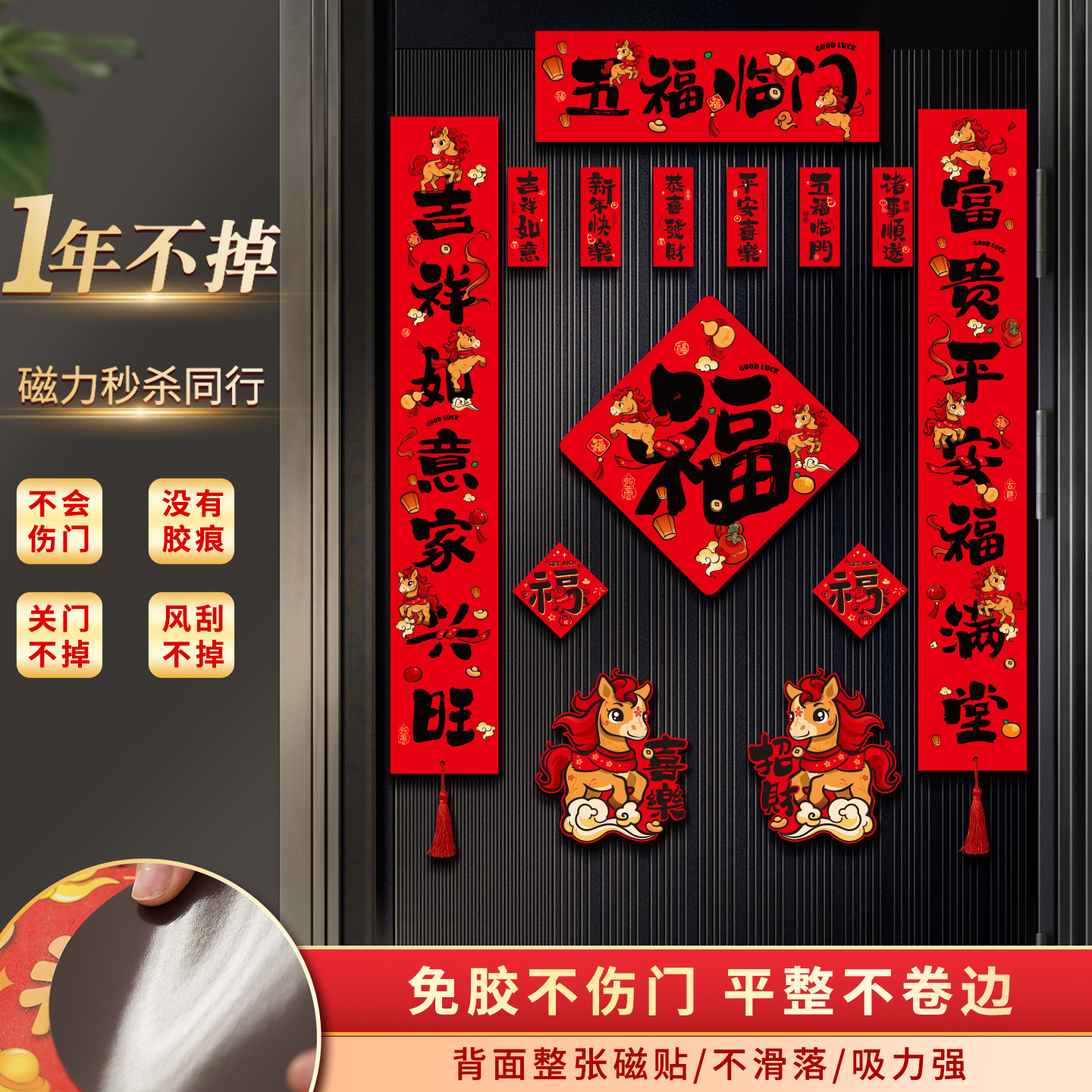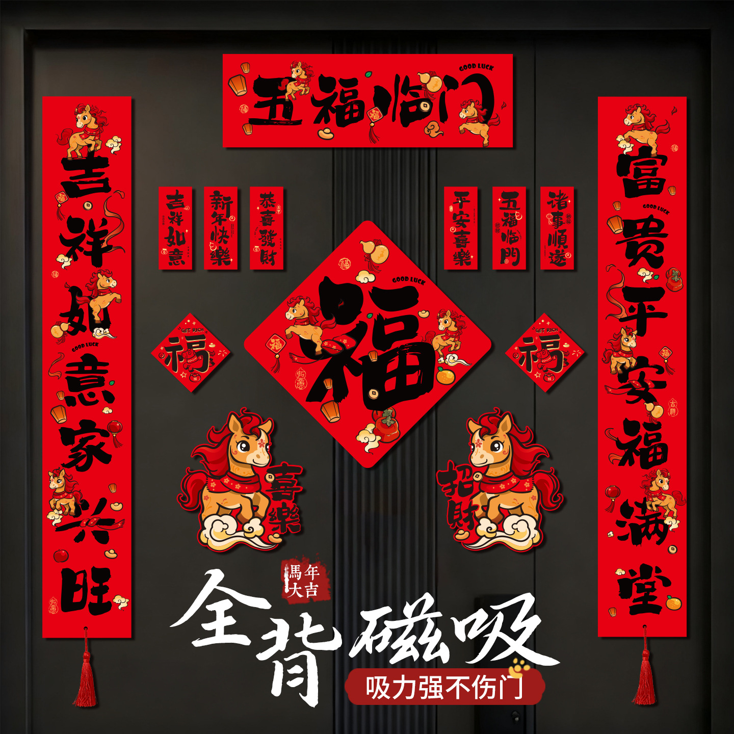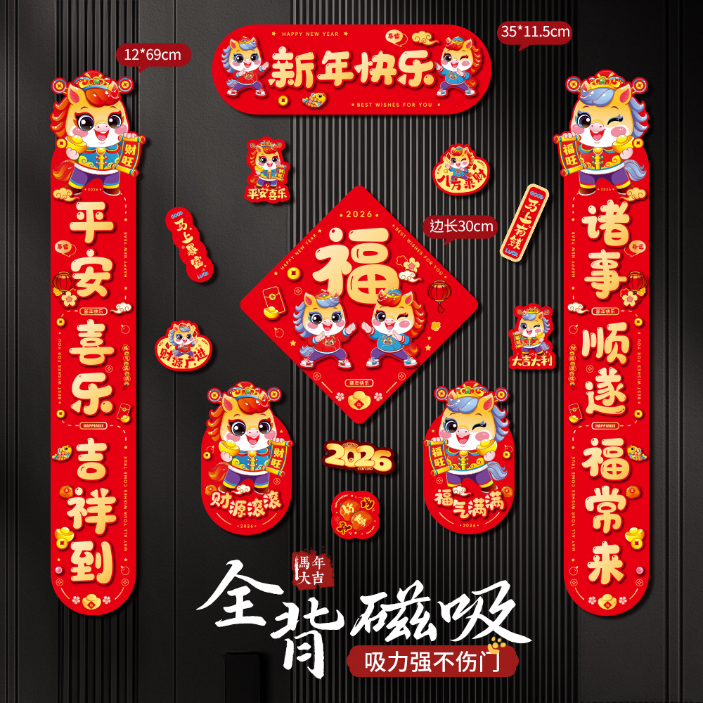 2026马年春联门贴新年新款磁吸对联新春春节门联创意过年装饰用品