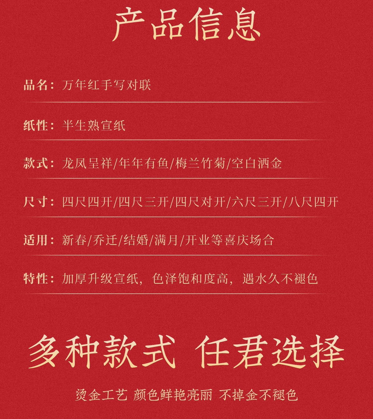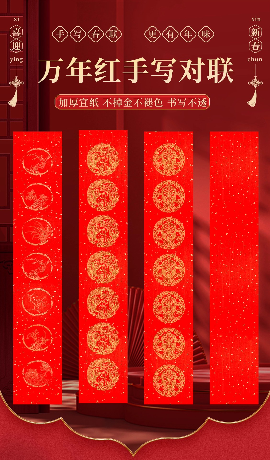 新春对联纸春联纸斗方空白手写对联专用纸红色宣纸福字批发加厚