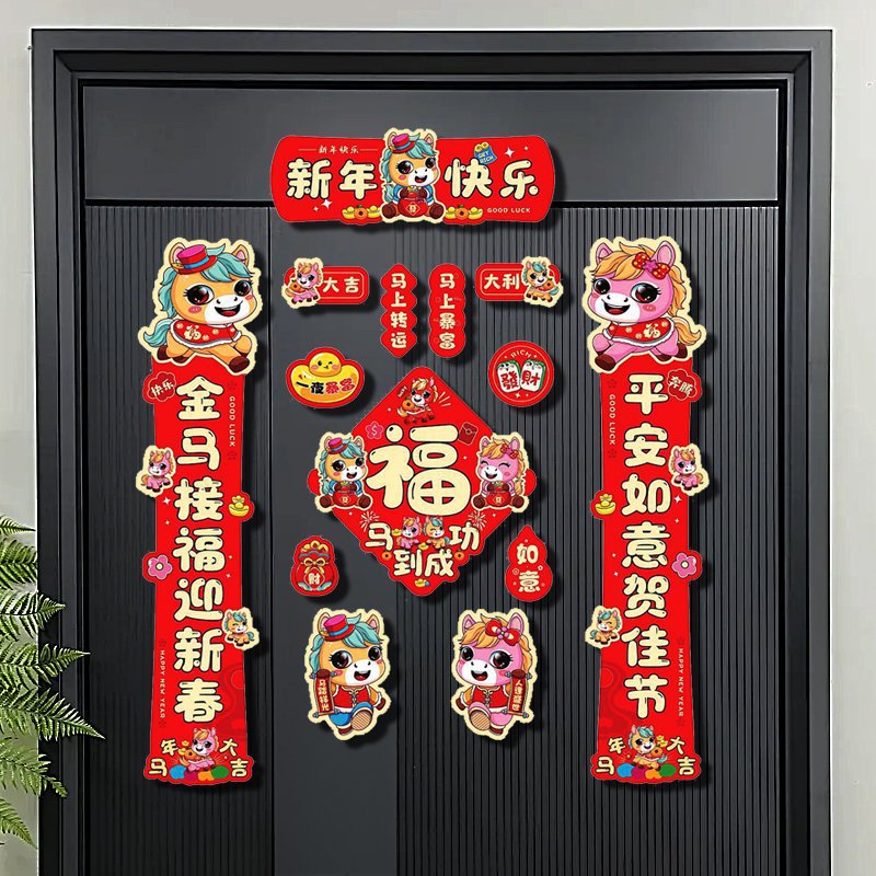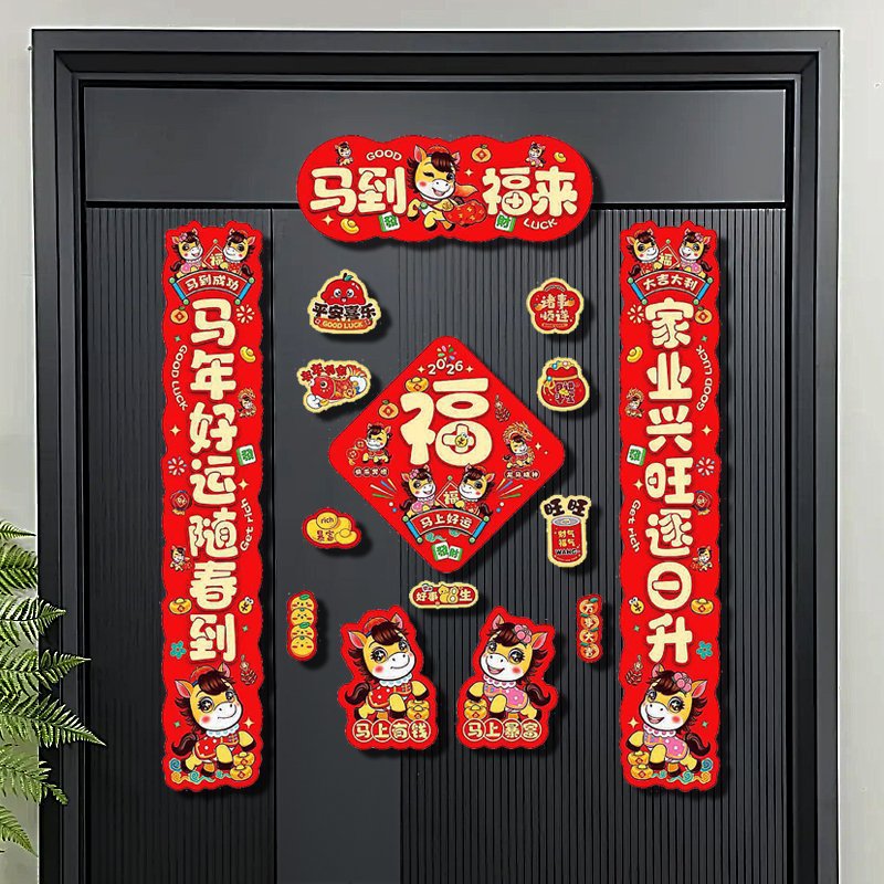 2026新款马年磁吸对联 春节入户门装饰家用过年货布置门贴春联