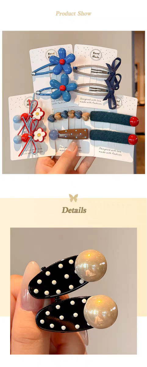 2# blue label round beads flowers hair clip-about 6cm(2#蓝标圆珠花朵发夹-约6cm) USD $0.22 1194 piece available