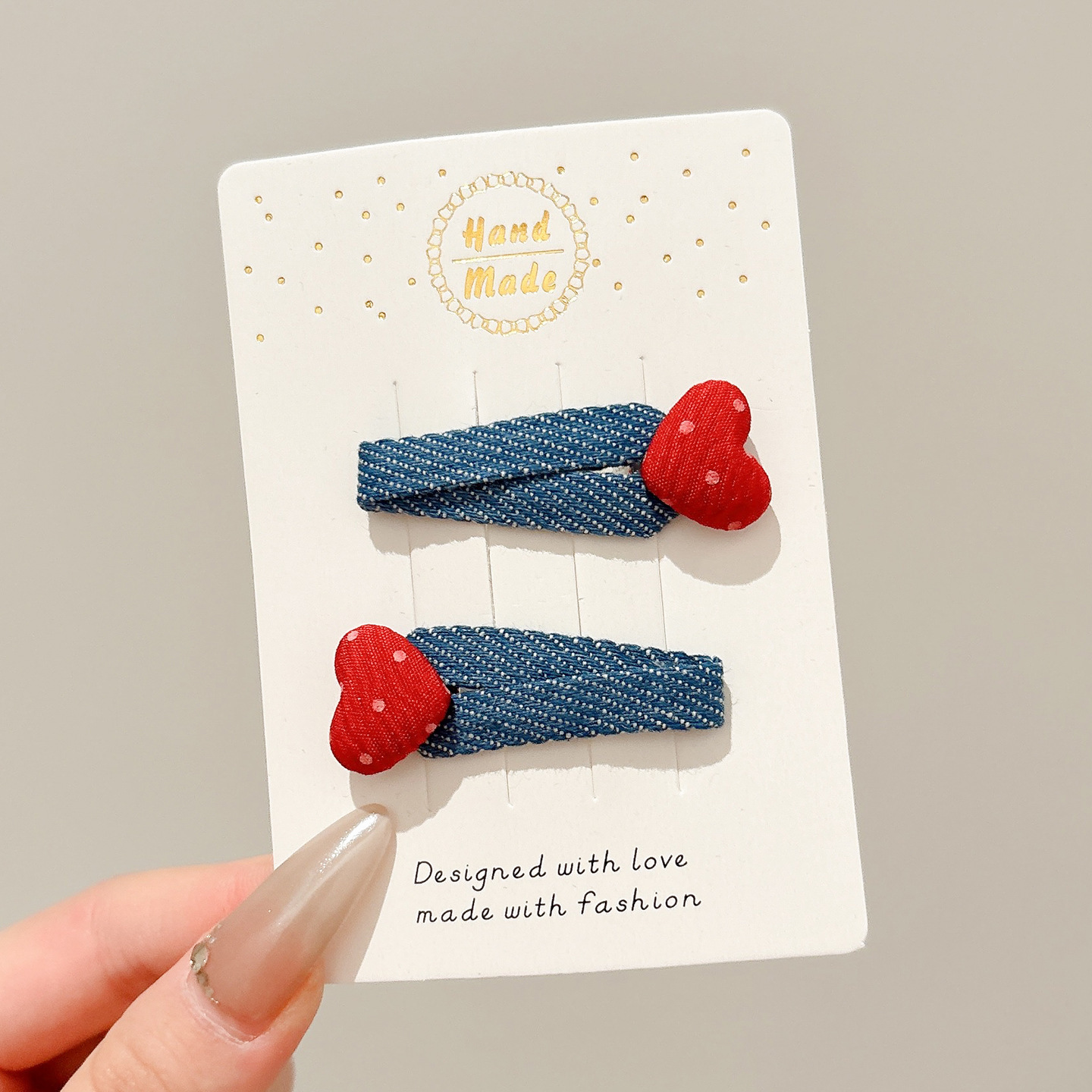 2#红色爱心波点柳叶夹-6.5cm USD $0.09 735 piece available