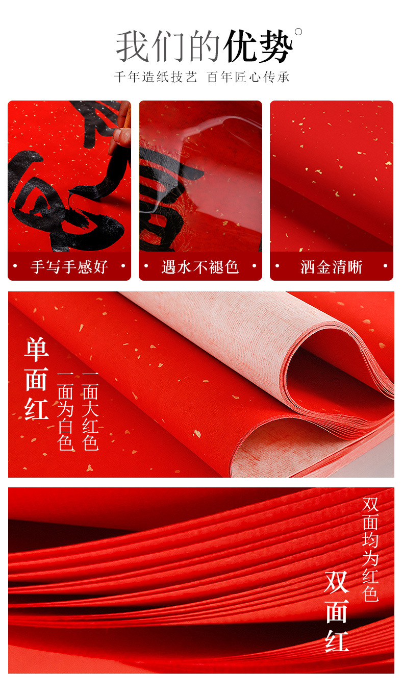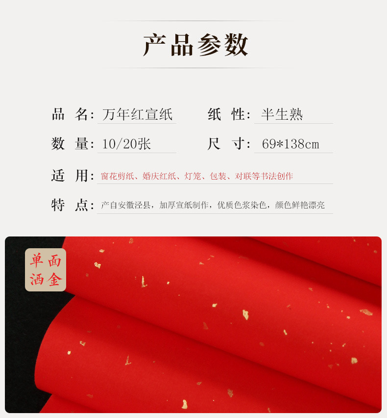红纸万年红宣纸对联纸四尺六尺A3A4自写春联结婚乔迁剪纸厂家批货