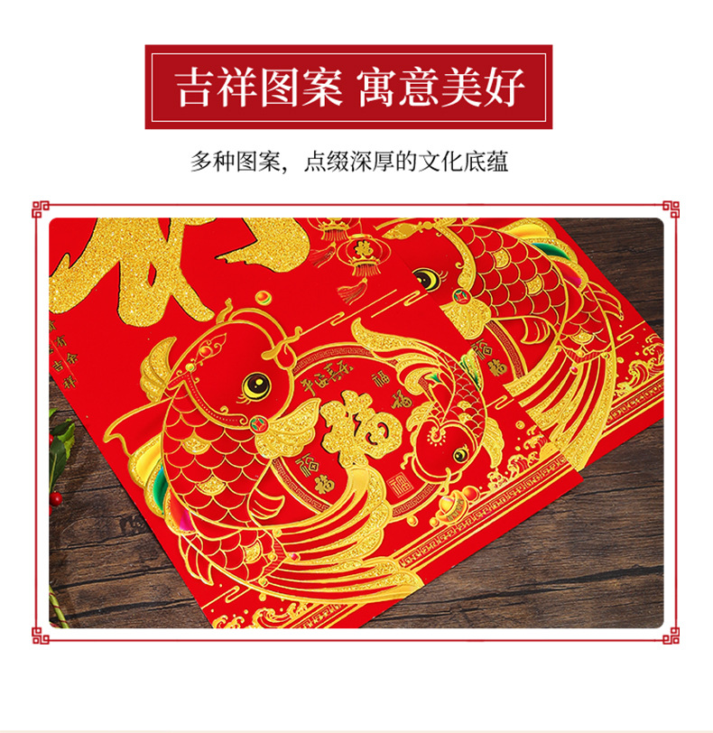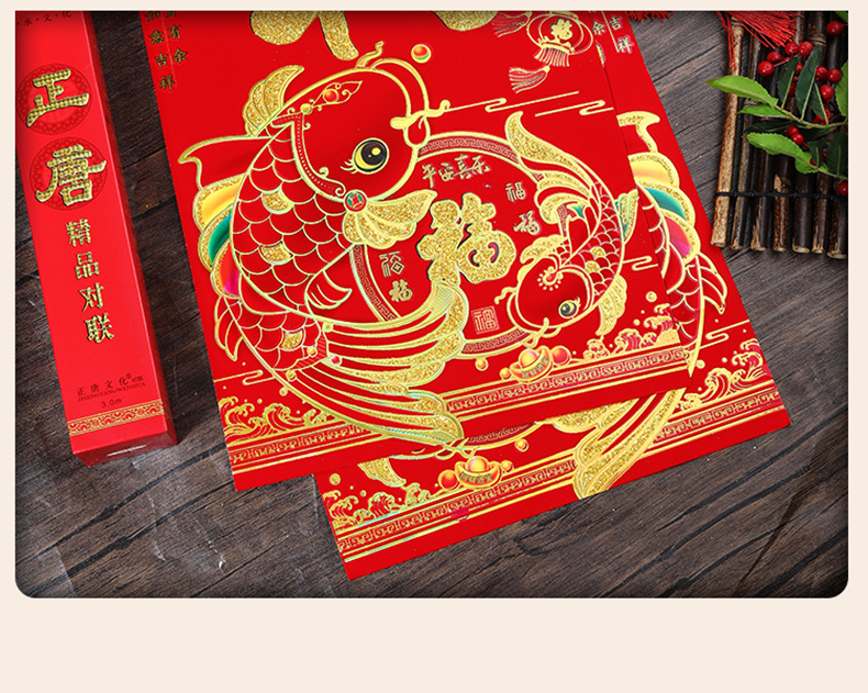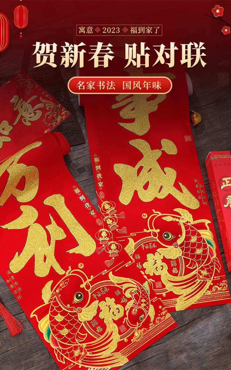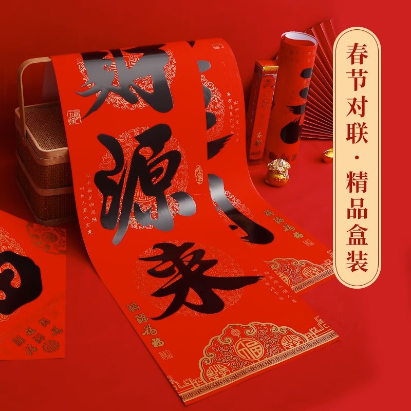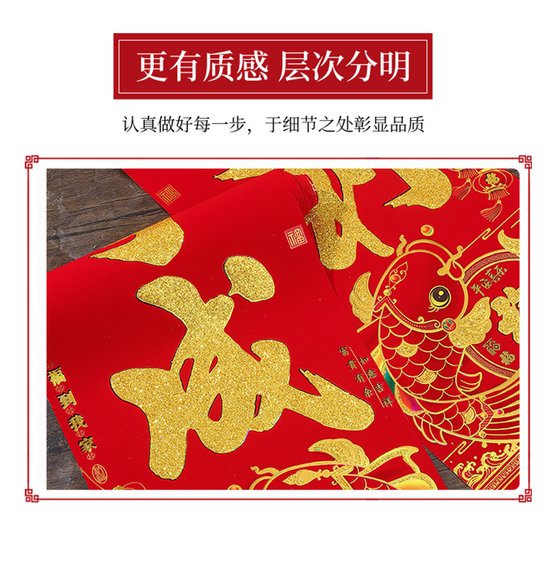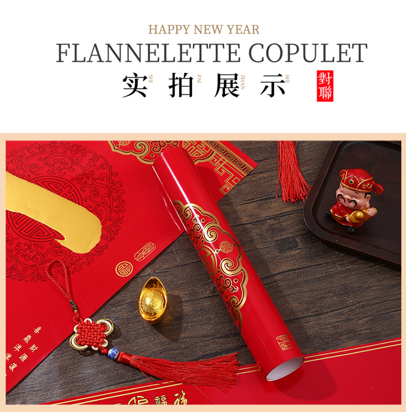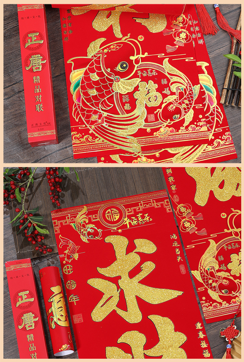 2026年新年过年春节门联绒布春联加厚铜板纸门贴新款植绒对联批发
