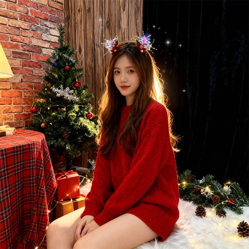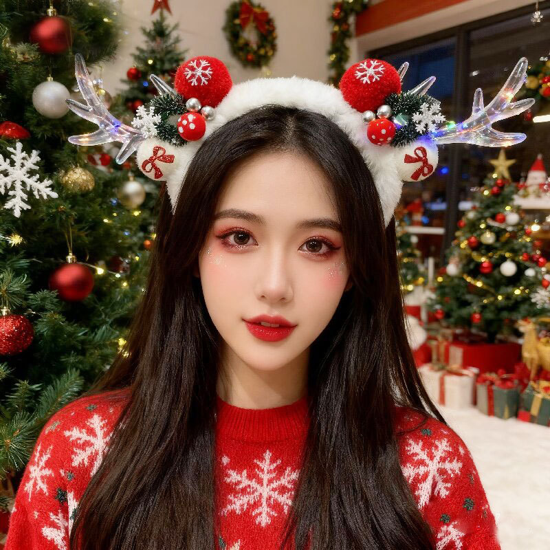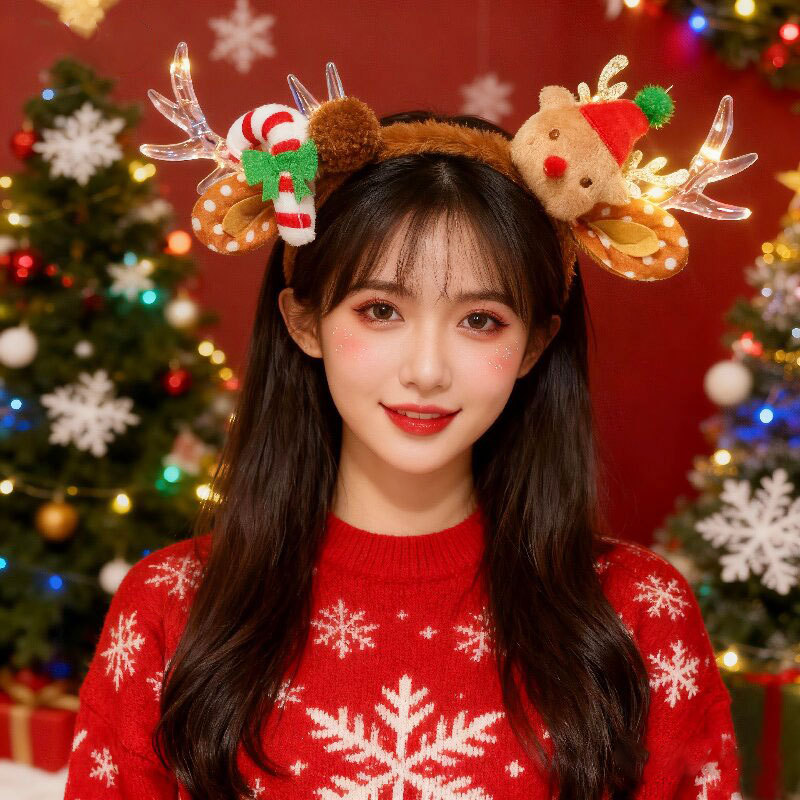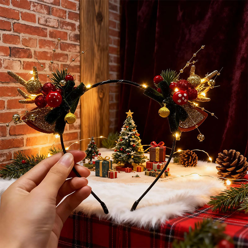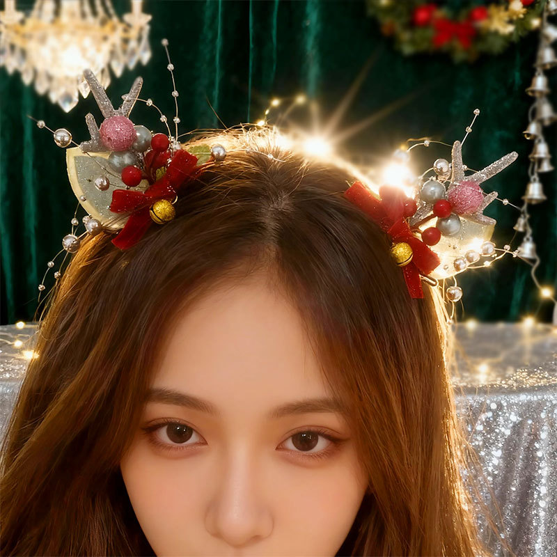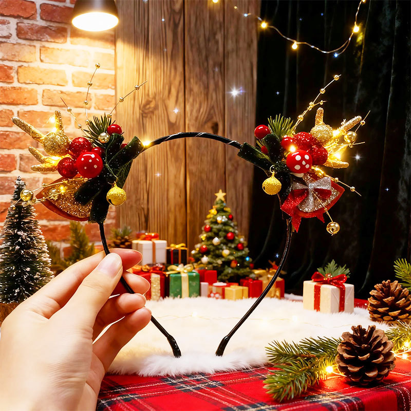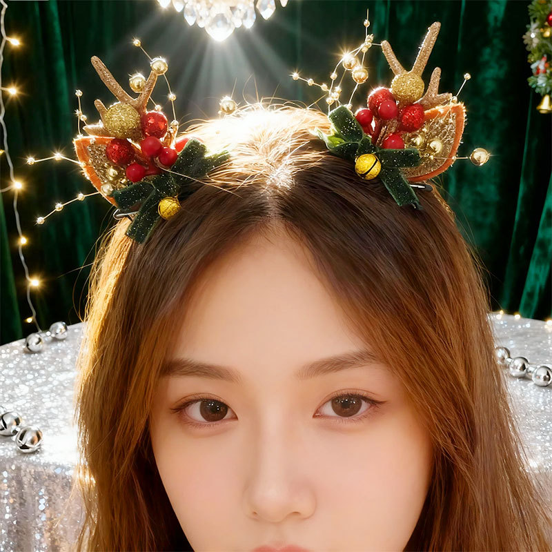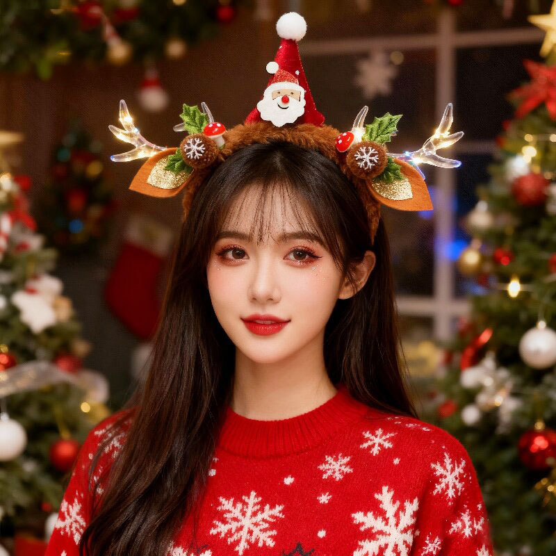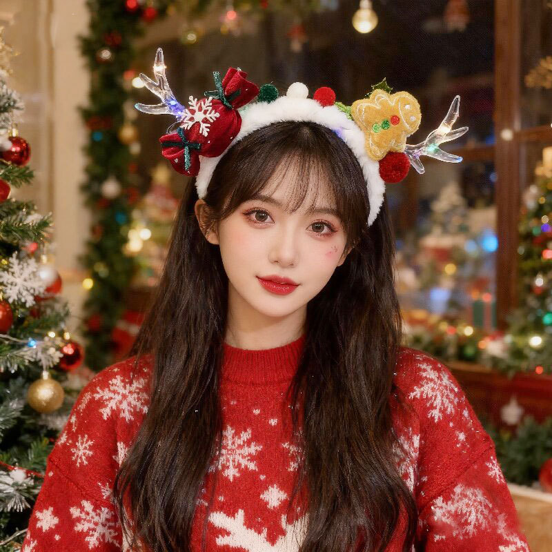 圣诞节头饰发光鹿角发箍女拍照道具麋鹿装扮头箍装饰发卡发饰饰品