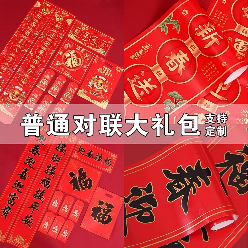 2026马年对联定制春联植绒特种纸烫金丝绸对联大礼盒广告定做LOGO
