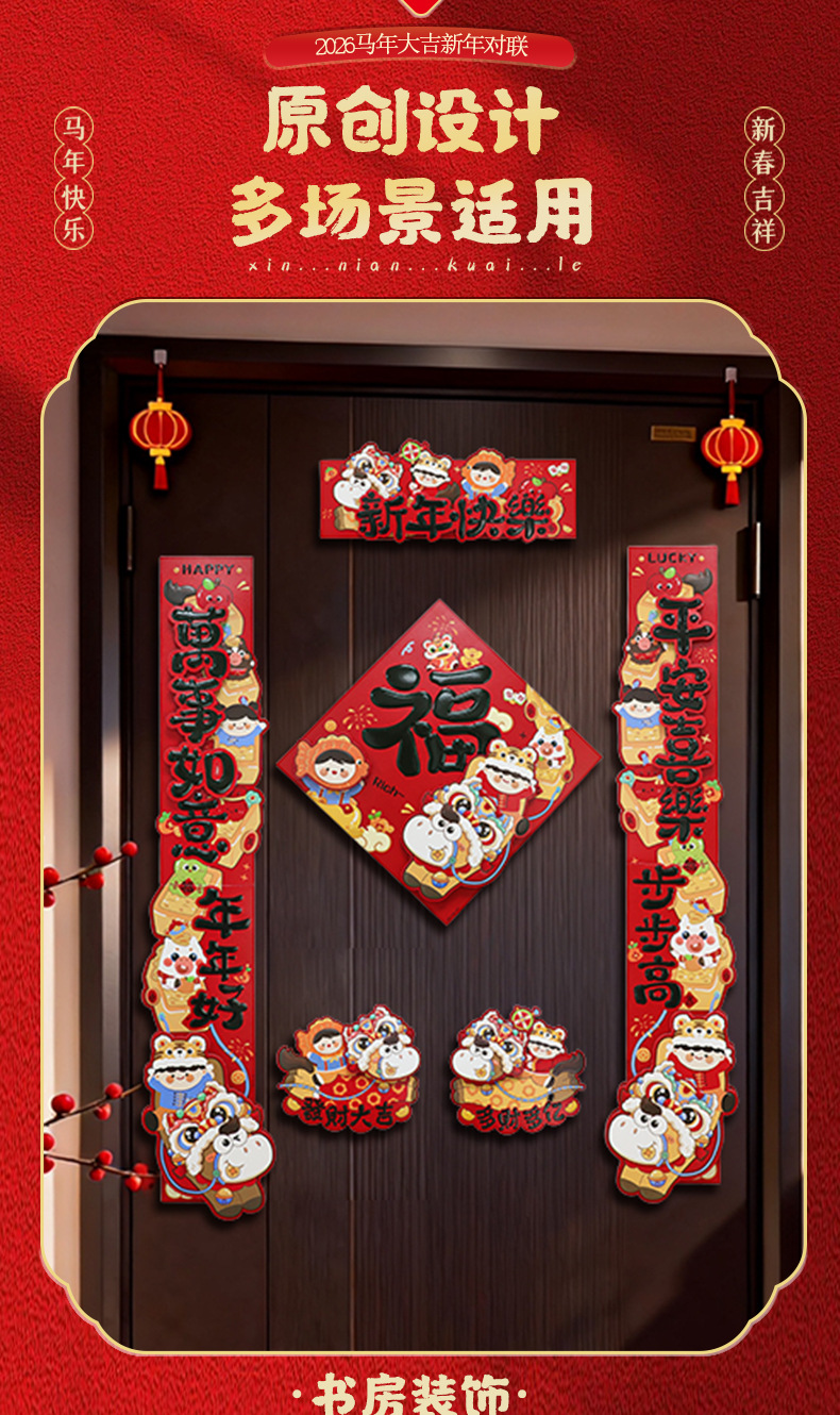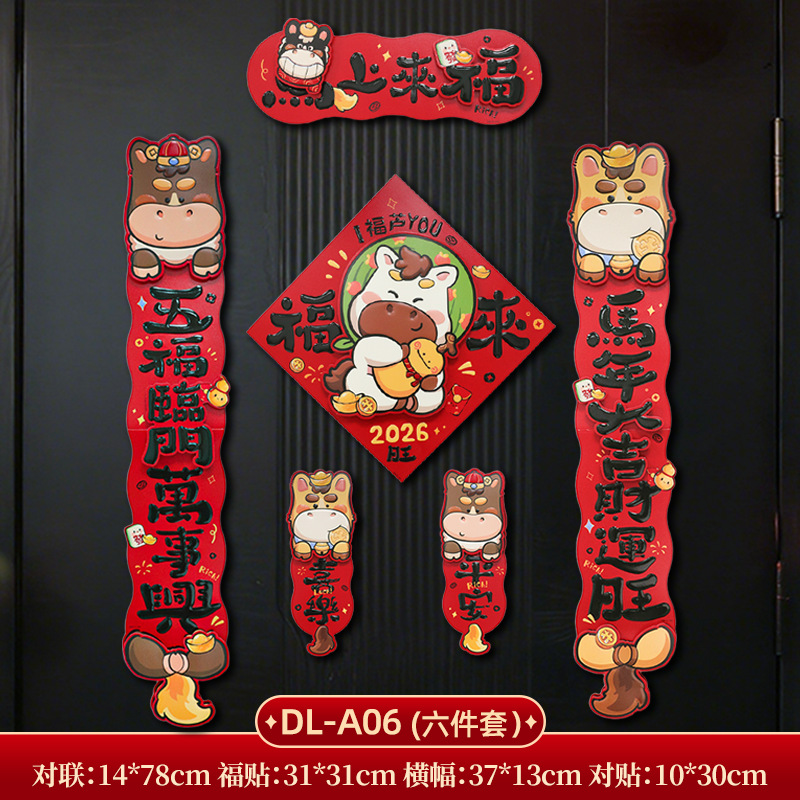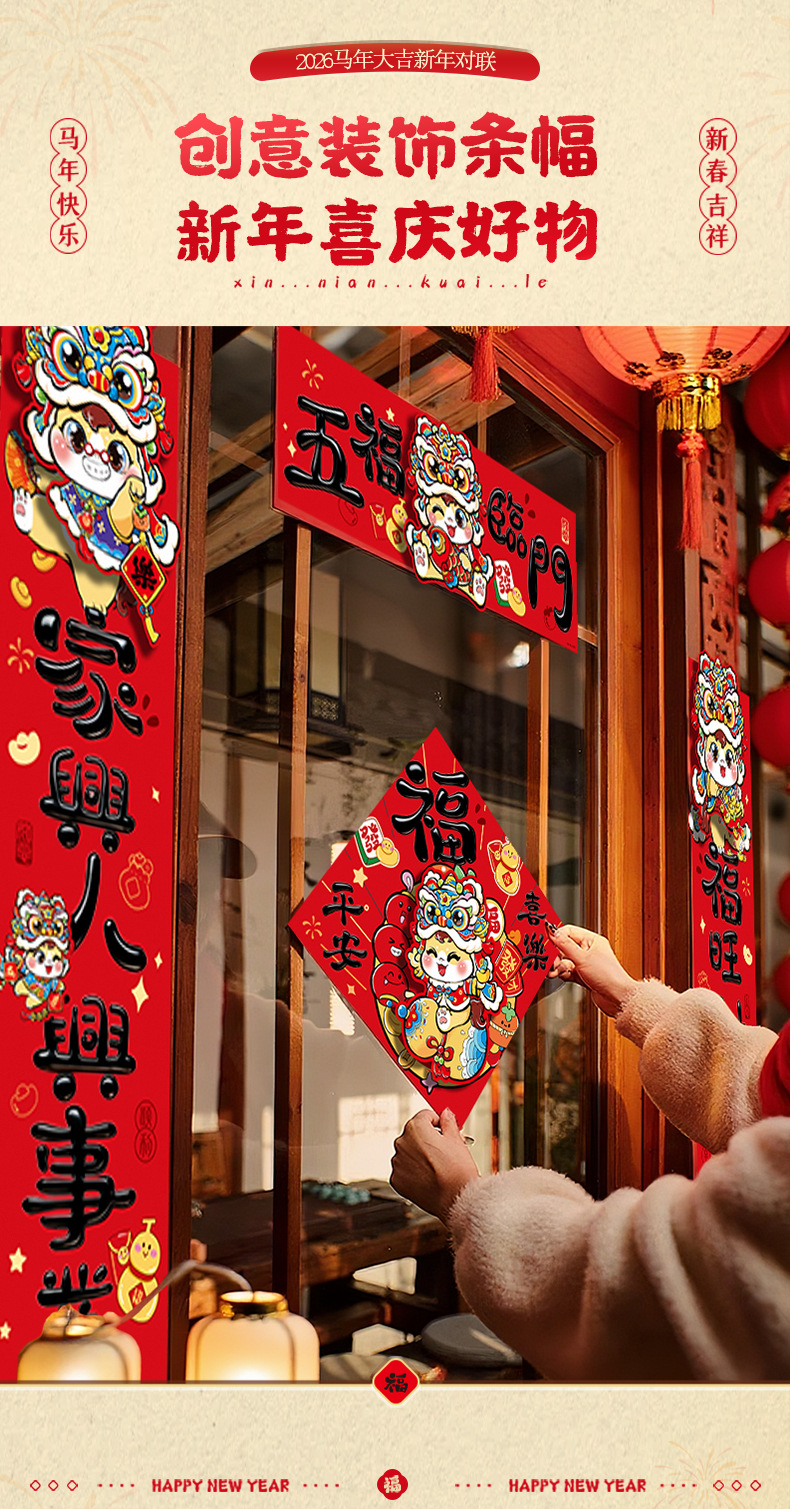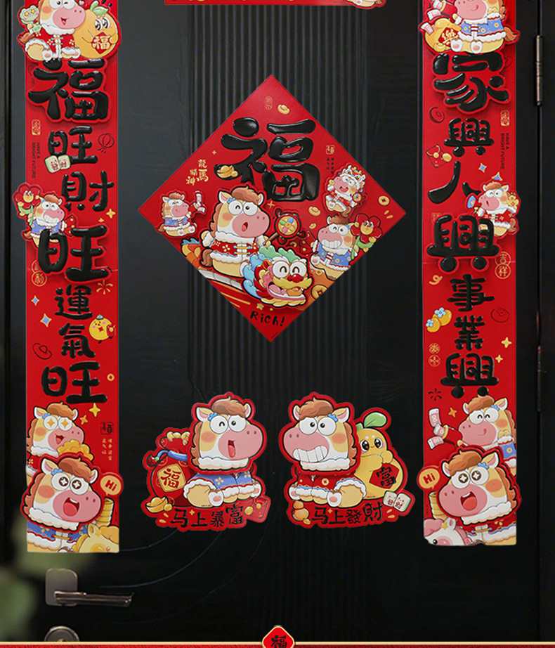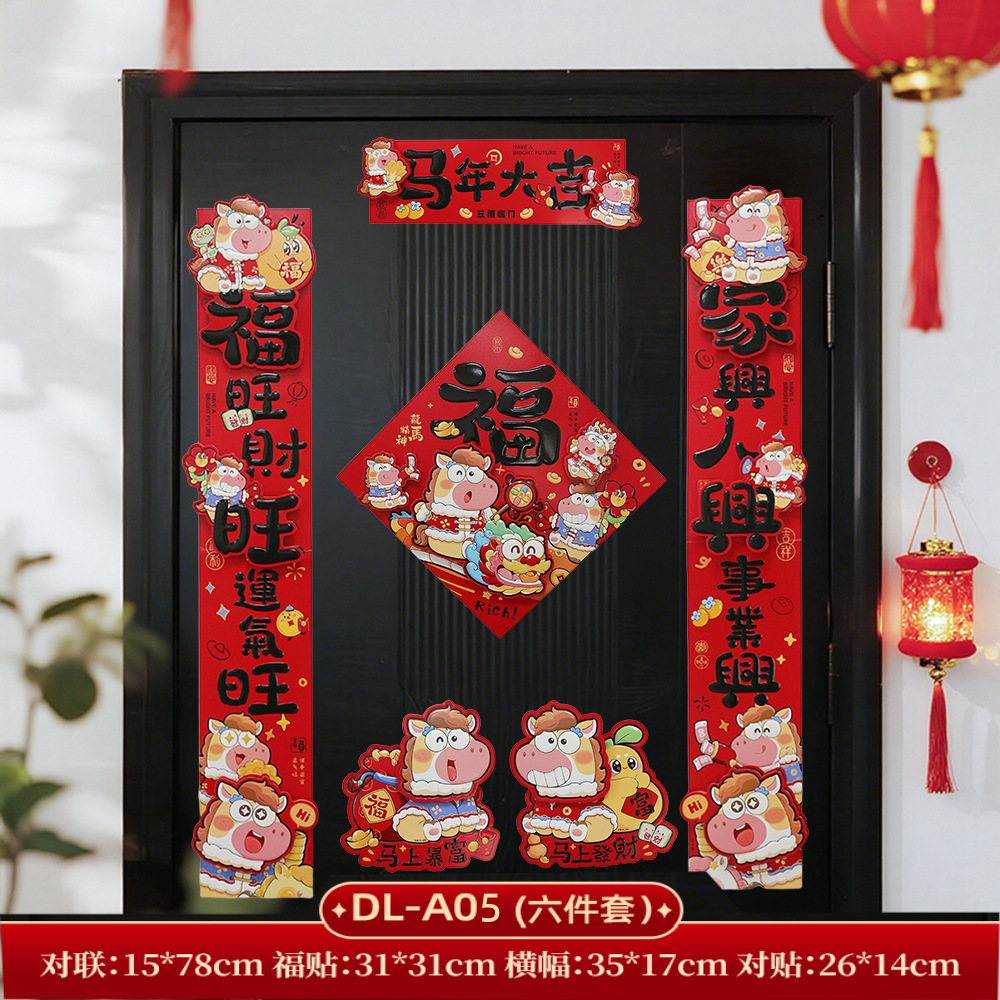 2026新年新款马年立体对联可爱卡通对联福字套装对联年货大全批发