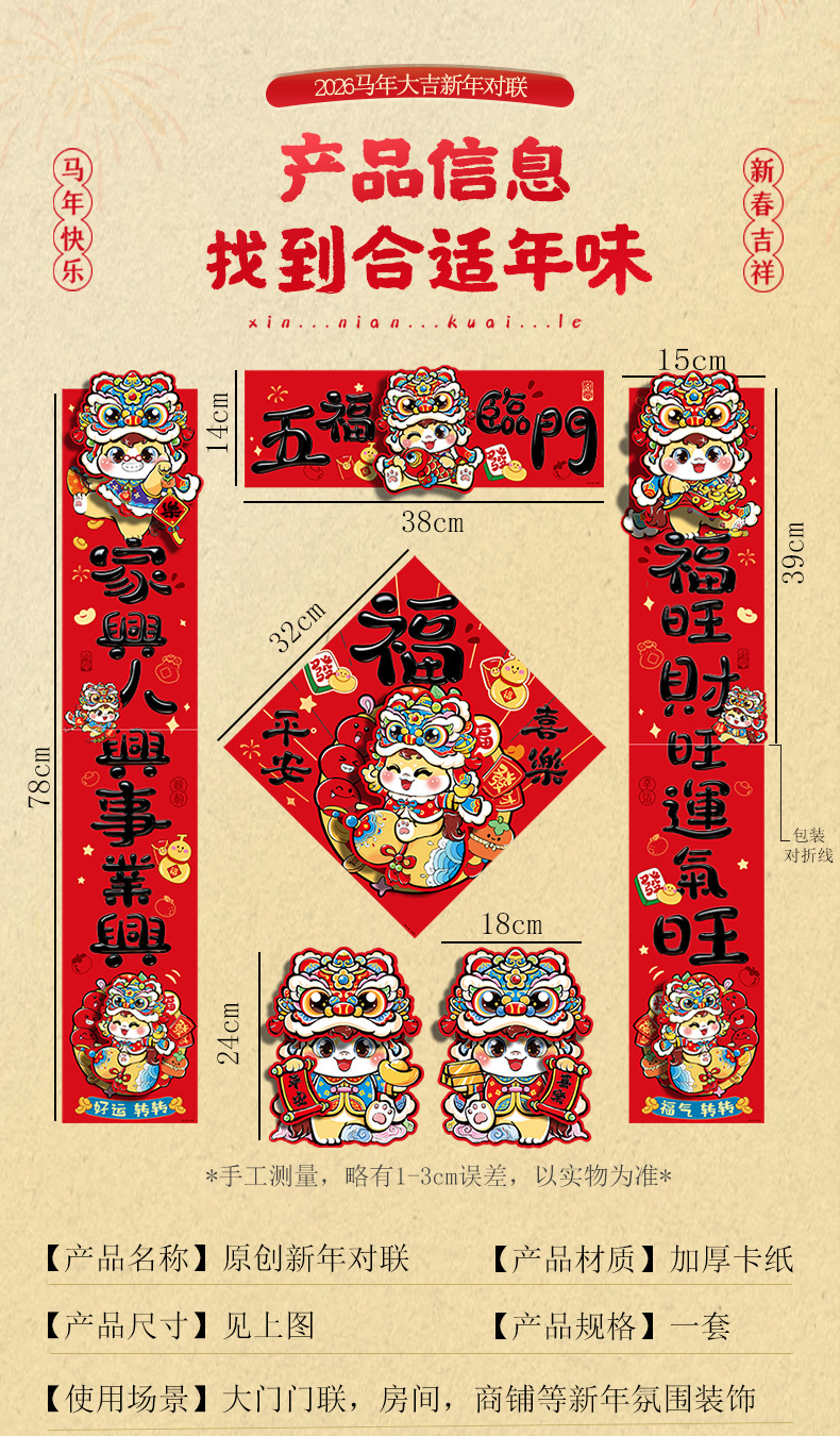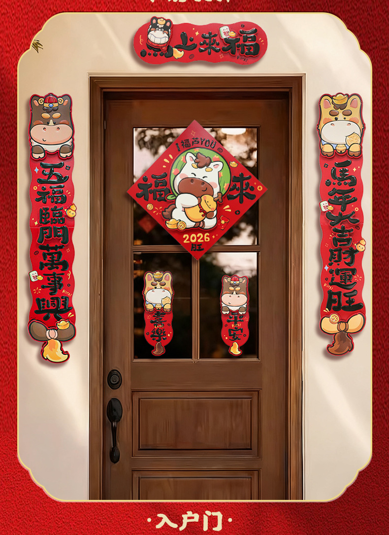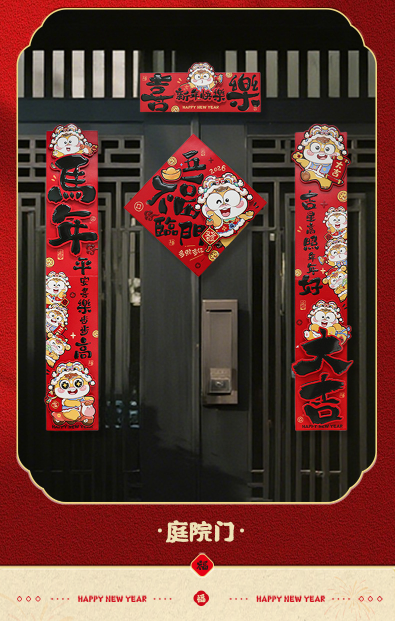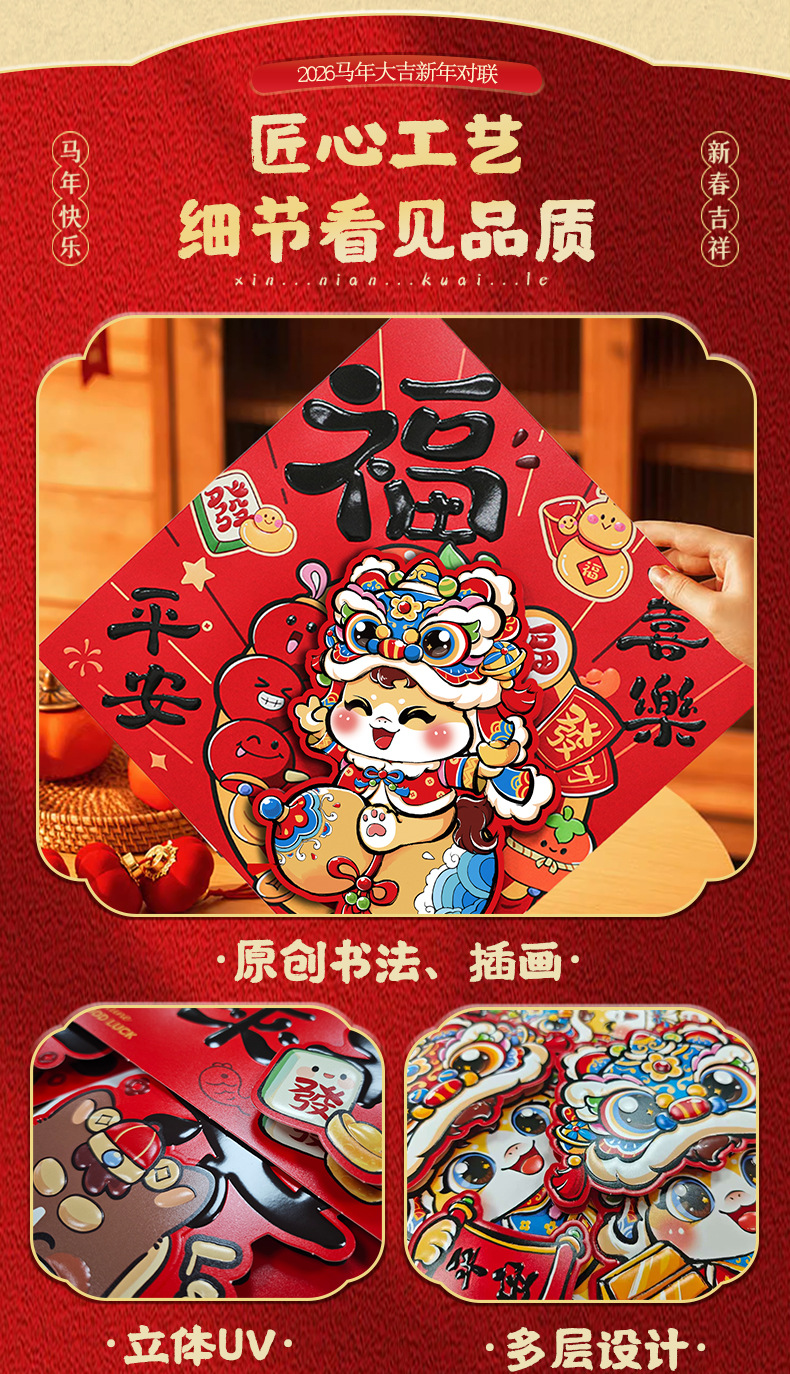 2026新年新款马年立体对联可爱卡通对联福字套装对联年货大全批发