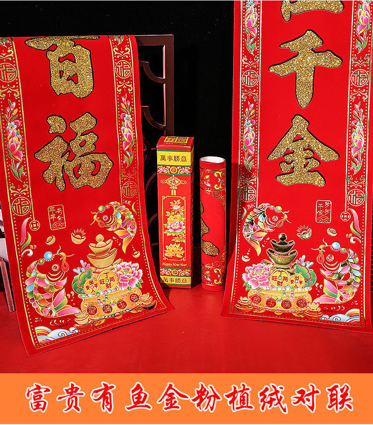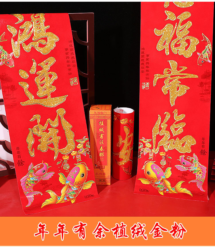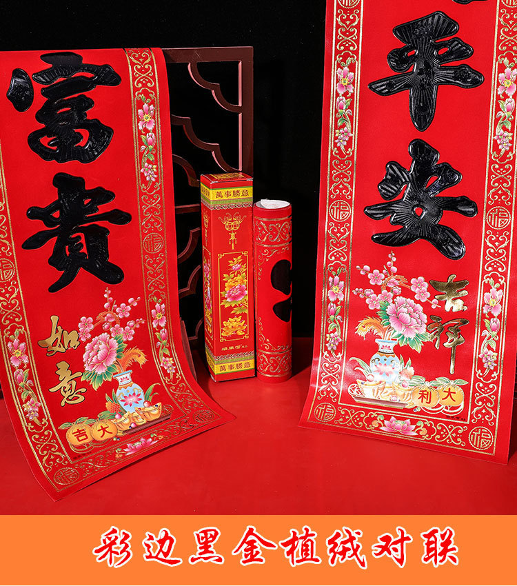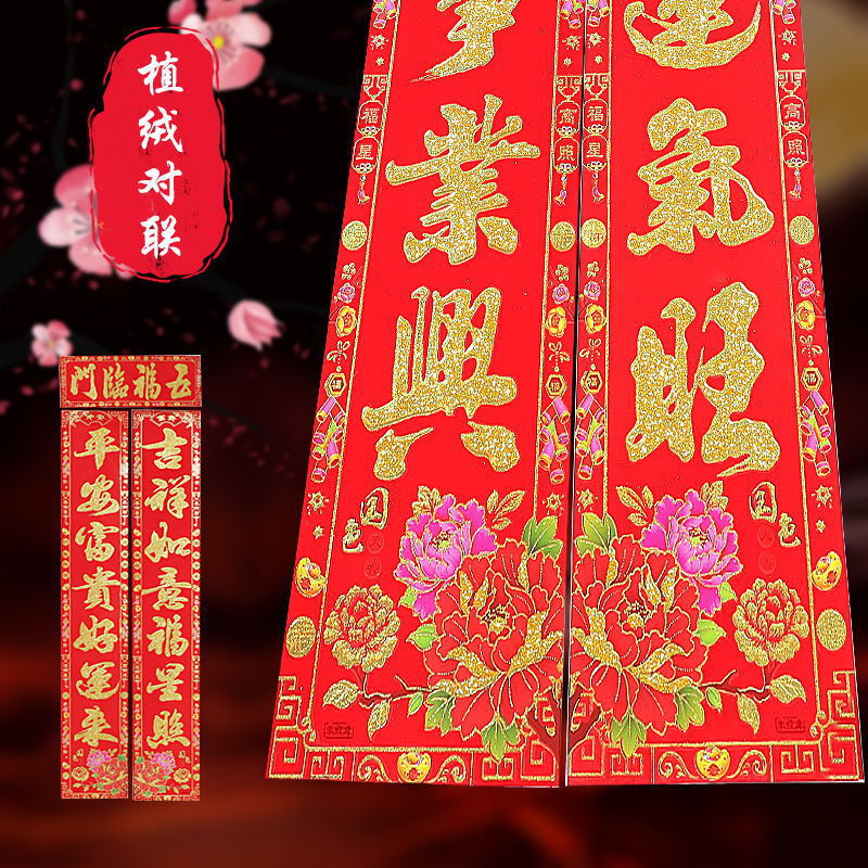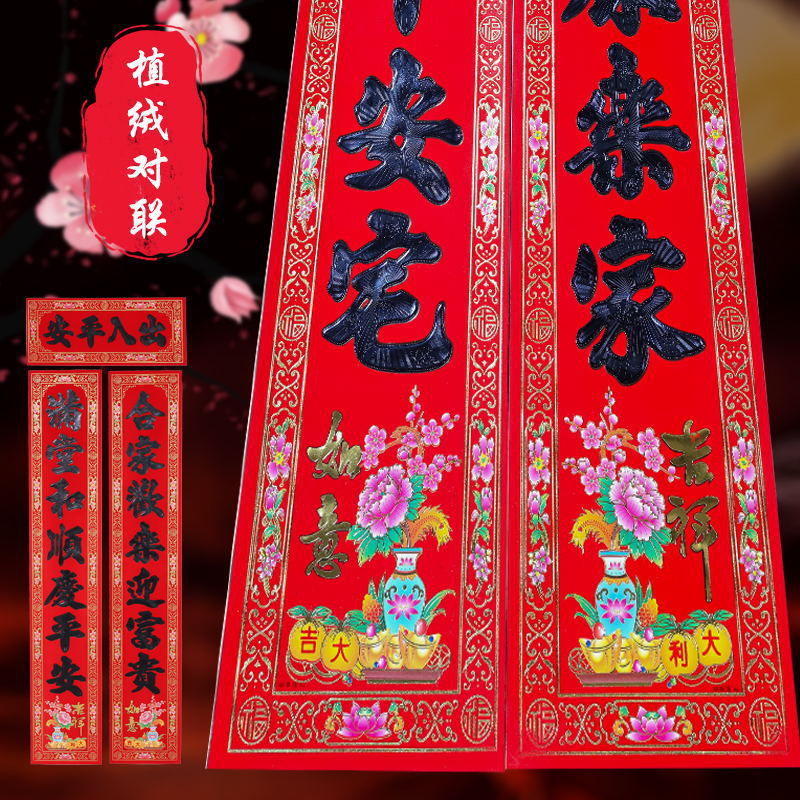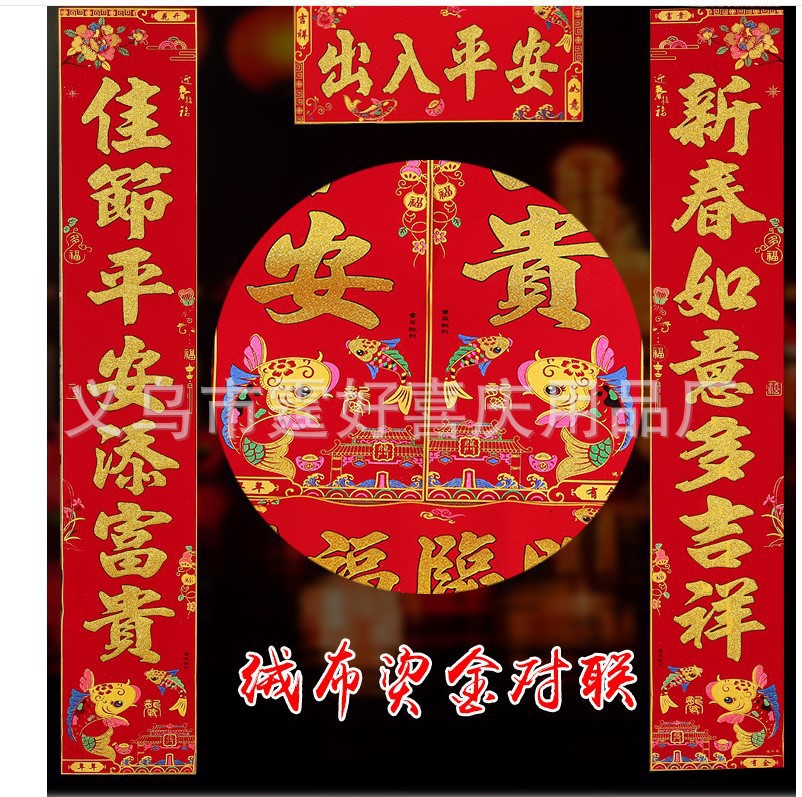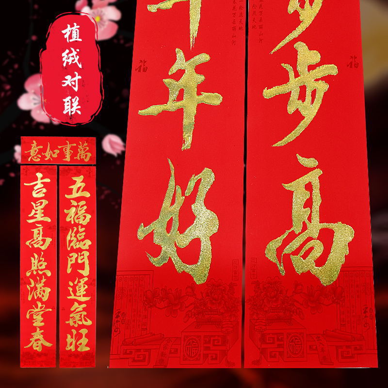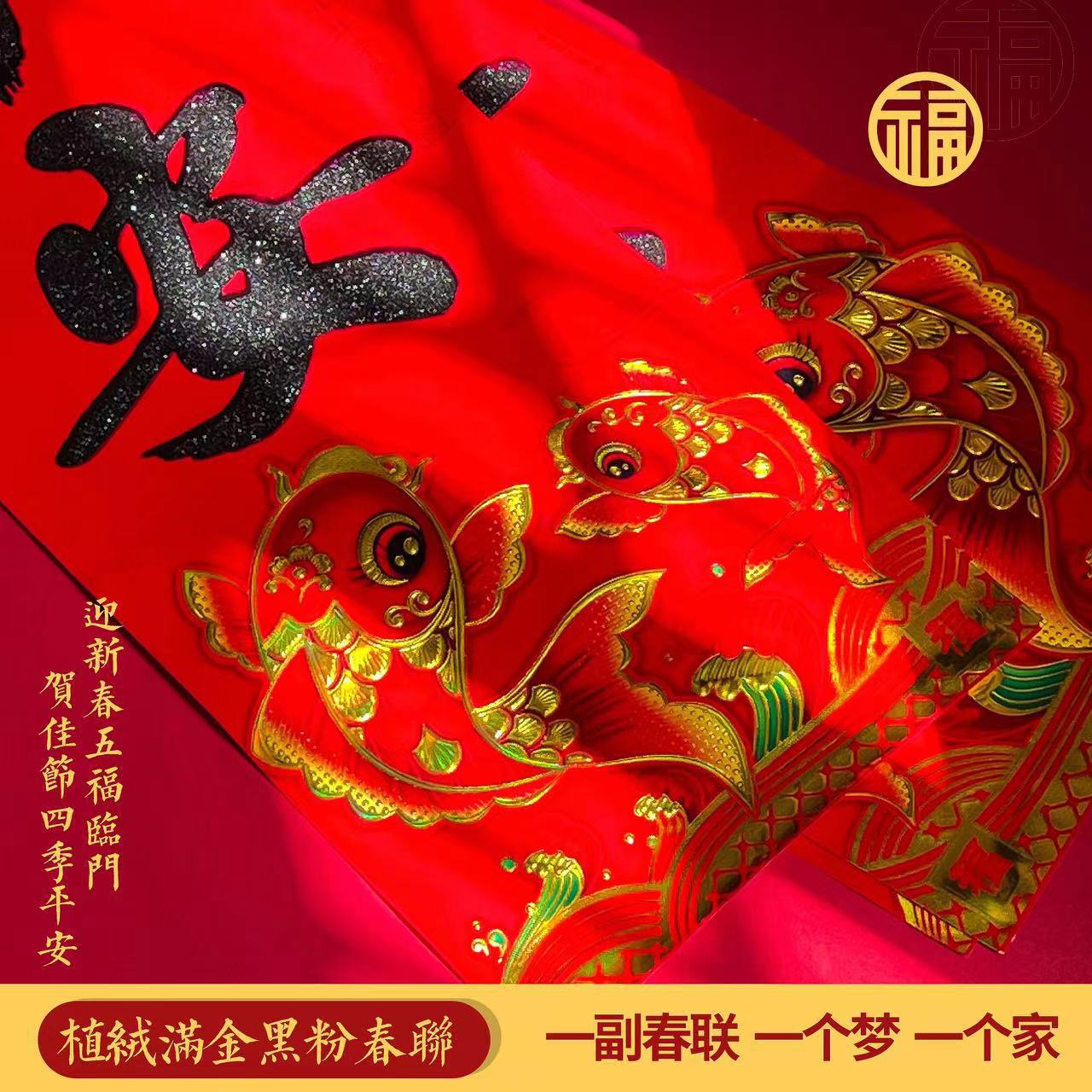 植绒对联 2026马年春节春联新年植绒福字门贴烫金对联年货厂家