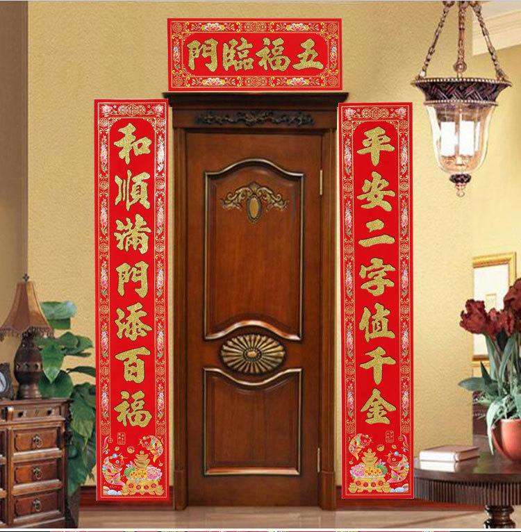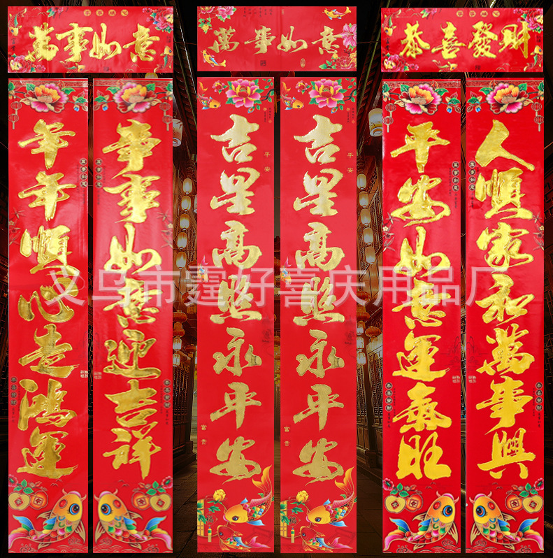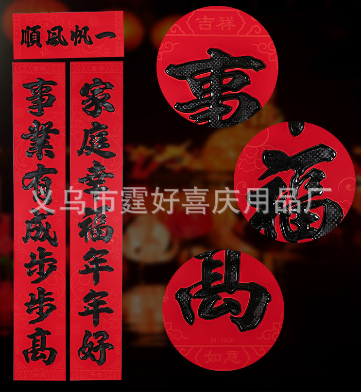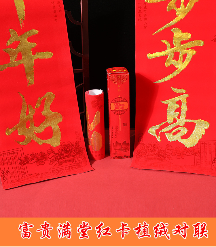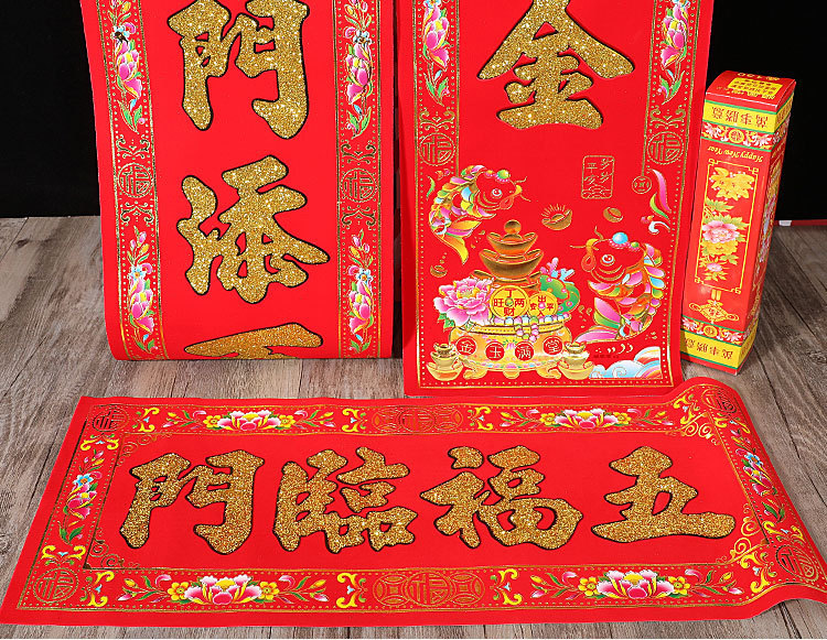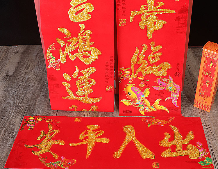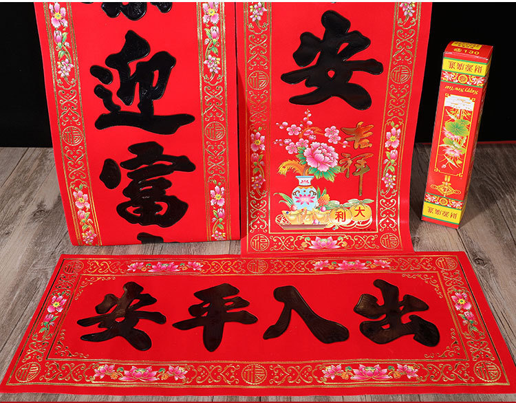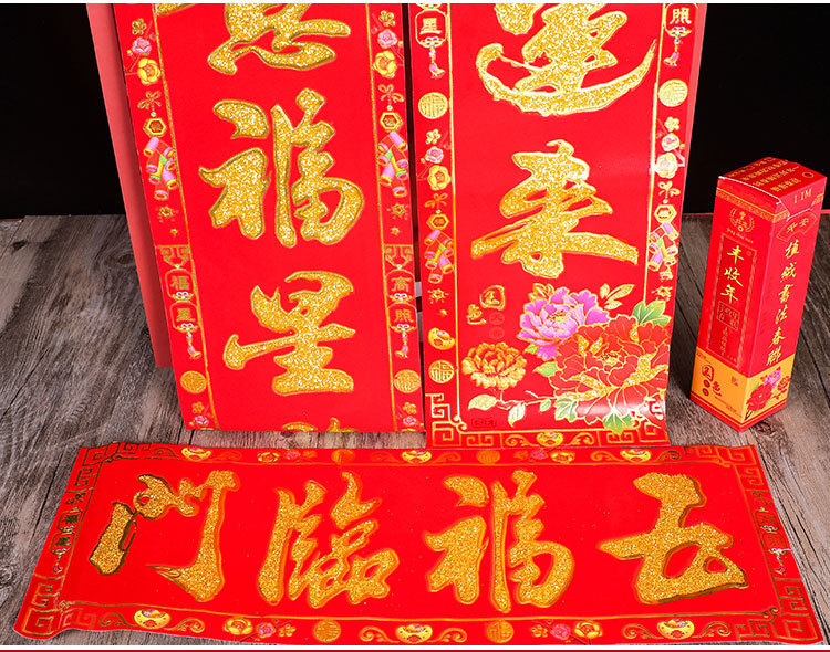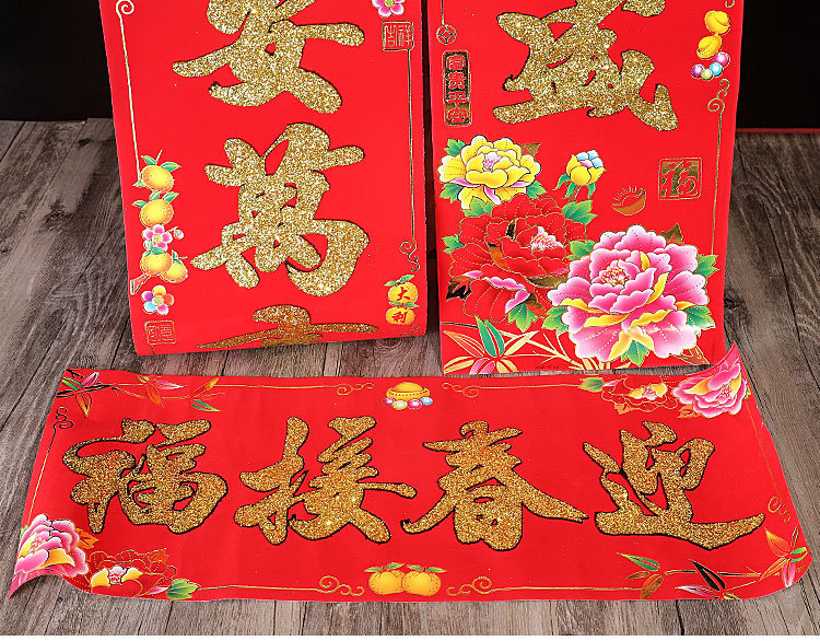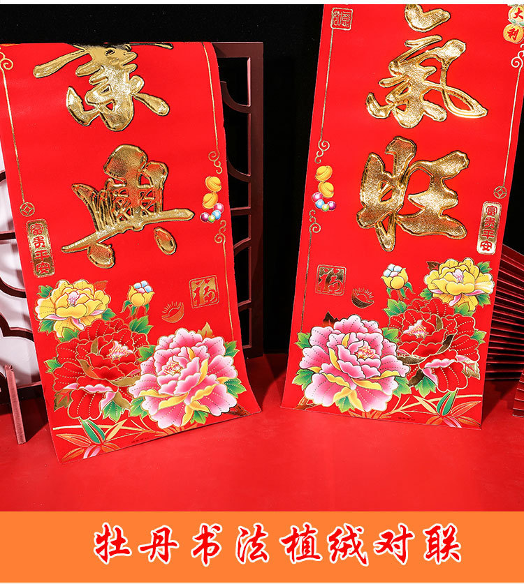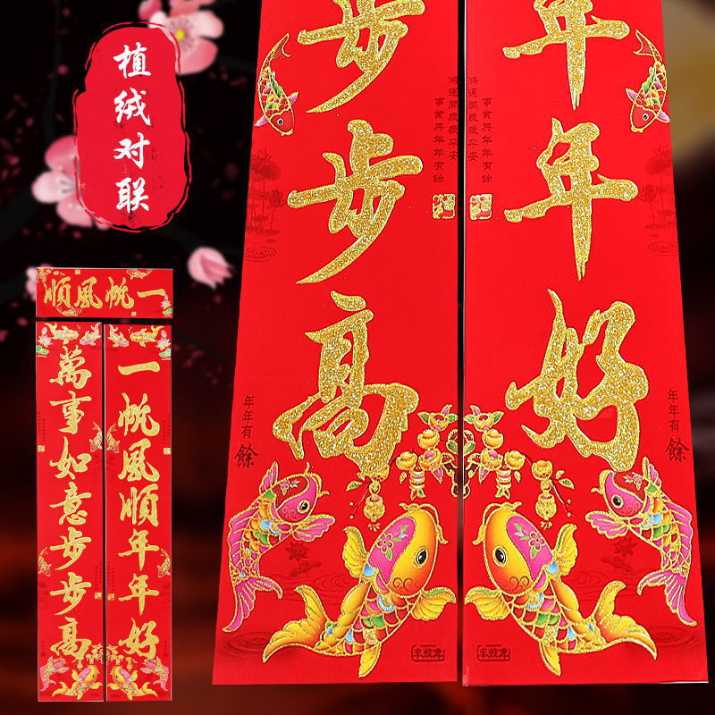 植绒对联 2026马年春节春联新年植绒福字门贴烫金对联年货厂家