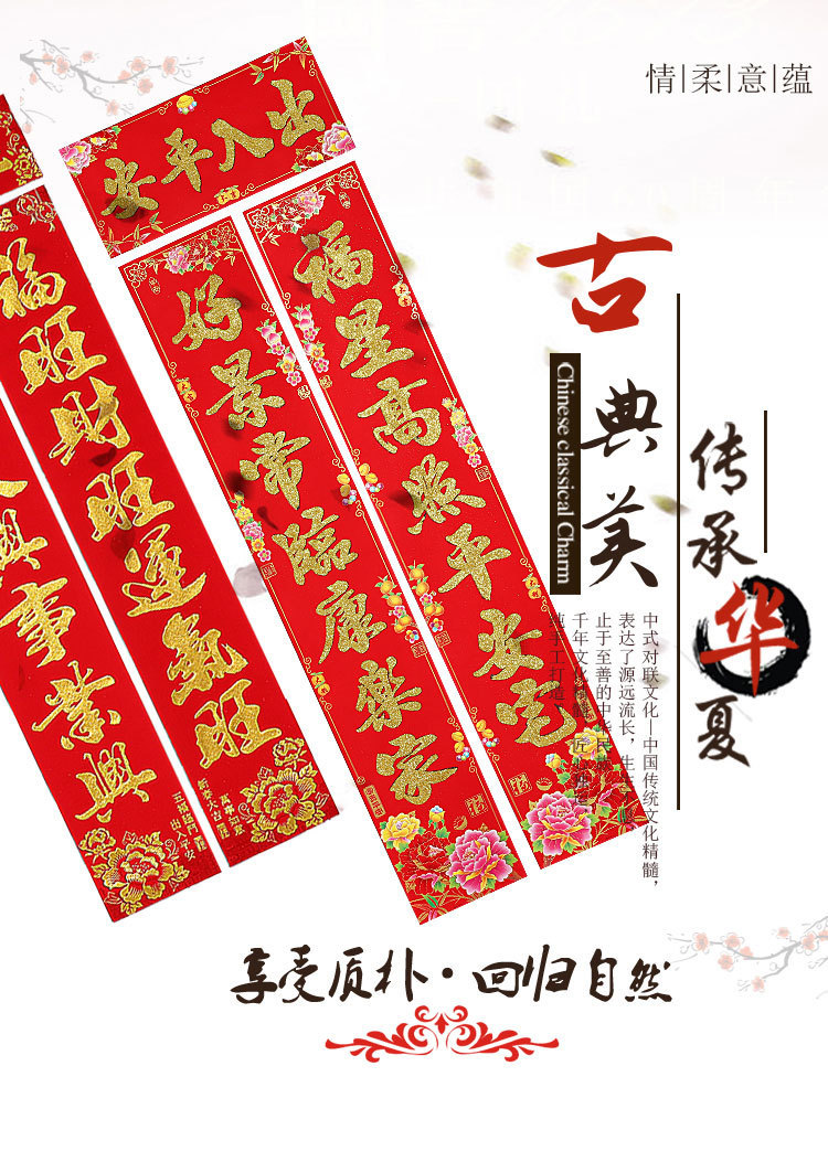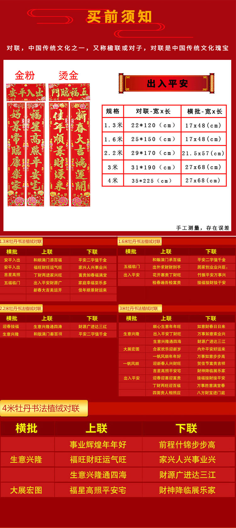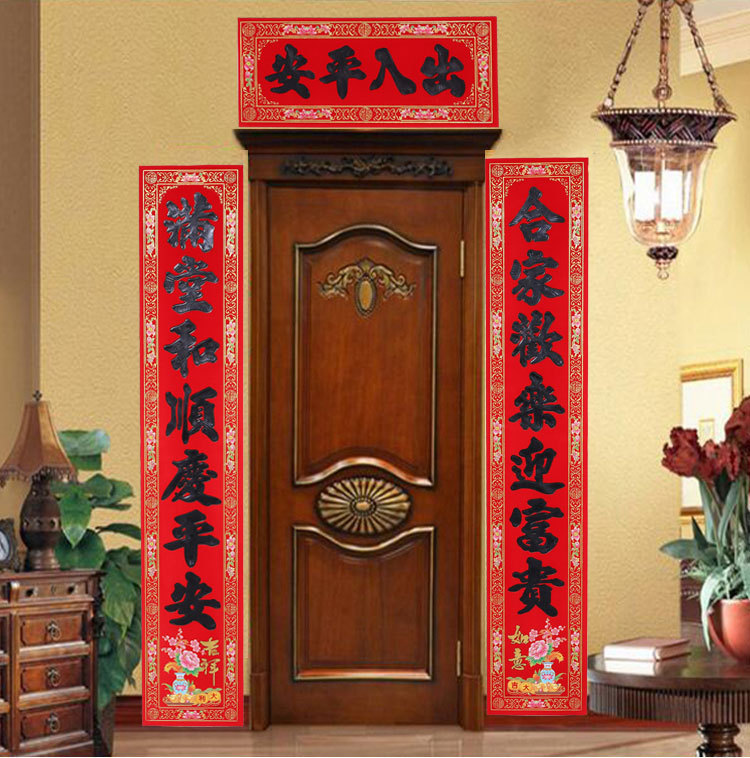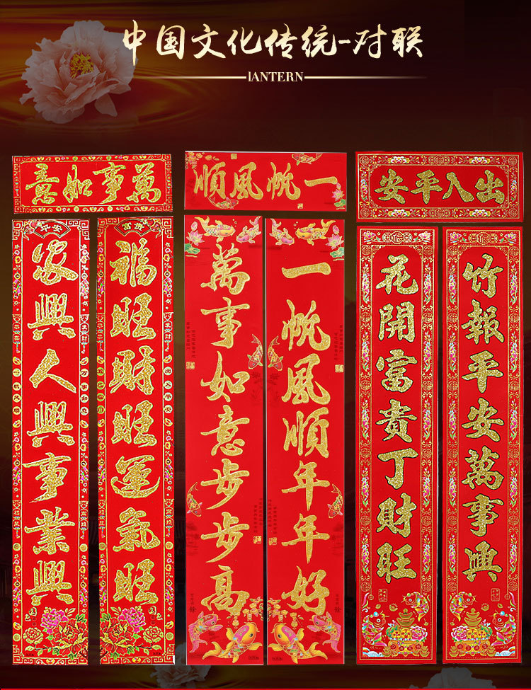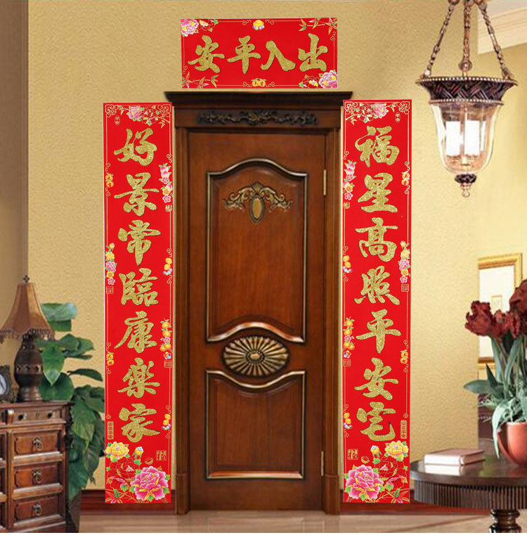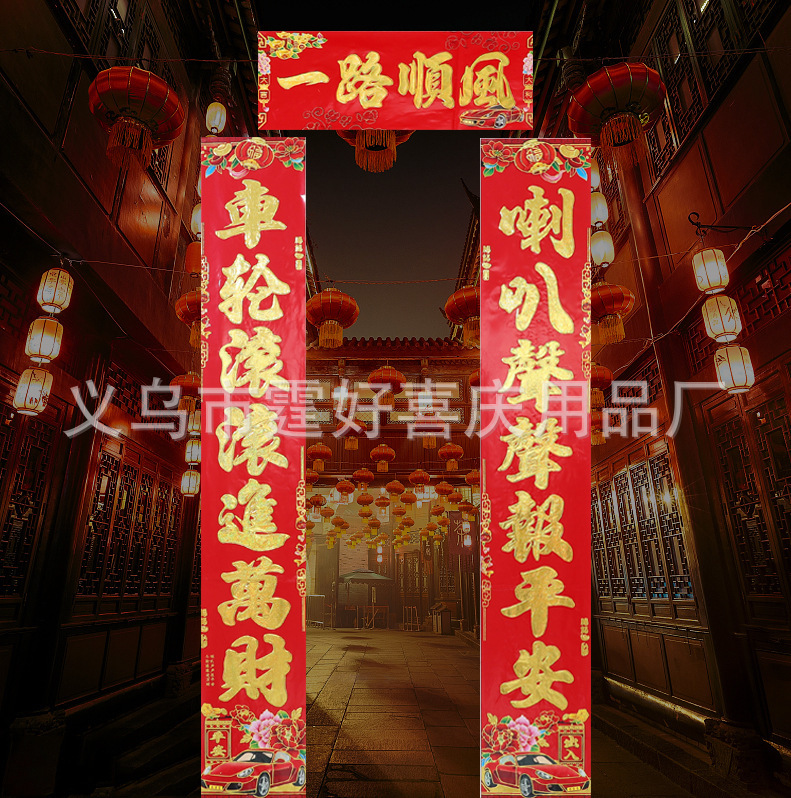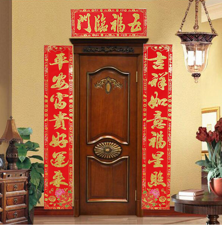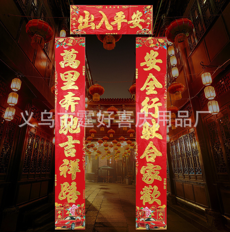 植绒对联 2026马年春节春联新年植绒福字门贴烫金对联年货厂家