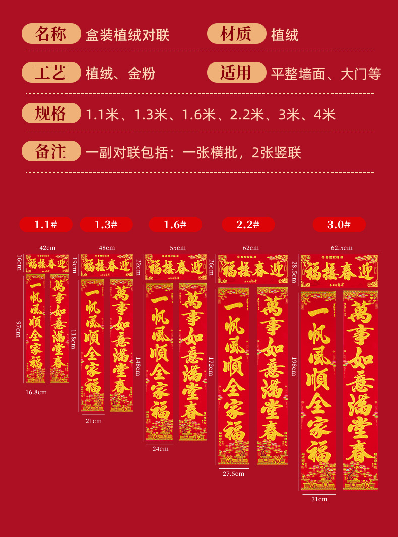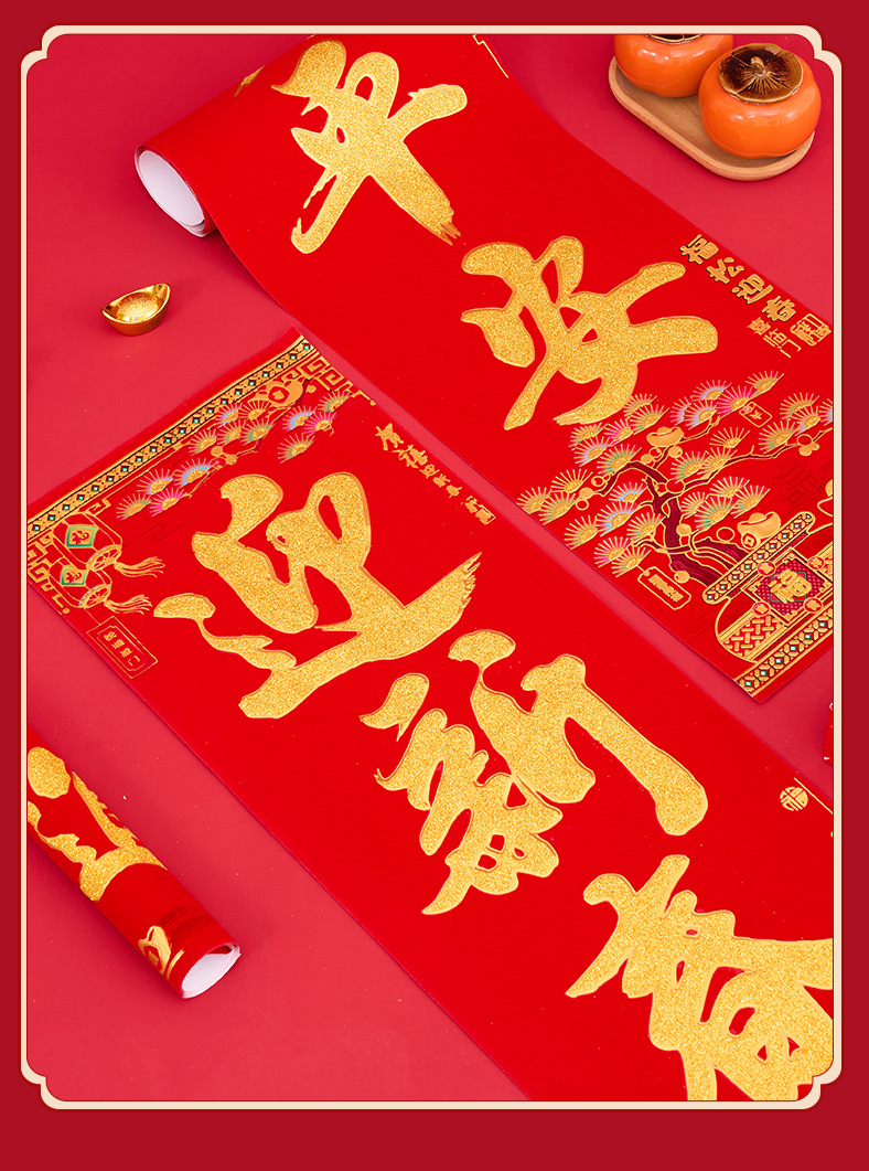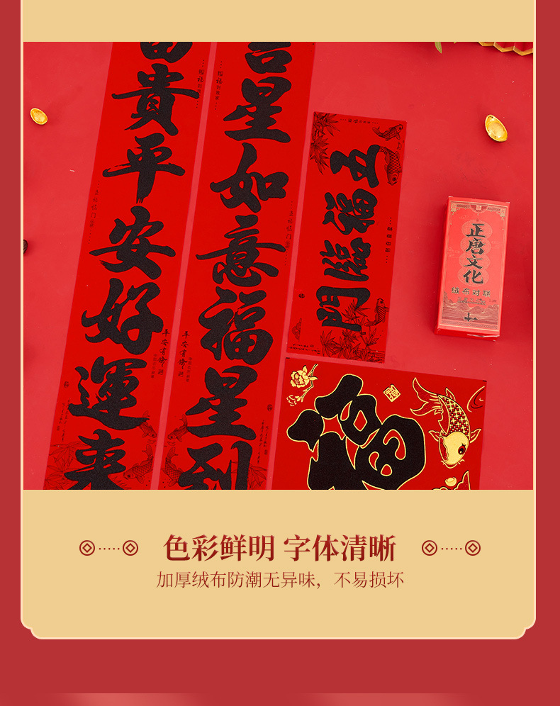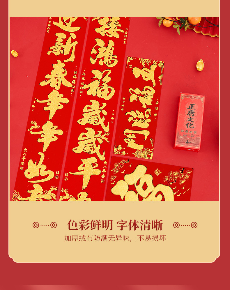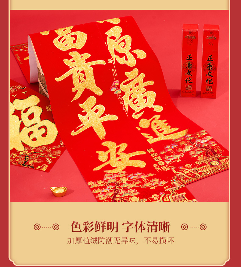 正唐2026马年新款植绒新春门联绒布对联春联工厂现货批发量大价优