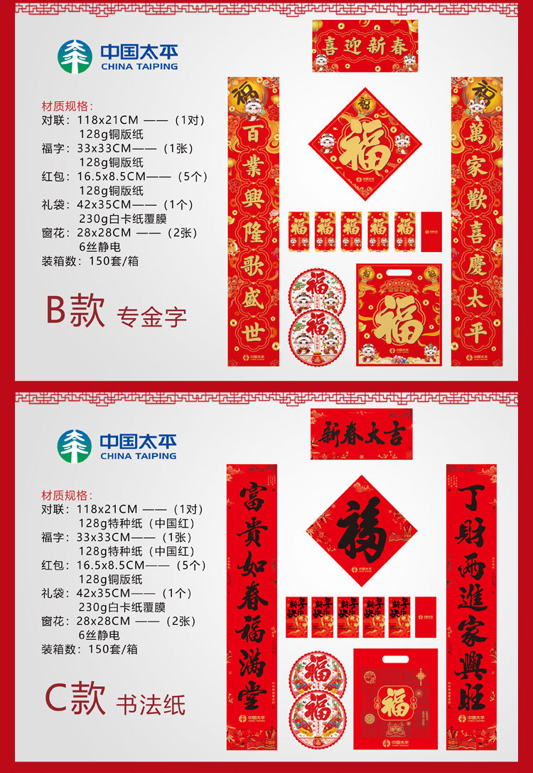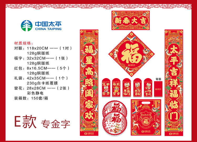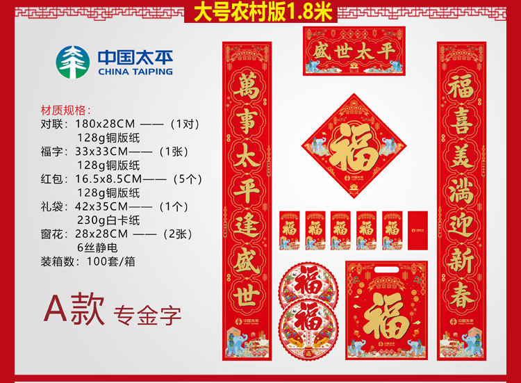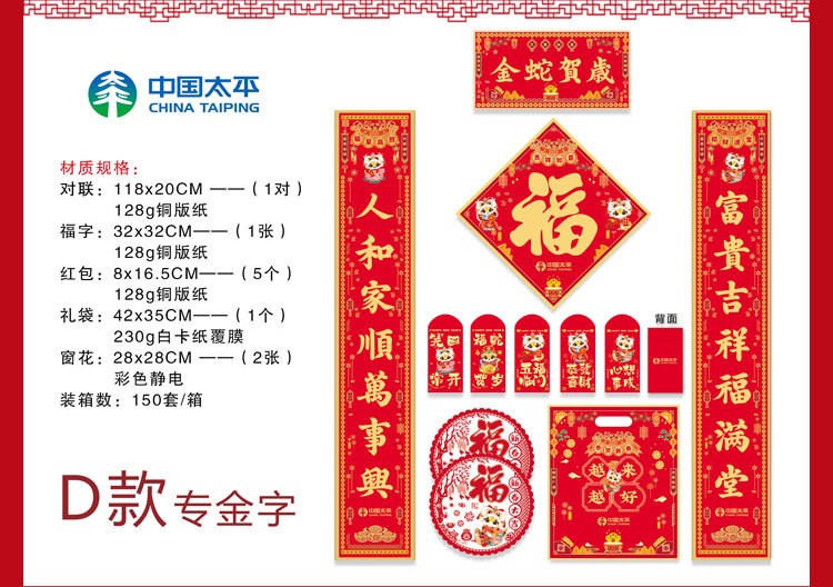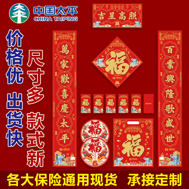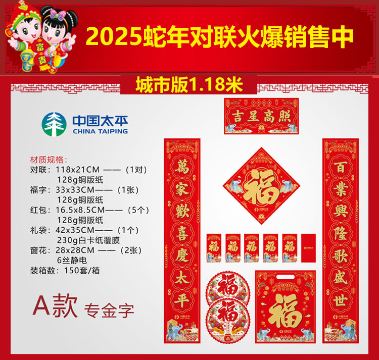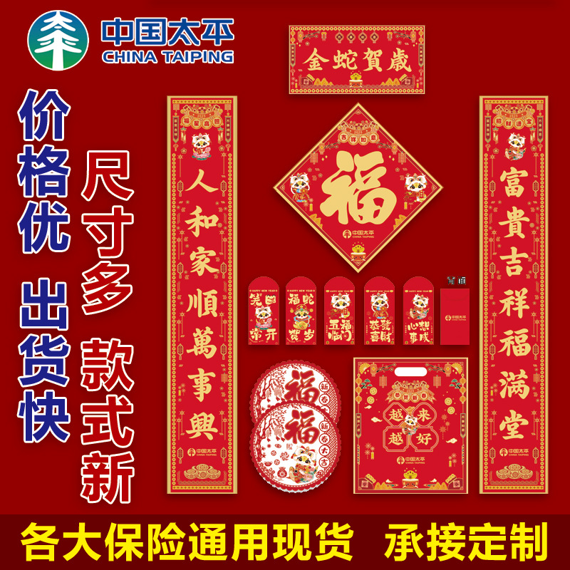 中国平安2025蛇年保险对联现货 中国太平对联大礼包 直销广告春联
