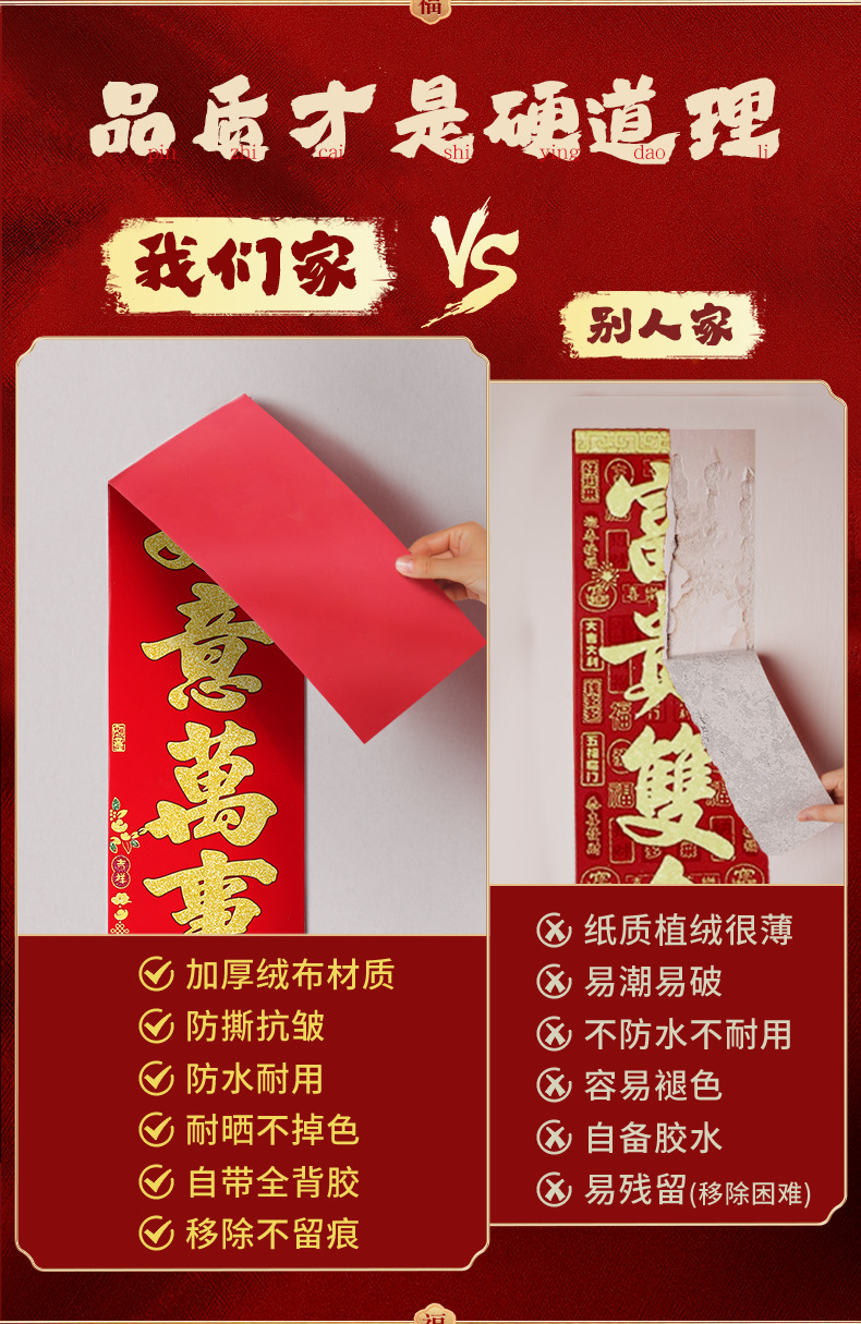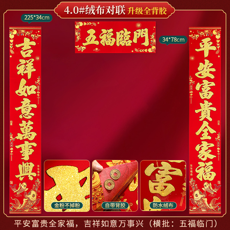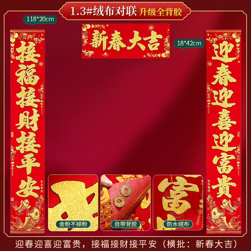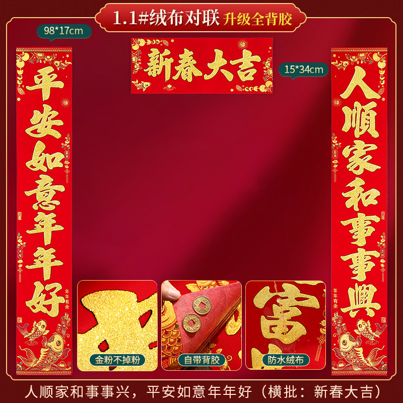 2026马年新款对联绒布创意门联新年春节家用大门装饰春联年货批货