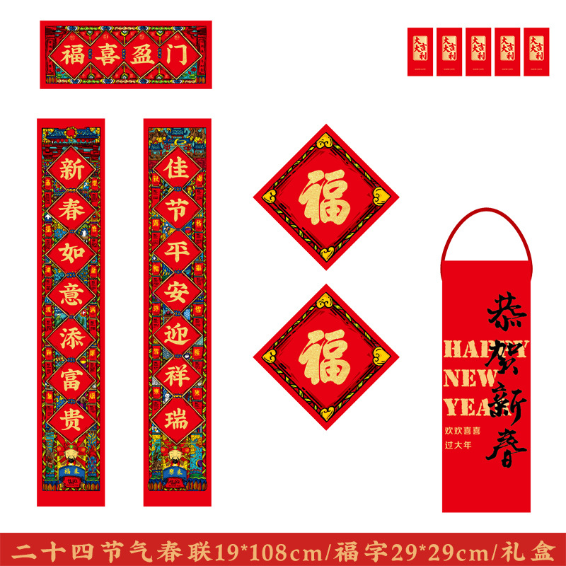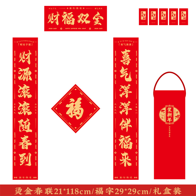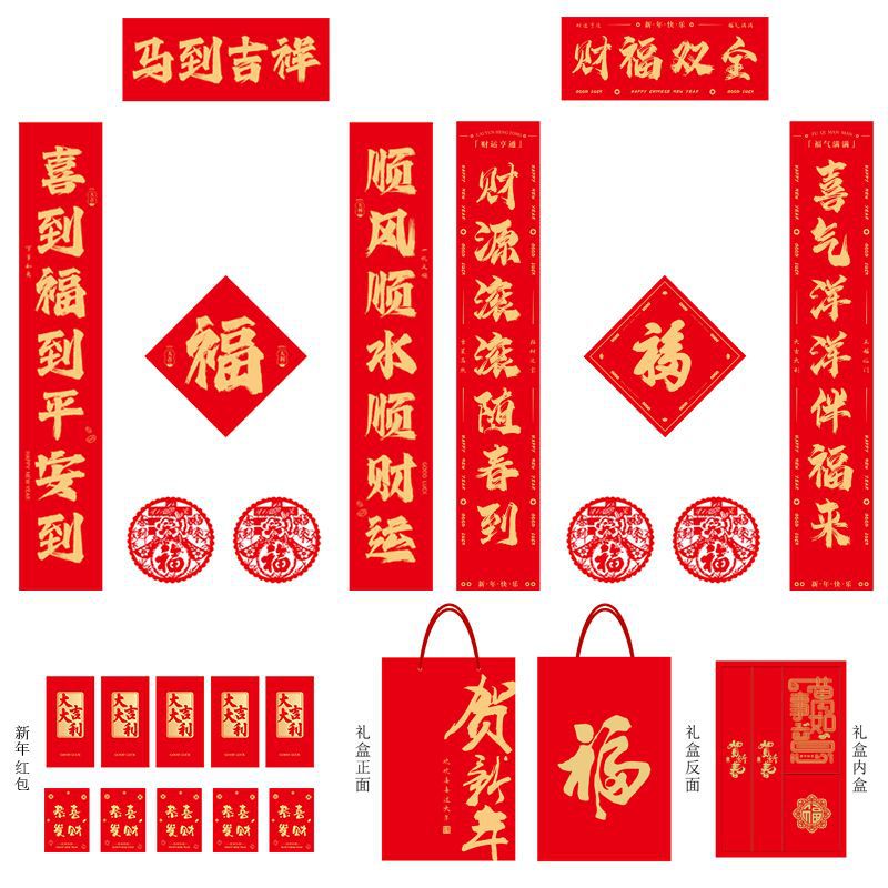 2026年烫金对联春联定制银行保险广告对联大礼包春节对联套装礼盒