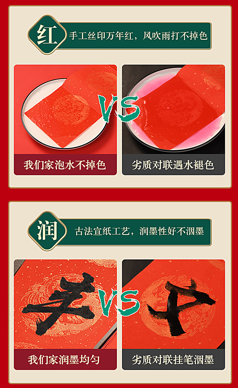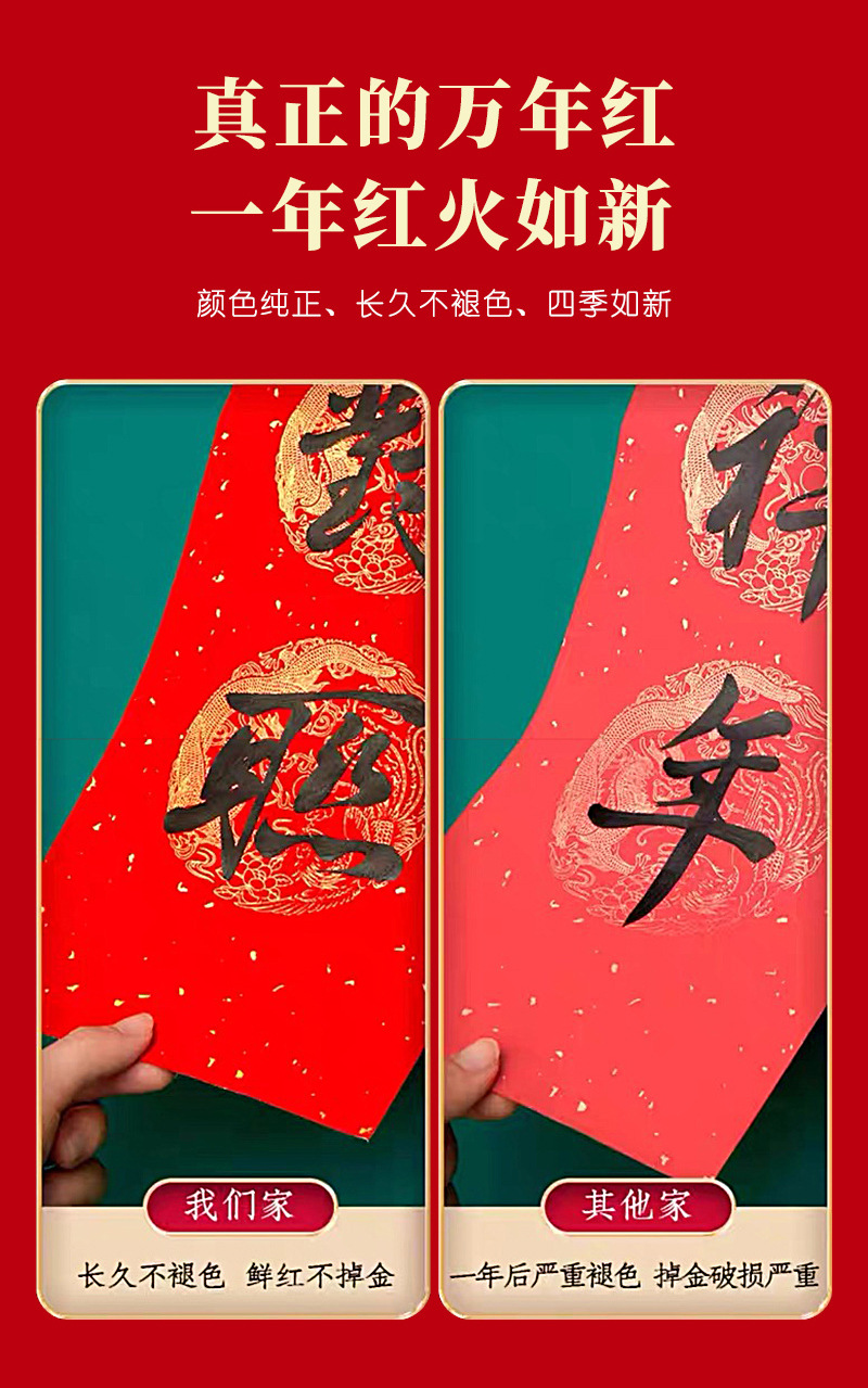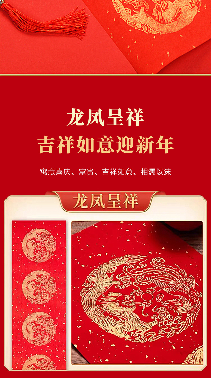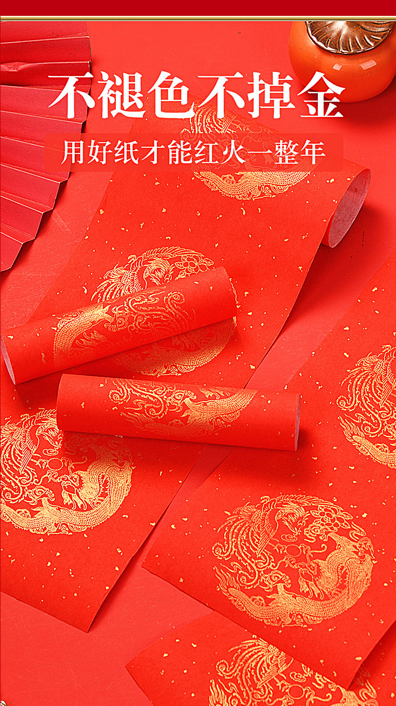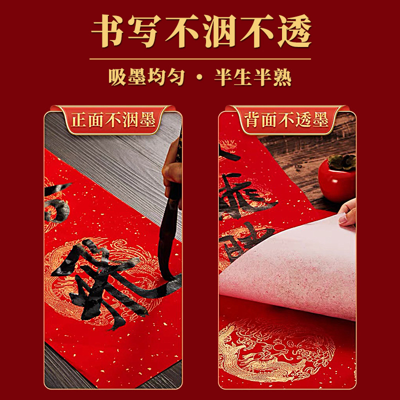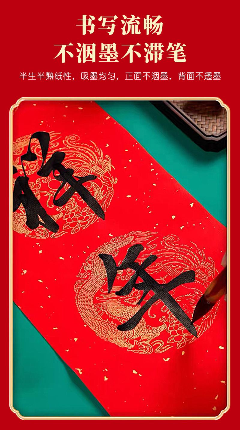 加厚万年红宣纸对联空白手写春联纸大红洒金龙凤瓦当春节喜庆批发
