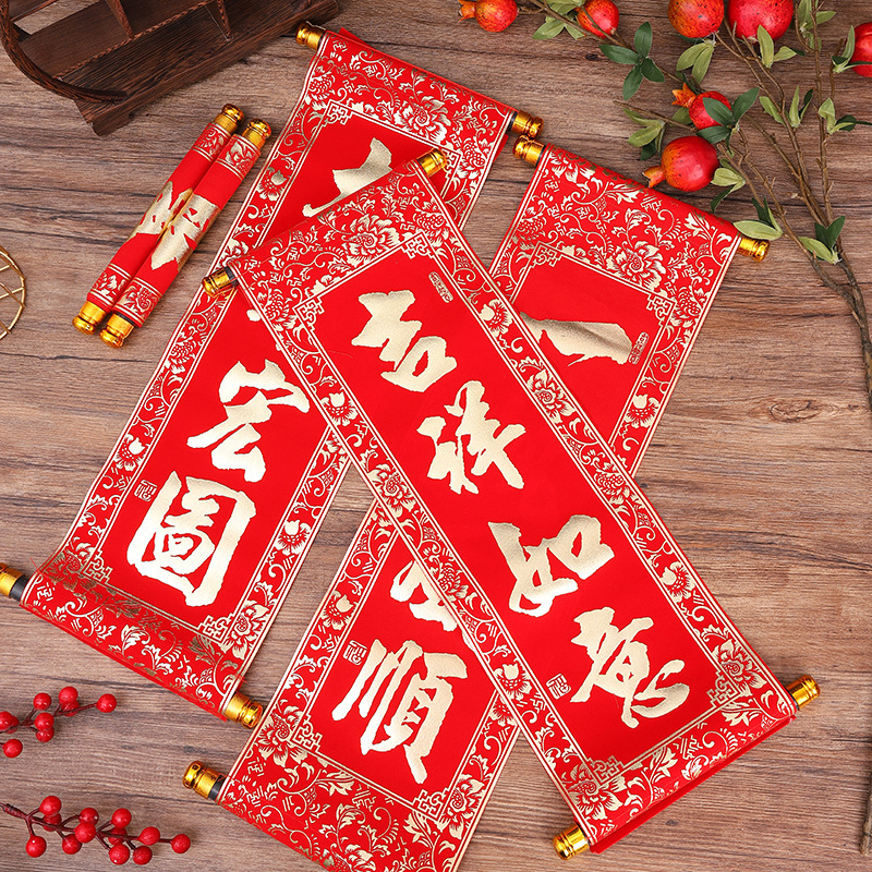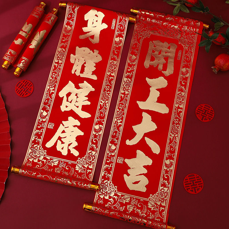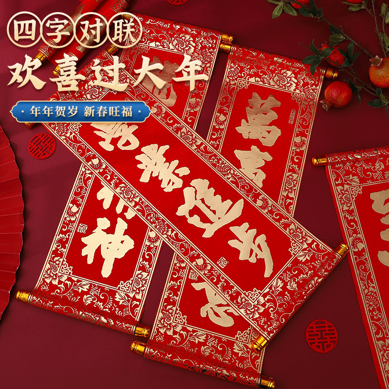 新年春节手持对联蛇年手拿春联四字卷轴挂联舞台表演道具装饰挥春