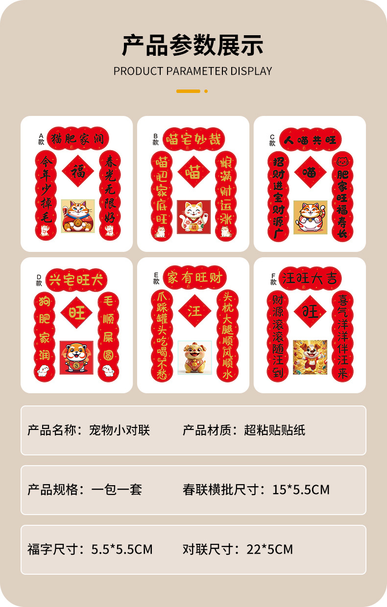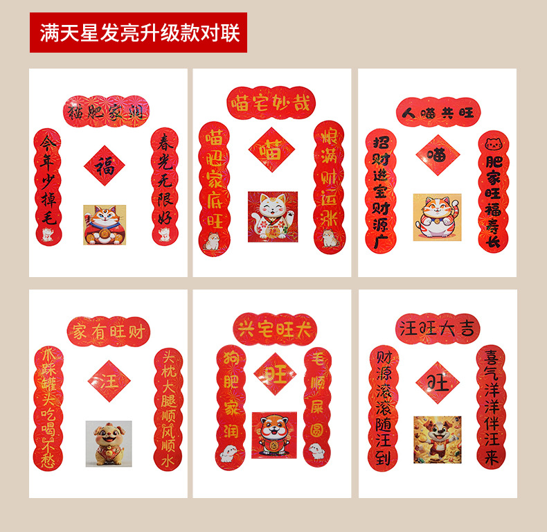 宠物迷你小对联猫狗窝布置趣味门联装饰品过新年春节装饰对联供应
