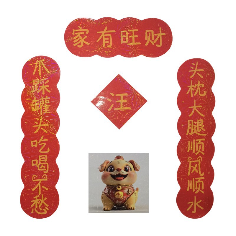 | 横批:15*5.5cm 福字:10*10cm 对联:22*5cm | USD $0.46 | 45698775 pair available |
