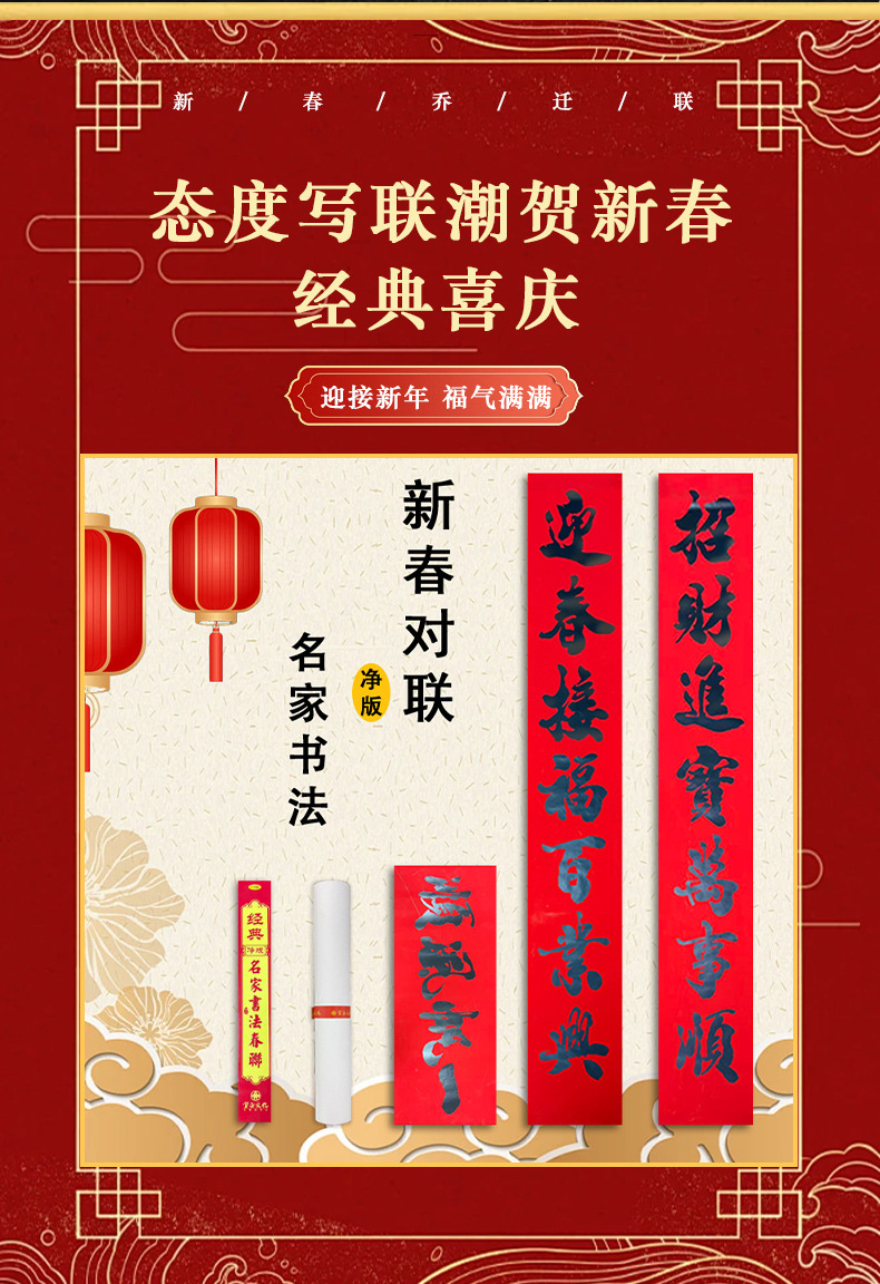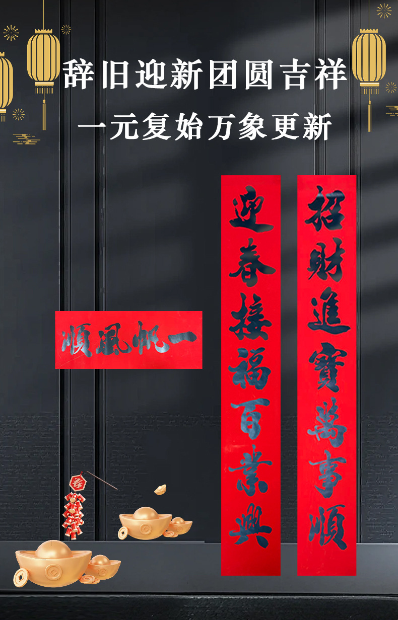 高档2026黑字手写净版对联精美盒装春节喜庆装饰品厂家批货多尺寸