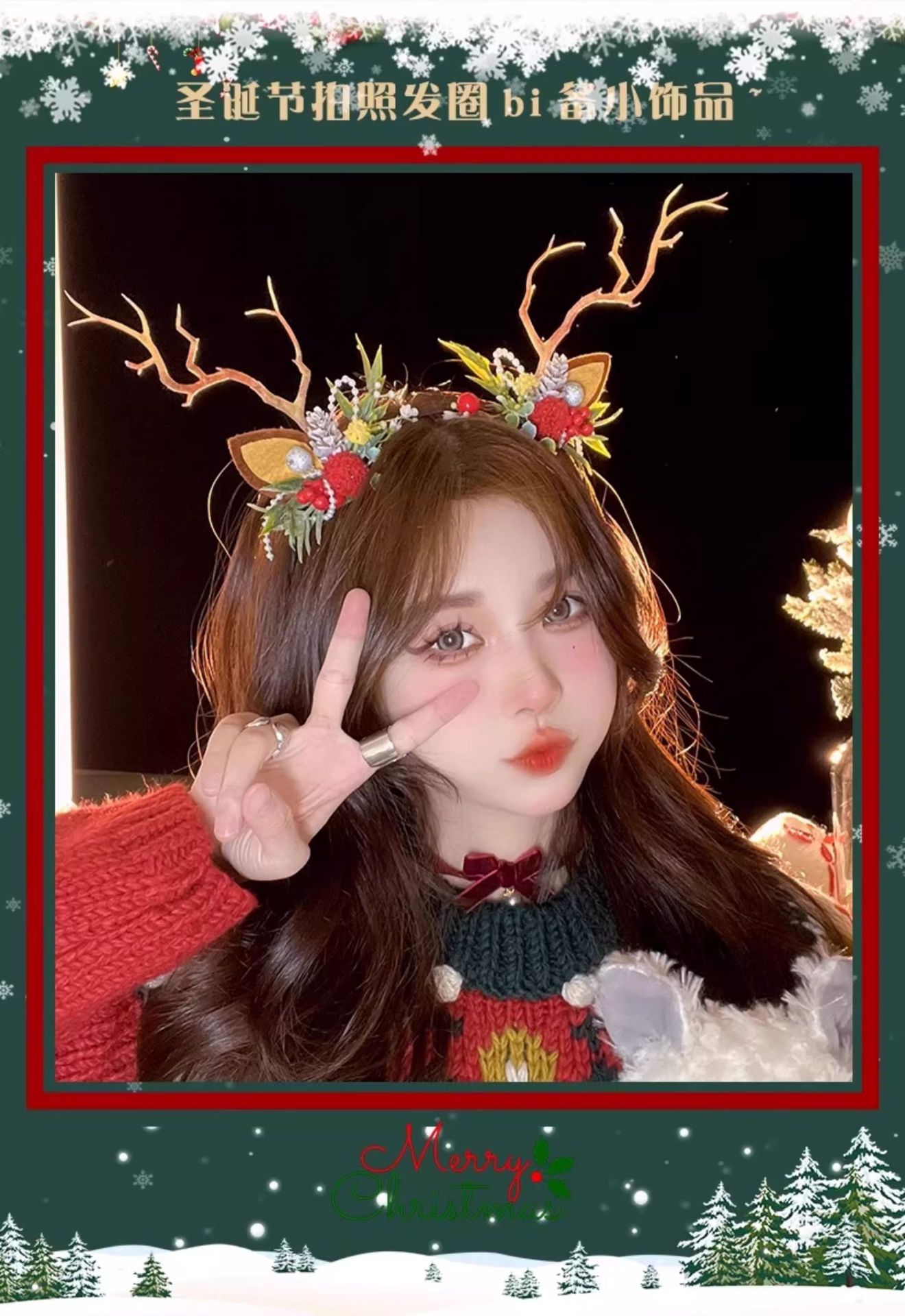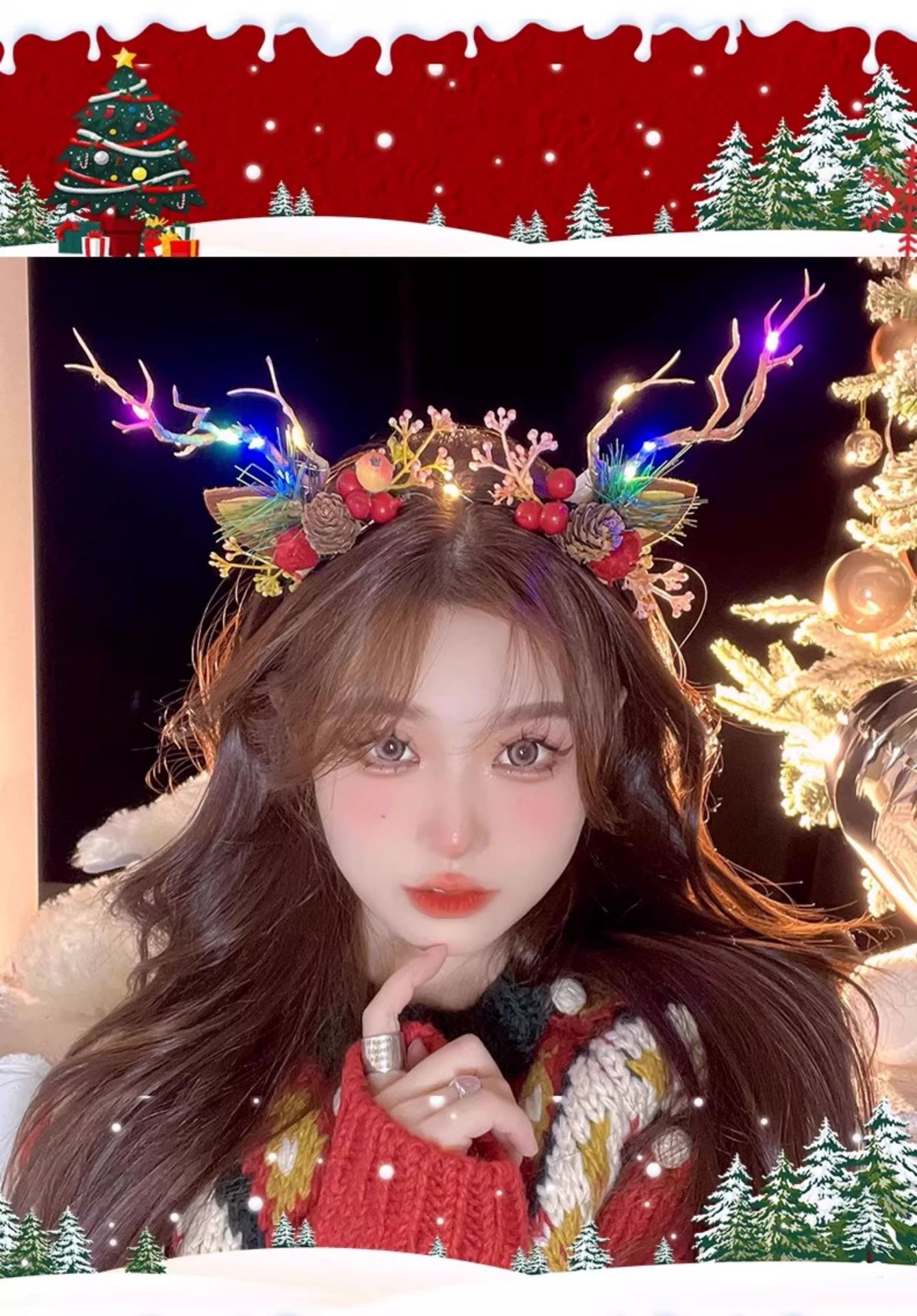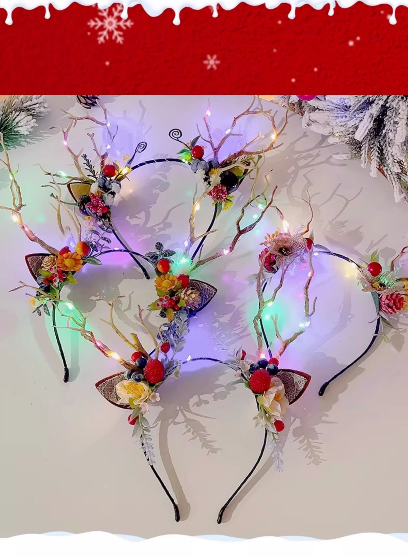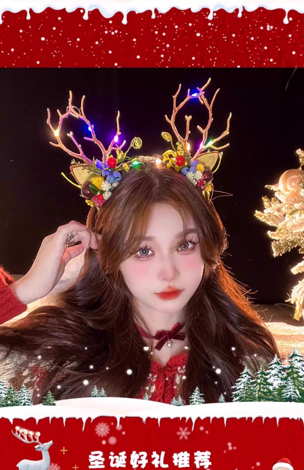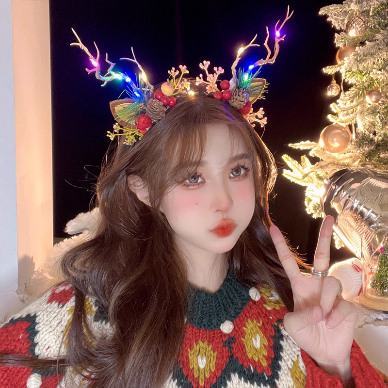 圣诞拍照道具发光鹿角发箍女圣诞节头饰麋鹿头箍装饰发卡发饰饰品