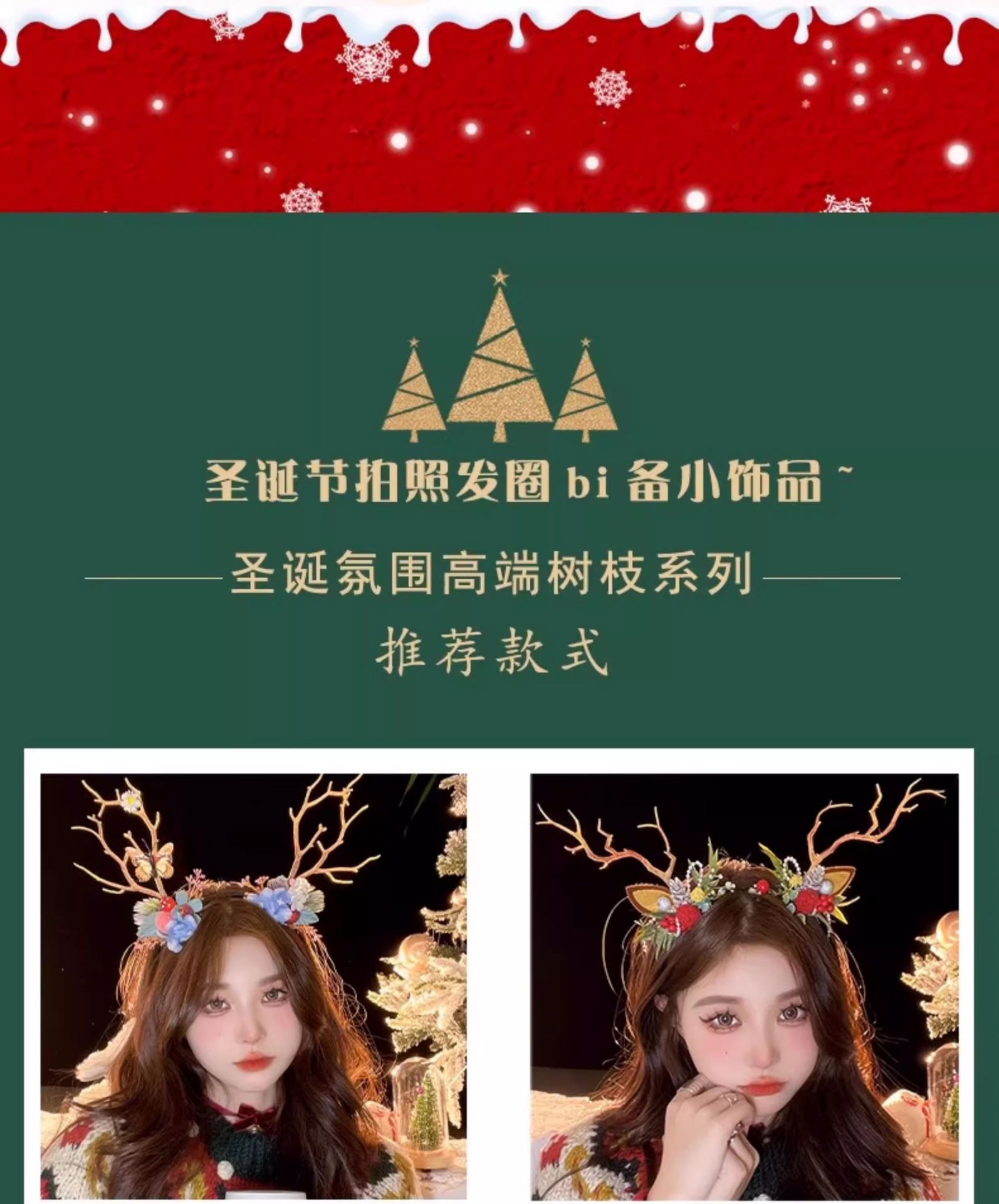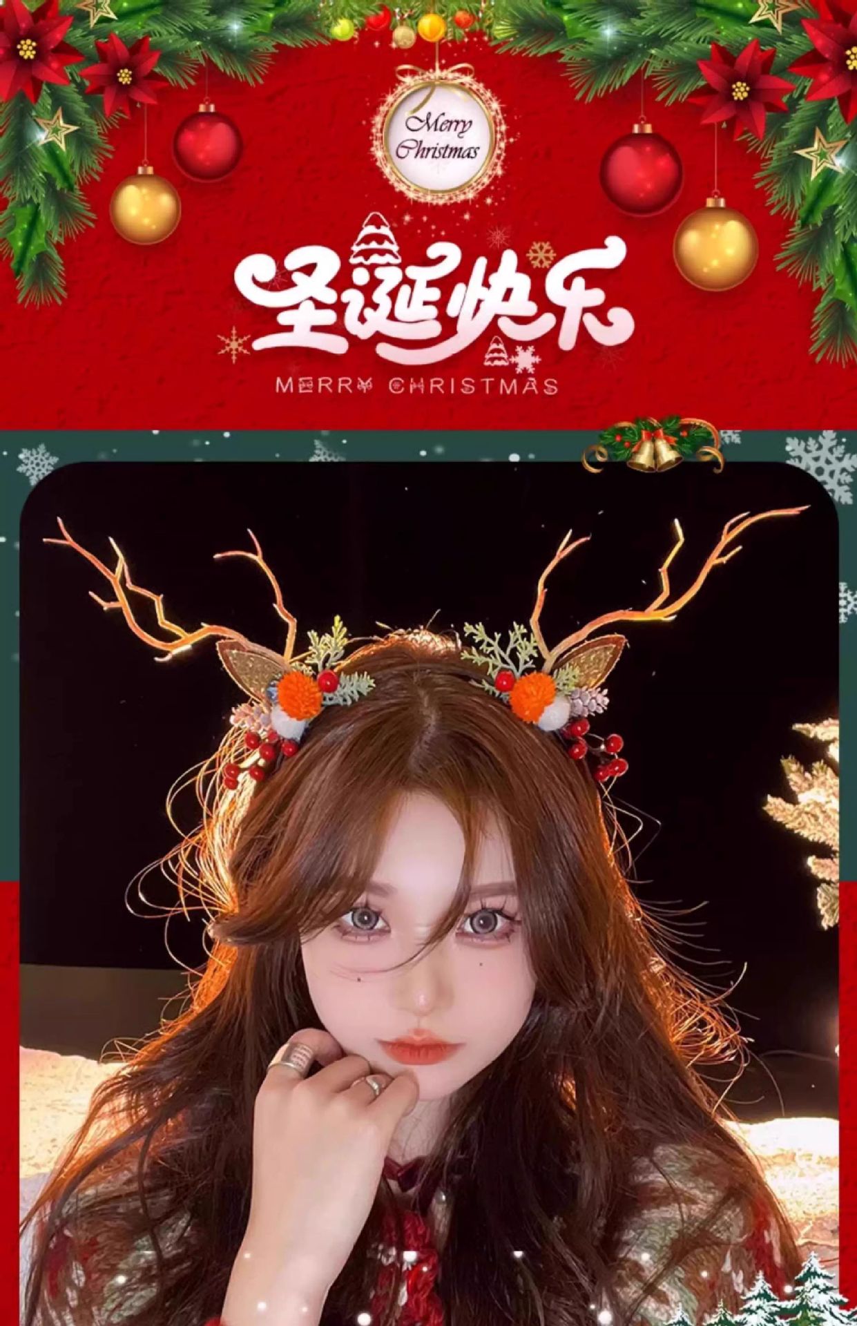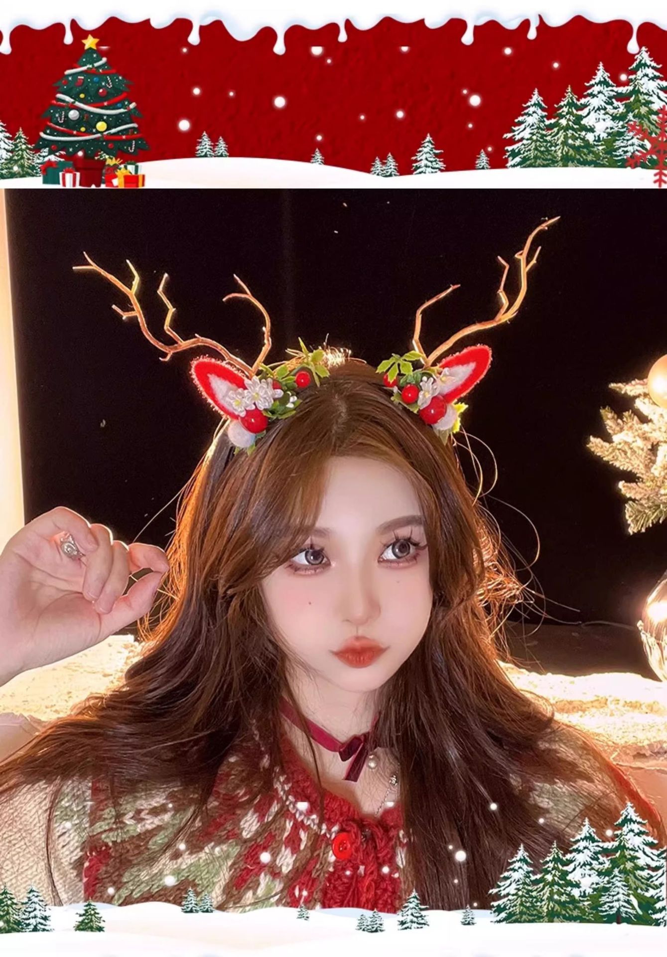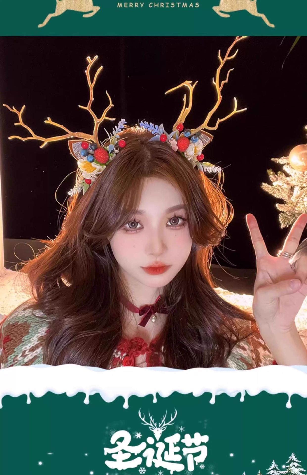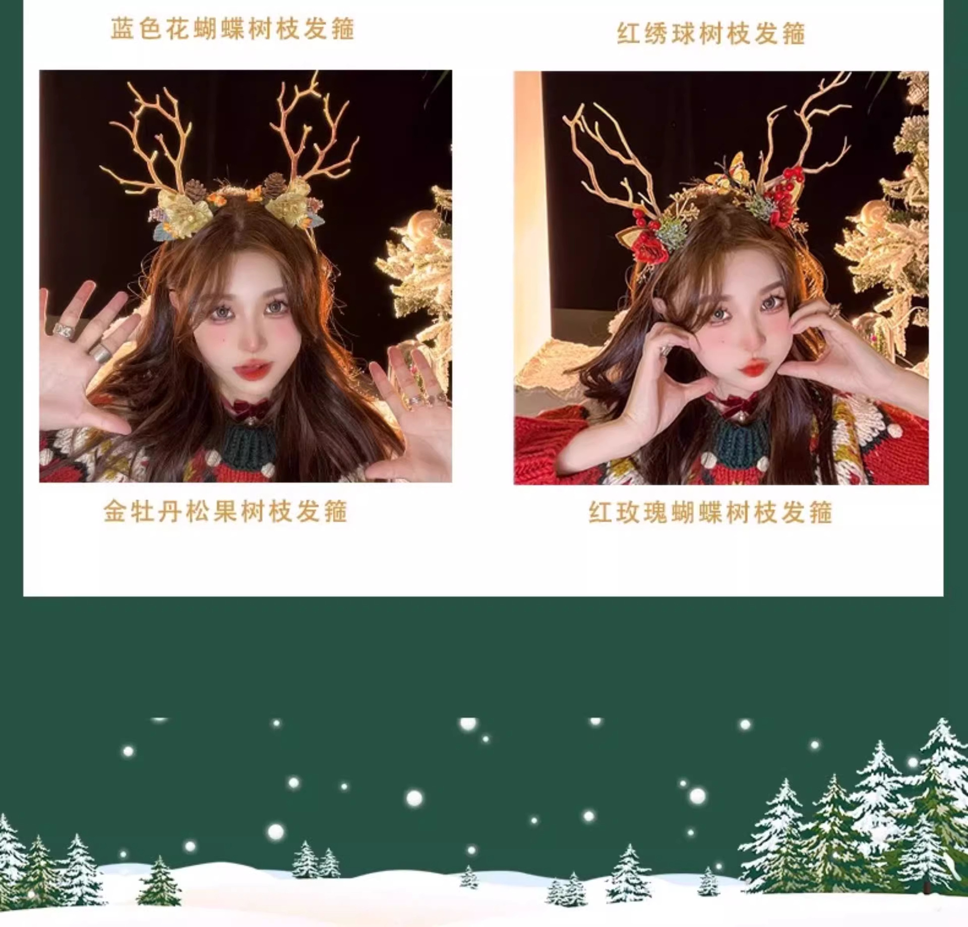 圣诞拍照道具发光鹿角发箍女圣诞节头饰麋鹿头箍装饰发卡发饰饰品
