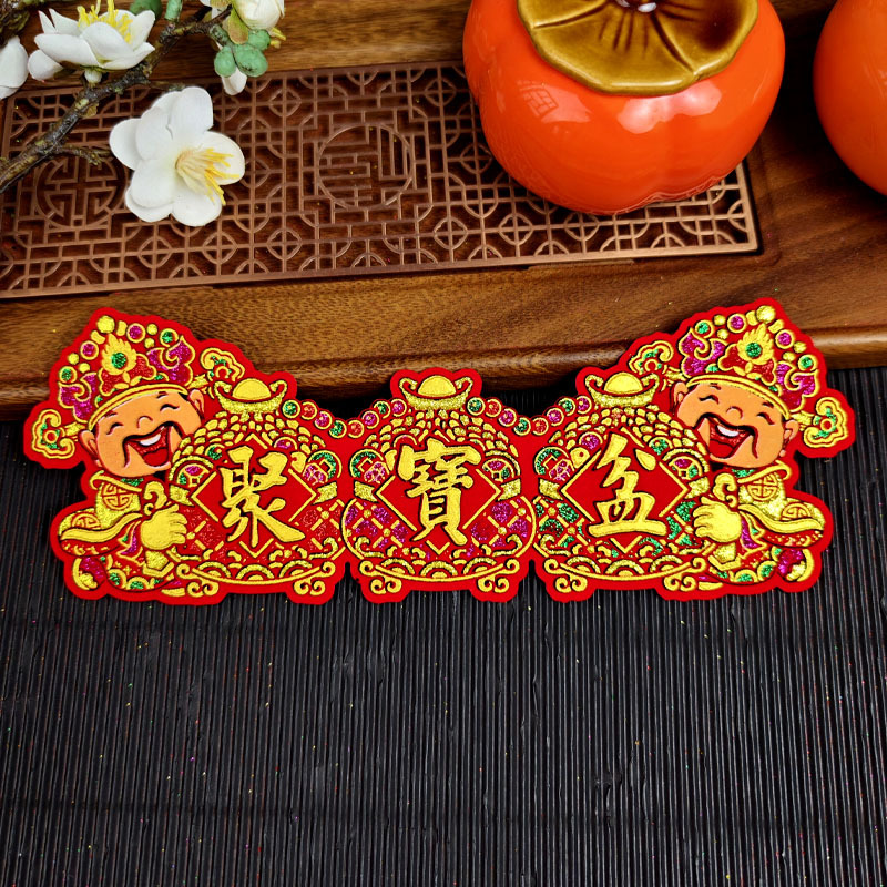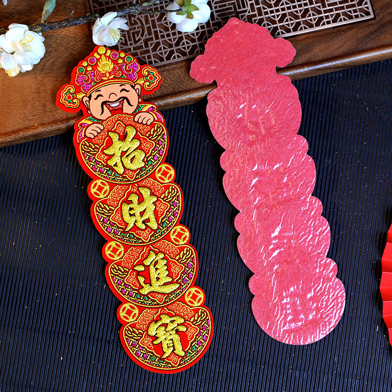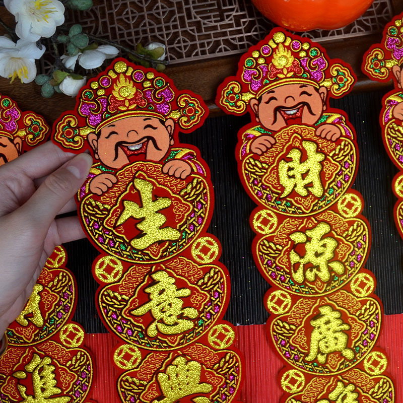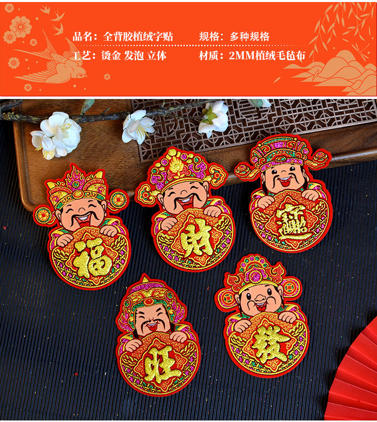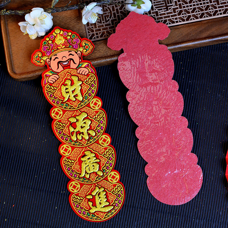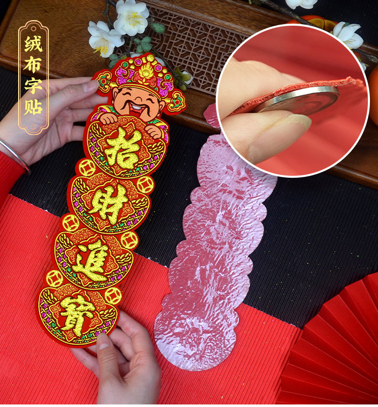 财神款四字小对联潮汕中秋折塔折纸材料毛毡植绒背胶财运亨通福宝