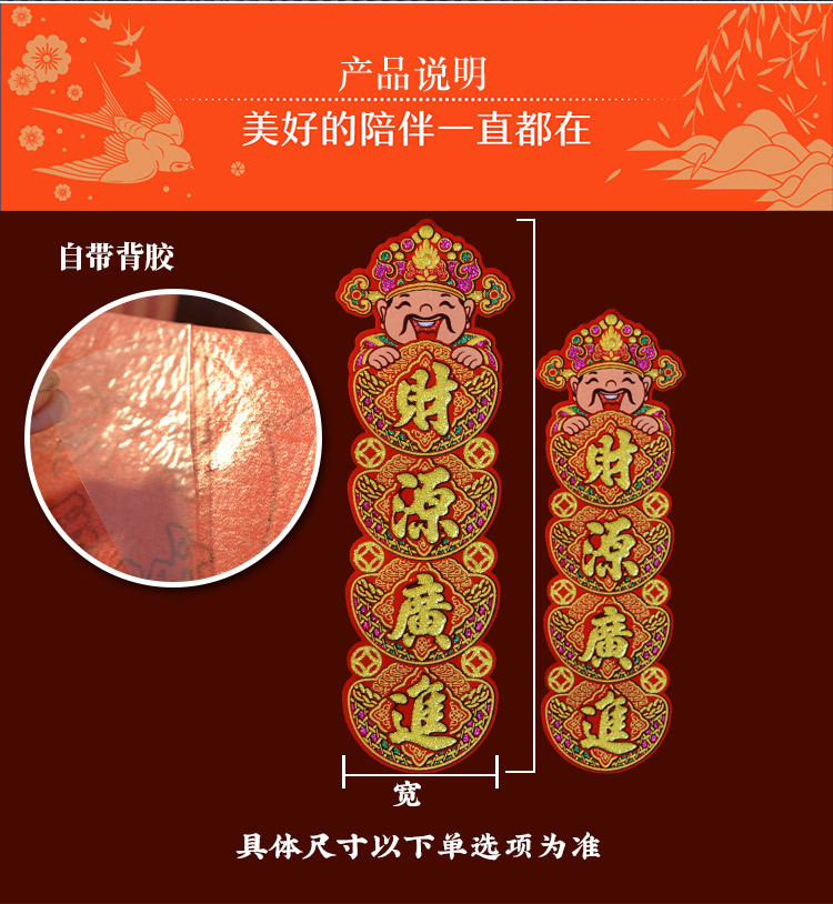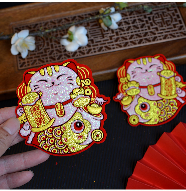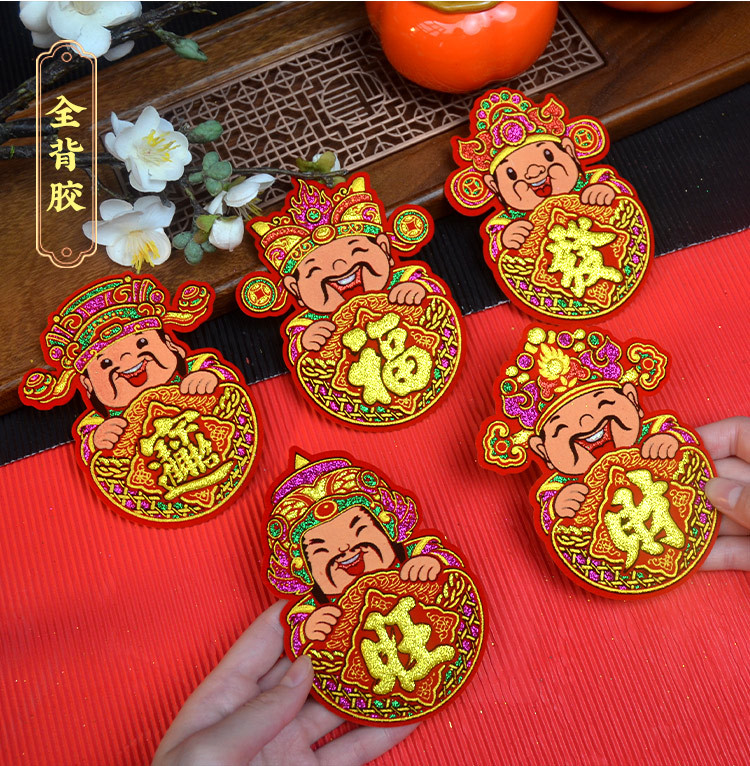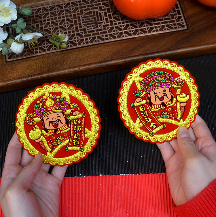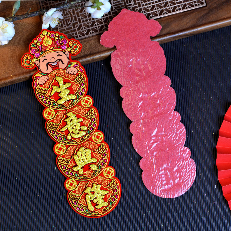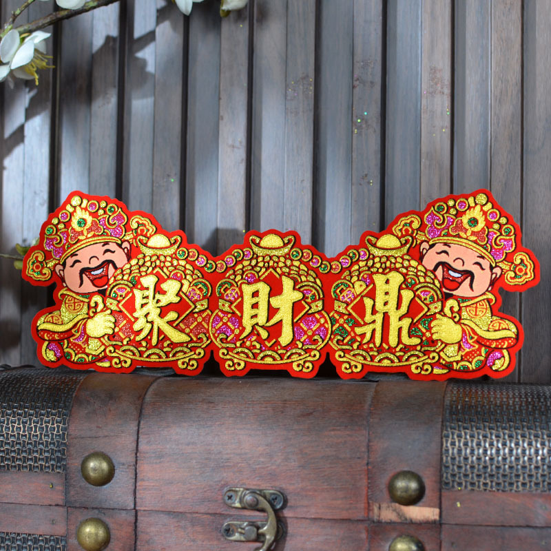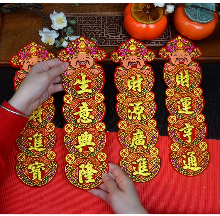 财神款四字小对联潮汕中秋折塔折纸材料毛毡植绒背胶财运亨通福宝